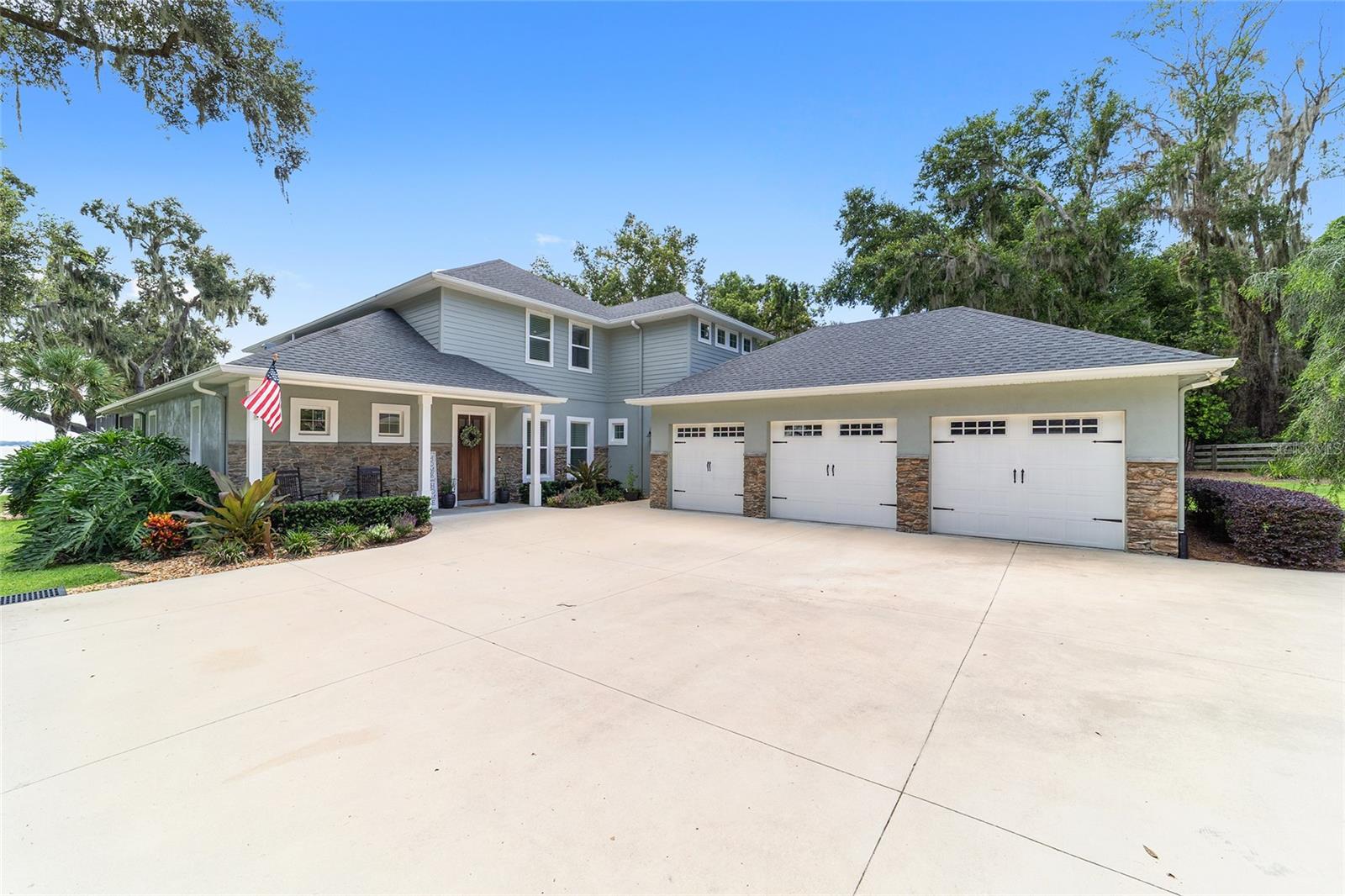 Welcome to a rare opportunity to own a true waterfront sanctuary on the prestigious north shore of Lake Weir. This custom-built 2018 estate redefines luxury living, offering 116 feet of private sandy beachfront on 1.48 pristine acres. Designed with both elegance and comfort in mind, the residence spans 3,466 square feet with five spacious bedrooms, four bathrooms, and a three-car garage—an ideal home for both intimate living and grand entertaining. Step inside to soaring spaces filled with natural light, where expansive windows frame breathtaking lake views and create a seamless connection between indoors and out. Every gathering becomes memorable against the backdrop of shimmering water, while quiet mornings invite you to savor coffee by the fireplace or watch the sunrise from your private shoreline. State-of-the-art systems provide peace of mind and effortless living, including a whole-home generator with a 300-gallon LP tank, a tankless water heater, a water purification system, and full irrigation. Gas powers the home’s most essential luxuries—from the gourmet kitchen’s stove to the fireplace, pool, and water heater—ensuring comfort and efficiency year-round. More than a home, this is a lifestyle. From sunset swims to evenings under the stars, every moment here is infused with the tranquility and beauty of true lakefront living. This extraordinary estate is not just a place to live—it is the lake house dream realized.
