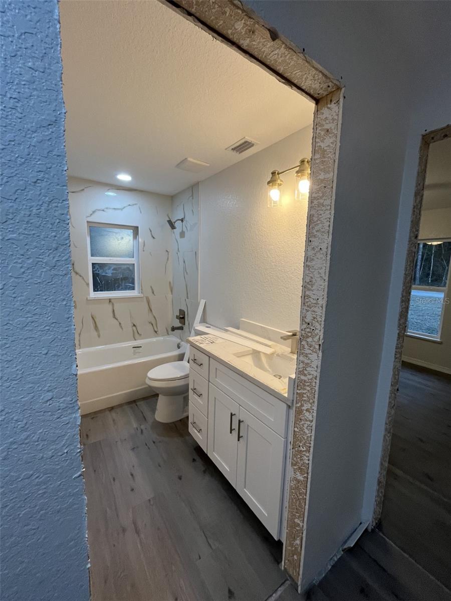 Take a look at this incredible space! This 3-bedroom home has an open floor plan. The thoughtfully designed split floor plan places the primary suite on one side of the home, while guest bedrooms and a shared bath are located on the other side, offering privacy for all. High ceilings enhance the open, airy feel throughout. The heart of the home features an open-concept kitchen with Quartz countertops, a pantry, island with sink, and seamless flow into the living area. Just beyond, a covered patio offers even more versatility. Guest bedrooms include closets and share a well-appointed bathroom with quartz counters, a linen closet, and tiled shower walls. The primary suite features an oversized walk-in closet with dual access from both the bedroom and en suite bath. The primary bathroom includes dual vanities, and a separate easy-entry tiled shower. Additional highlights include tray ceilings and fan/light fixtures in all rooms, a pantry, a dedicated laundry room, and a spacious 2-car garage. Conveniently located within 30 minutes of The Villages and Lake Weir, positioned near beaches, natural springs, and the World Equestrian Center. Final touches are underway—move-in ready! First-time homebuyers, Veterans, and USDA buyers welcome. Give yourself—and your future—the gift of a brand-new home. Schedule your showing today!