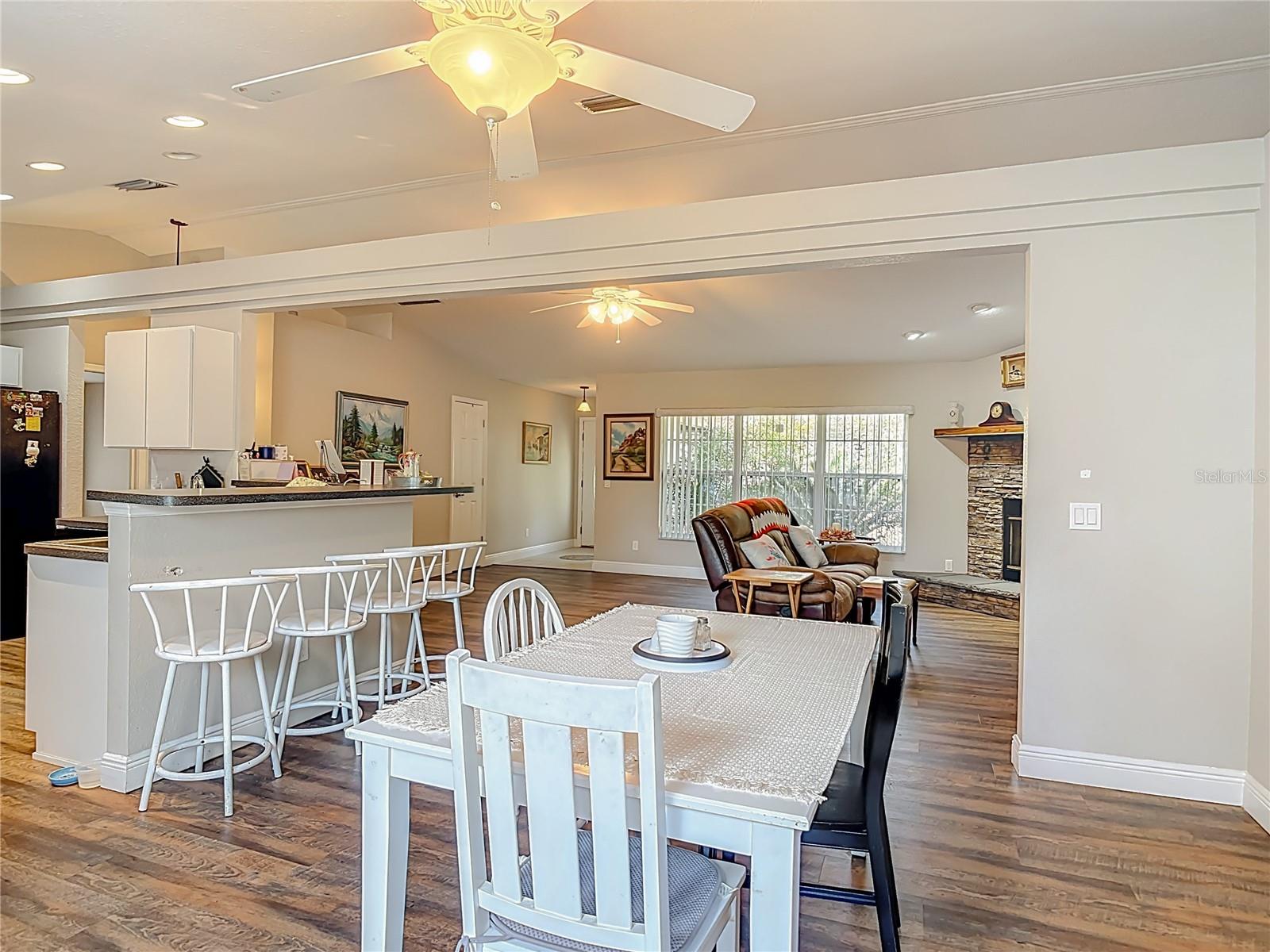 Welcome to this private country retreat situated on 6.74 fully fenced acres and zoned A-1 Agricultural, offering flexibility for farming, livestock, equipment storage, and rural living. With usable land, multiple structures, and practical improvements already in place, this property is well suited for agricultural, equestrian, or hobby farm use. Built in 2007, this concrete block 3-bedroom, 2-bath home offers 1,754 square feet of living space along with a spacious two-car garage and a welcoming front porch that sets the tone for relaxed country living. A propane whole-home generator provides added reliability and peace of mind. Inside, the home features abundant natural light, laminate flooring throughout the main living areas and bedrooms, and tile flooring in the bathrooms. The living room centers around a cozy wood-burning fireplace, creating a warm gathering space. Ceiling fans are installed in the living room, all bedrooms, kitchen, and dining area, enhancing comfort year-round. The kitchen offers ample cabinetry, bar seating, and an eat-in area, providing both functionality and workspace for everyday living or entertaining. The split-bedroom layout provides privacy, with the primary suite featuring a walk-in closet and walk-in shower, while two guest bedrooms and a hall bath are located on the opposite side of the home. Outdoor living is expanded by an impressive 640-square-foot screened-in porch, complete with an outdoor shower—ideal for relaxing after working outdoors, entertaining guests, or enjoying peaceful evenings overlooking the property. A 10' x 10' gazebo positioned at the front of the property creates an inviting space for morning coffee, reading, or gathering with family and friends. The property includes several substantial outbuildings designed for versatility and agricultural functionality: 67' x 26' metal building featuring a roll-up door leading to a small storage room; the open area is ideal for heavy-duty equipment, tractors, and vehicles 36' x 36' horse barn with six stalls, suitable for horses or other animals 20' x 40' metal building with five roll-up bay doors and electricity, ideal for a workshop or storage facility Additional small storage shed for tools or feed The fenced acreage provides ample room for horses, livestock, recreation, gardening, and privacy, creating a setting that supports a wide range of rural lifestyles. With plenty of space for trailers and recreational vehicles, the property is also conveniently located within approximately 10 minutes of the Lake Bryant boat ramp, making it easy to enjoy boating, fishing, and outdoor recreation. This A-1 agricultural property offers a rare combination of usable acreage, functional improvements, and comfortable living—ideal for those seeking space, flexibility, and a true country lifestyle while remaining within convenient reach of nearby amenities.