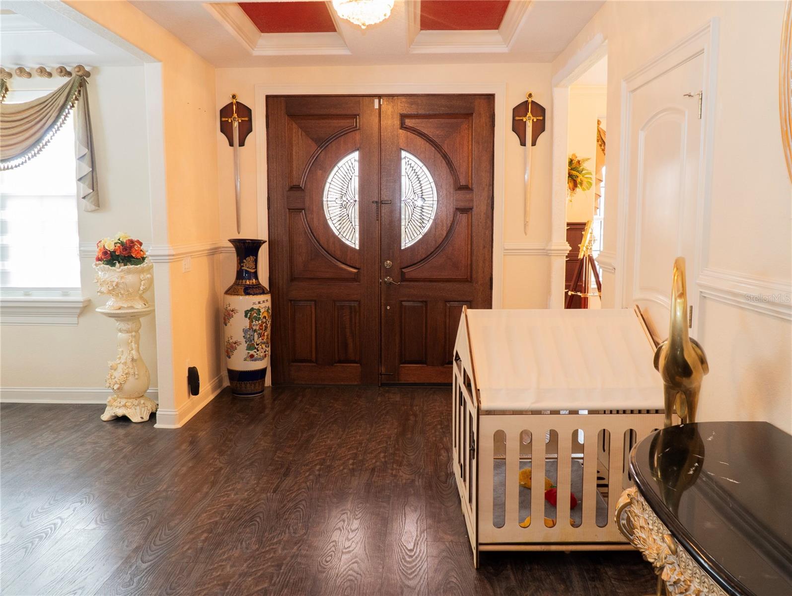 Welcome to this stunning home, a masterpiece of design and functionality, with gorgeous 2007 Mediterranean style home with private fence. This beautiful home sits on a corner lot. Take advantage of updates including a refreshed kitchen and state of the art appliances & center of the home granite staircase. The primary bedroom suite offers one-of-a-kind with a walk-in-shower and a massive walk-in closet. An open family entertainment space, equipped with a fully functional wet bar, seamlessly flows into an outdoor kitchen, making the indoor-outdoor living a breeze is complete with a sparkling pool. Upstairs features three spacious bedrooms, two full baths and a massage great room and cherry wood floor.