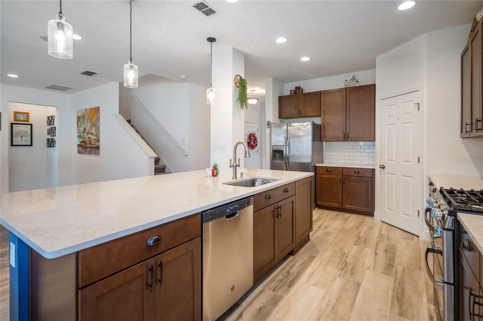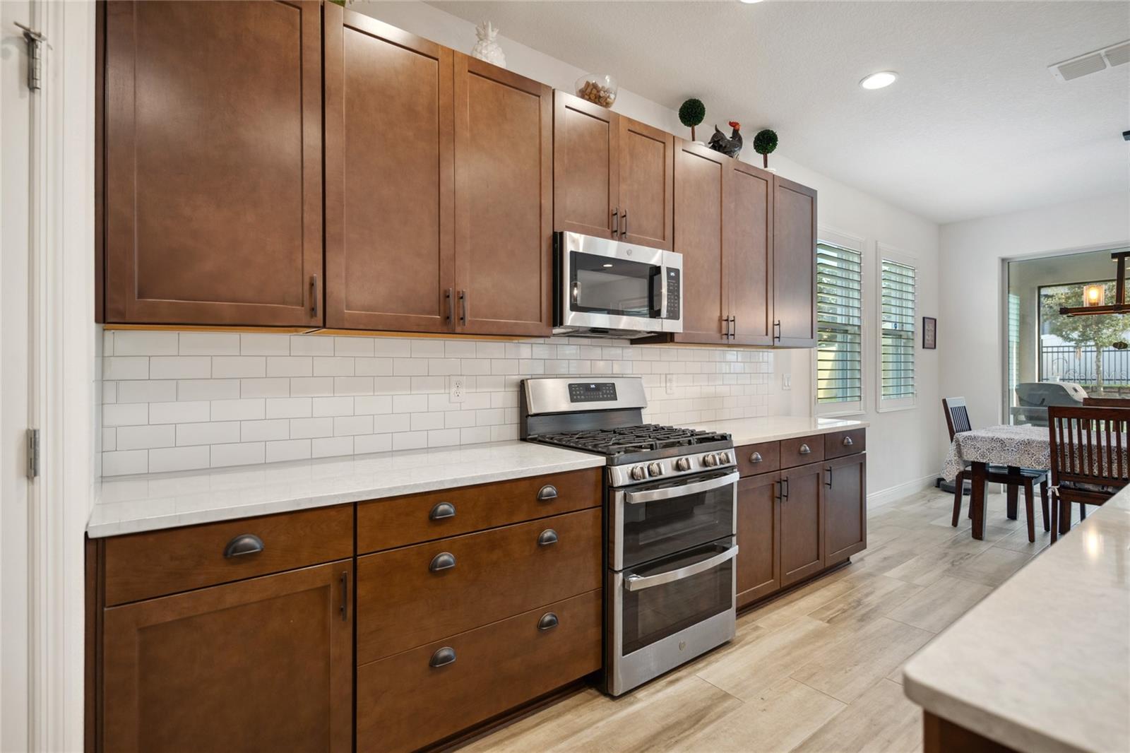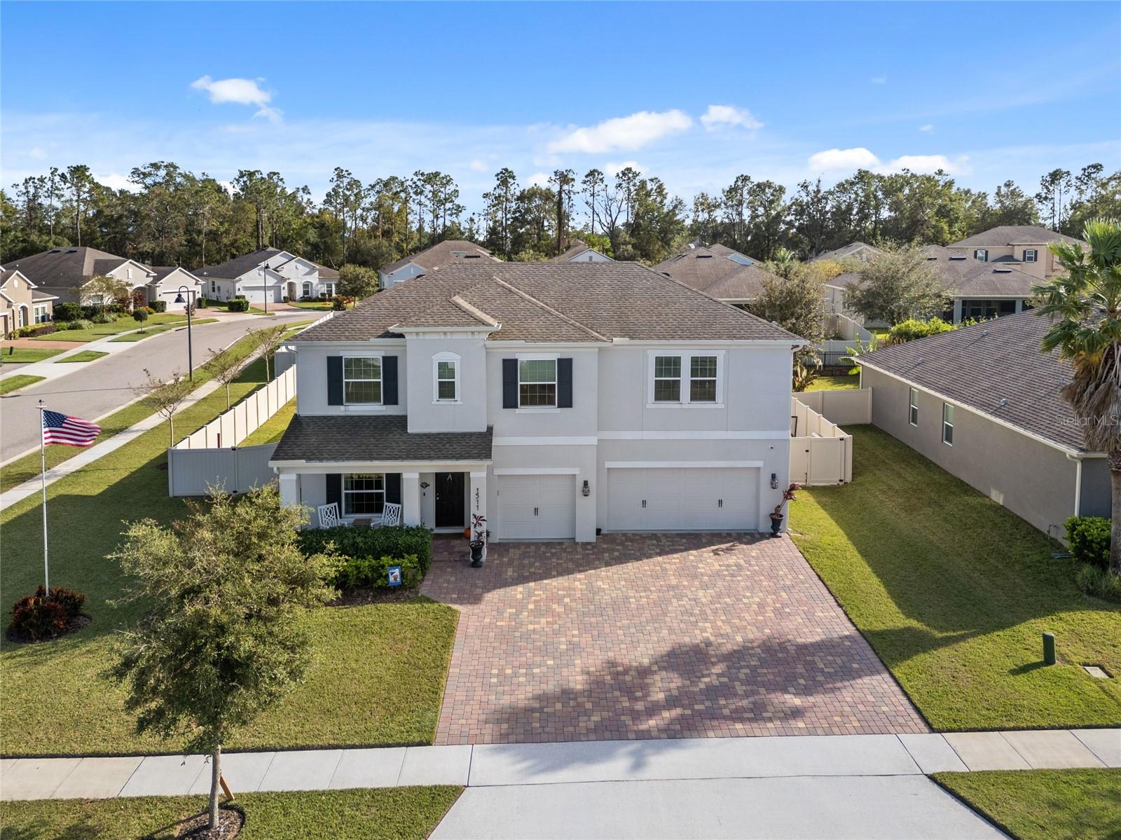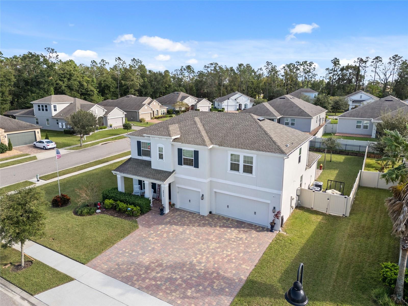 One or more photo(s) has been virtually staged. Welcome to your exquisite retreat in the prestigious, gated community of Arden Park! This stunning contemporary home, built in 2020, offers nearly 3,200 square feet of luxurious living. Featuring five bedrooms, three full baths, one half bath, and a spacious 21x20 loft, this immaculate property is designed to provide both comfort and elegance. Upon arrival, you're greeted by a paver driveway, a welcoming front porch, and a 3-car garage. Step inside to discover a bright and open floor plan, perfect for both everyday living and entertaining. The first floor features the primary bedroom and bathroom, formal dining room, and an expansive kitchen that flows seamlessly into the breakfast area and family room. The kitchen is a chef’s dream with gas stove and its open design, making it ideal for gatherings. Other features include gas dryer connections and stove, and on demand water heater. With only one side neighbor, privacy abounds, allowing you to enjoy the serene ambiance of the surrounding area from nearly every room. The second floor is equally impressive, offering a loft area, 4 additional bedrooms, and two baths. Outside, the well-manicured landscaping enhances the serenity of the property, providing a perfect setting for outdoor entertaining. Whether you're relaxing on the porch or hosting a backyard gathering, the beautiful surroundings set the perfect ambiance. Just steps away from your front door, Arden Park offers resort-style amenities including a clubhouse, an Olympic-sized community pool, fitness center, playgrounds, parks, and scenic walking and biking trails—all surrounded by beautiful natural vistas. Beyond the community, enjoy the convenience of being a short drive to major attractions, shopping, and dining. With easy access to the West Orange Bike Trail, Disney, Universal Studios, and Orlando International Airport just 25 minutes away, this location offers the best of both worlds—tranquil living with city conveniences nearby. Plus, it’s less than 20 minutes from the renowned Bishop Moore school. Don’t miss your chance to own this incredible retreat. Schedule a showing today and experience the beauty, luxury, and lifestyle this home and community have to offer!