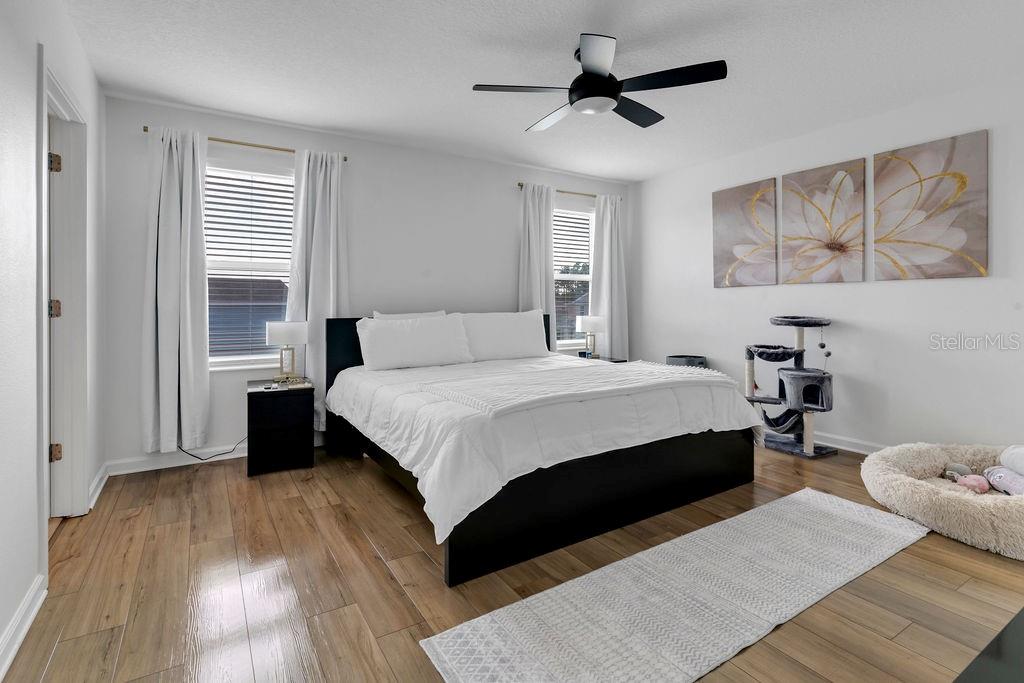 This amazing house was recently upgraded with new flooring and it was freshly painted in the interior and exterior. You will love the open floorplan with the impressive kitchen, with ample counter space and a large island overlooking the expansive family room. There is also a dining room and powder room on the first floor. The luxurious owner suite has a large walk-in closet, a spa inspired owner bathroom with his and her sinks and a large walk in shower. The second floor has a loft and all the bedrooms. This spacious family-friendly home is situated in a gated community offering resort-style amenities, including a sparkling swimming pool, fitness center, and clubhouse. Additionally, residents can take advantage of a playground, park, and a scenic walking trail around Lake Sims. Conveniently located with easy access to major highways such as FL-429, FL-408, and the Florida Turnpike.