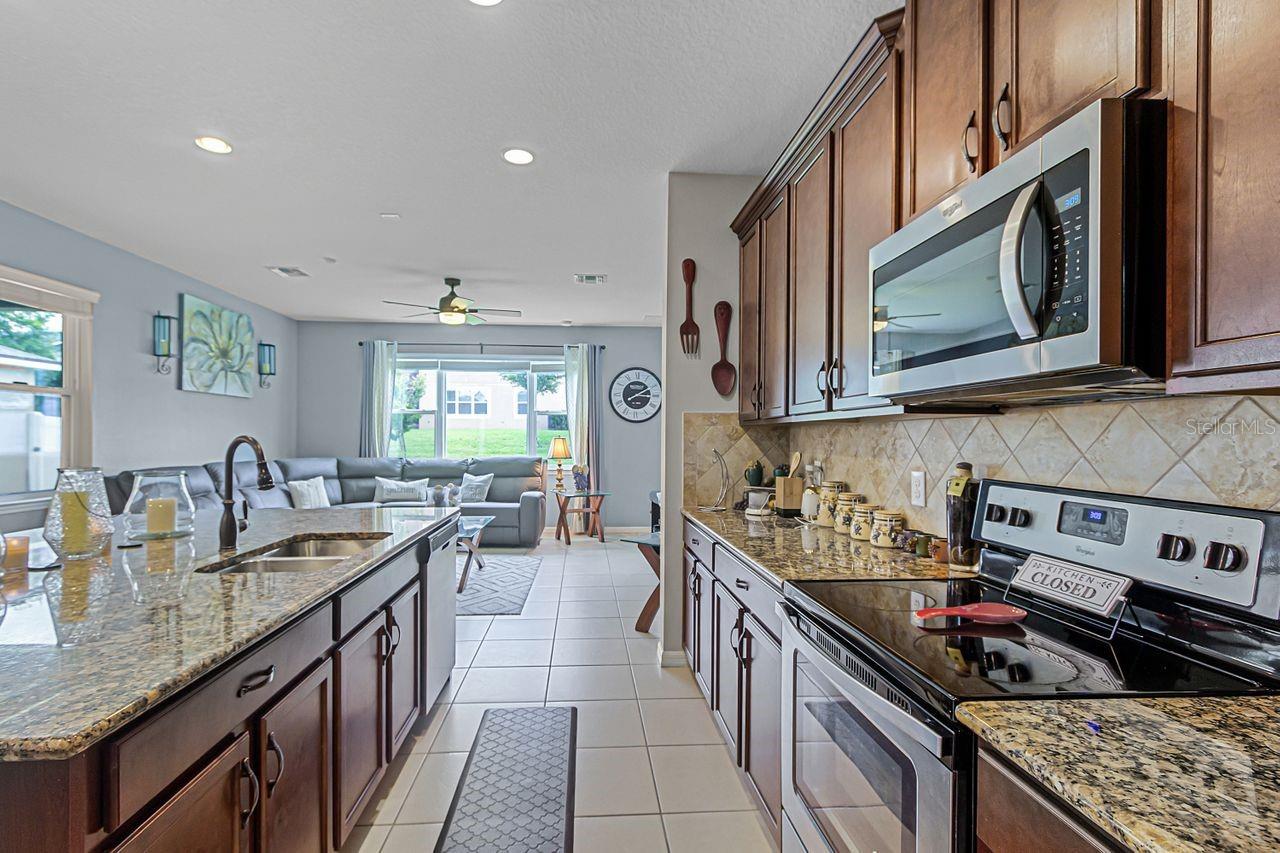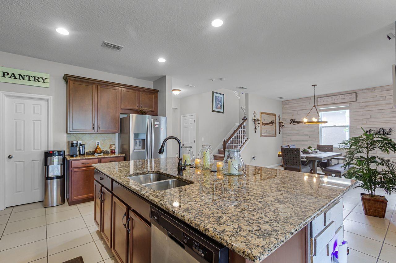 Welcome to your future residence nestled within the popular gated community of The Preserve at Crown Point. This functionally designed home boasts a spacious floor plan featuring 5 bedrooms and 4 full bathrooms. Upon entering, you are welcomed by a grand foyer adorned with high ceilings. To the left, a versatile flex space awaits, ideal for a home office or den. The kitchen boasts 42" cabinets, granite countertops and stainless-steel appliances and is thoughtfully crafted for family gatherings, showcasing a generously sized island perfect for entertaining. The open-concept layout of the downstairs creates an inviting atmosphere, perfect for entertaining. The inclusion of a guest suite on the first floor ensures privacy and comfort for guests. Enjoy gorgeous sunsets nightly on the front porch or nature trail directly across the street. Ascending to the second floor, a spacious loft awaits, offering an ideal setting for movie and game nights. The master bedroom is strategically positioned to afford a beautiful view of the backyard. Other features include an oversized garage with tandem parking, and large laundry room with extra storage and a covered rear lanai, perfect for grilling or relaxing in the fresh air...Residents of this gated community enjoy access to amenities such as a community pool, two playgrounds, a dog park, and a connection to the West Orange Trail. Conveniently located, the property is only 15 minutes from the famous Downtown Winter Garden's shops and dining and has great highway access making it just a short drive to Downtown Orlando, Orlando International Airport, Disney, Universal and all that Central Florida has to offer. This home invites you to experience a harmonious blend of luxury and functionality in a prime location. Don't miss your opportunity to view this house today and call it home tomorrow!