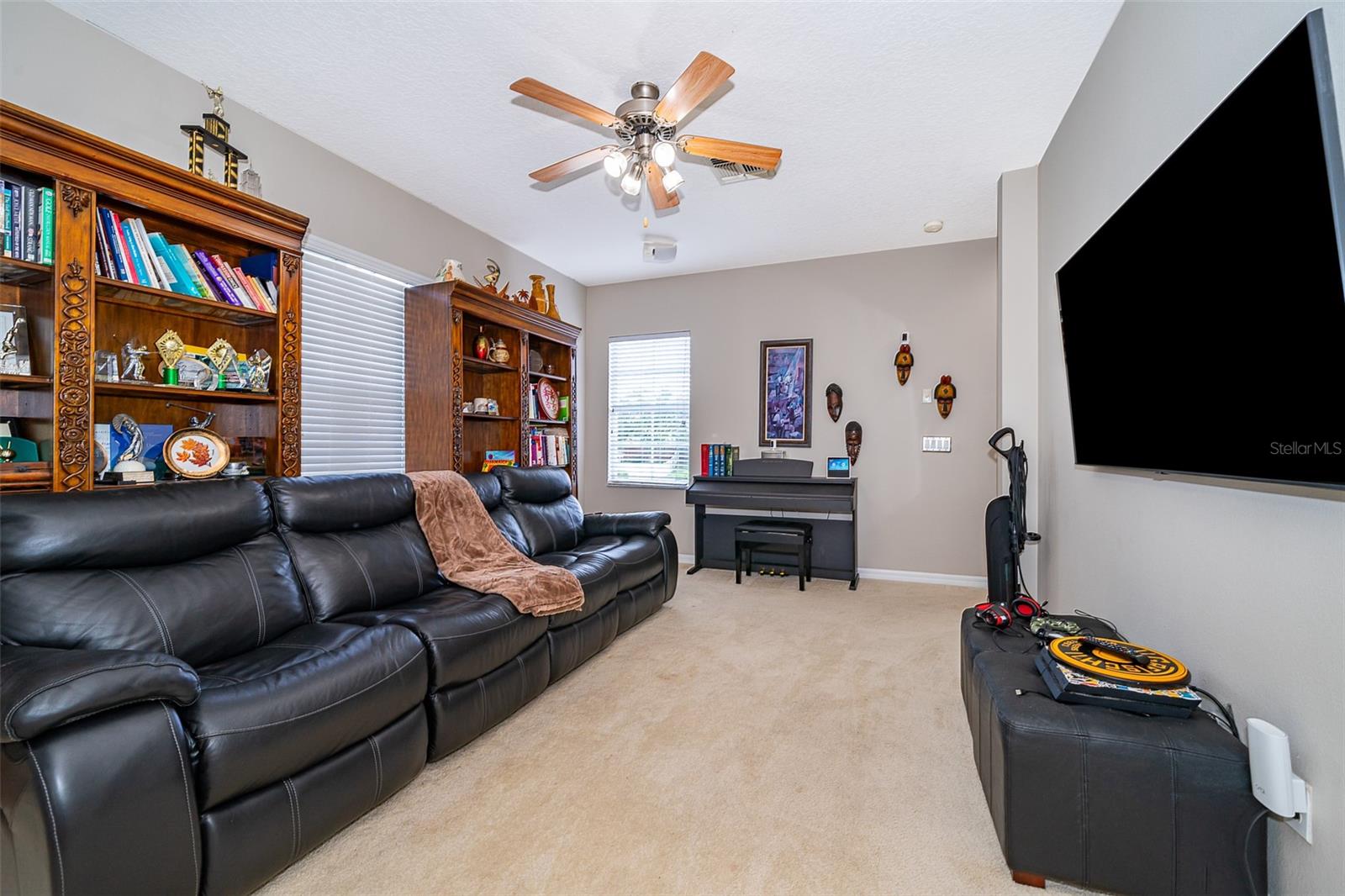 Step into elegance with this exquisite 5-bedroom, 4-bathroom, two-story home located in the highly sought-after Kensington Manor. This home backs up to serene conservation views with no rear neighbors. Upon entry, you'll be greeted by a formal dining room perfect for hosting guests, alongside a spacious office ideal for remote work. The heart of the home is the expansive gourmet kitchen, featuring custom wood cabinetry, luxurious granite countertops, stainless steel appliances, and ample storage space. The adjacent breakfast nook overlooks the large family room, creating an inviting space for both everyday living and entertaining. The luxurious primary suite, located on the main floor, includes an en-suite bathroom with a stand-alone shower, rejuvenating jet tub, double sinks, and a generously sized walk-in closet. Four additional bedrooms, also on the main floor, ensuring ample space and comfort. Upstairs, a sizable bonus room provides a versatile space for relaxation or entertainment, while an additional bedroom with its own private full bathroom offers guests ultimate privacy. Enjoy outdoor living at its finest with an expansive backyard and a spacious, screened-in lanai—perfect for year-round entertaining. Conveniently located near top-rated schools, shopping, entertainment, and major highways, this home provides the perfect blend of tranquility and accessibility. Don’t miss out on the opportunity to make this incredible property yours!