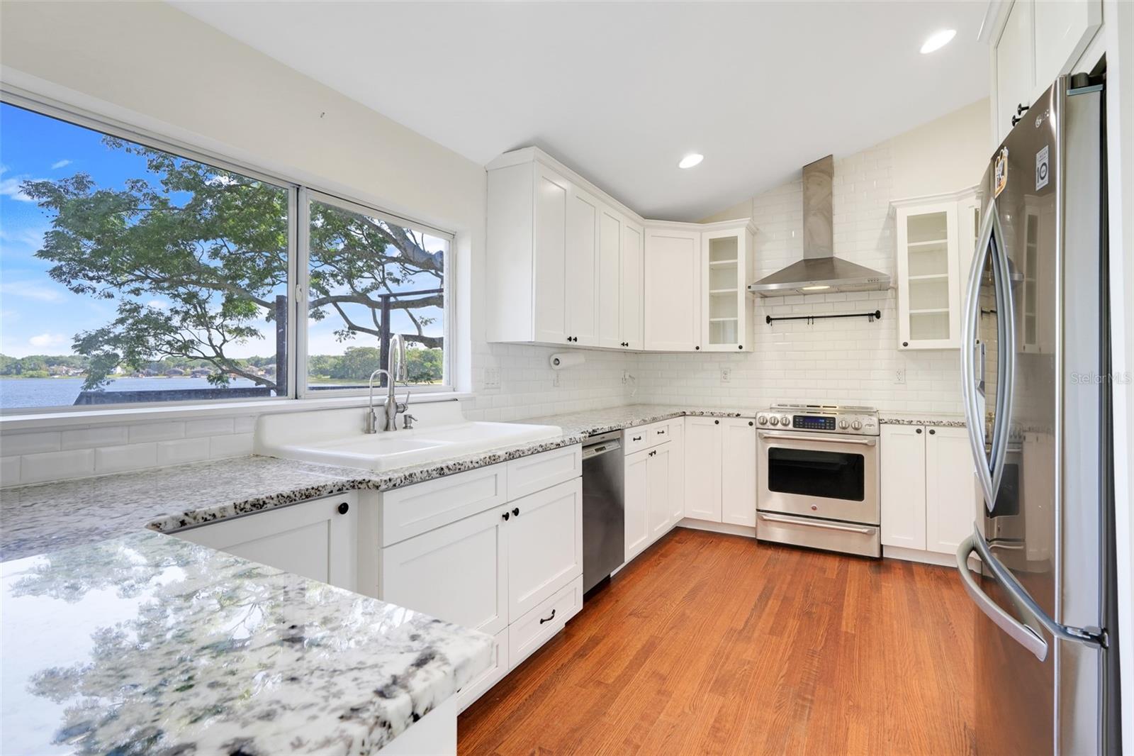 4 bedroom, 3 bath home on simply stunning location on ski-lake Lake Olympia! Located in Unincorporated Orange County, enjoy the freedom of no HOA on .62 acres! The floor plan has 3 bedrooms and 2 baths on the main level as well as the family room, dining room and kitchen with great views and a large owners’ suite with an enormous bath on the lower level and more spectacular views of the lake! The galley designed kitchen is complete with stone counters and there is an attached 2 car garage. Lots of upgrades to this amazing home – new garage door, new asphalt driveway, fenced back and front yard, new countertops, new A/C and ductwork and new flooring downstairs! You’ll love the views from the rear deck and the privacy to enjoy all the birds and wildlife on Lake Olympia which does not have a public boat ramp. Florida fun in the sun on a unique and lovely piece of paradise! American Home Shield warranty offered as well. Close to shopping, major roads, schools, minutes to anywhere in the Orlando area, this is a super location!