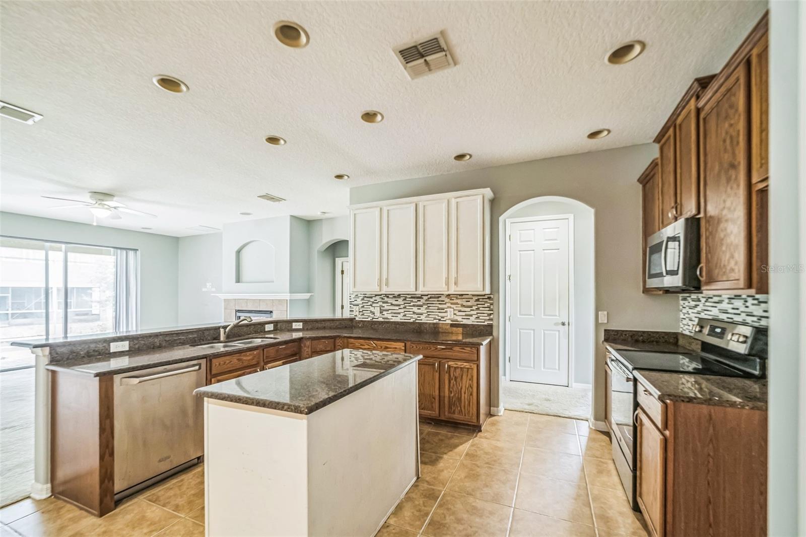 Under contract-accepting backup offers. This spacious pool home features a fantastic layout with a formal living room, formal dining room, and a large family room centered around a cozy fireplace. The generous kitchen offers an island, breakfast bar, plenty of cabinet and counter space, and a bright eat-in area. The living room showcases three-way sliding glass doors that open up to the screened-in pool, filling the space with natural light and creating a great indoor-outdoor flow. The split-bedroom floor plan provides added privacy, and the primary suite includes a walk-in closet, soaking tub, separate shower, and a private water closet. Located in a well-established neighborhood with convenient access to shopping, dining, and major highways.