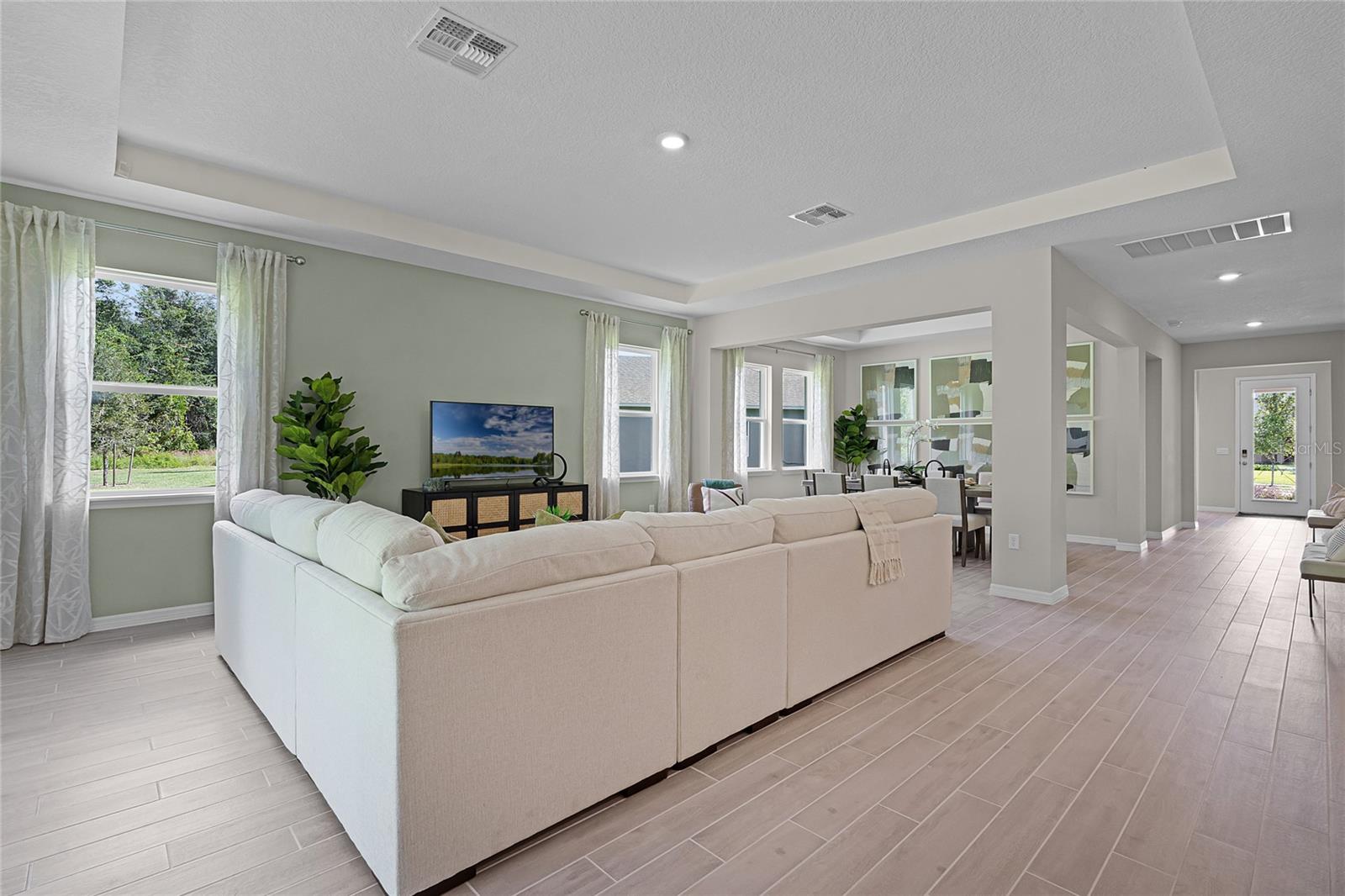 Under Construction. Step into the Camden at Wynwood, one of our floorplans featuring a seamless blend of modern design and functionality. This all-concrete block constructed, one-story multi-gen layout offers two homes under one roof. As you enter the foyer you are greeted with two guest bedrooms that share an en suite bathroom with a double vanity. Making your way down the hall you will find a large dining room perfect for the whole family. The well-appointed kitchen overlooks the great room and features an island with bar seating, beautiful quartz countertops and stainless-steel appliances. Enjoy views of the oversized covered lanai from the café area just off the kitchen. Bedroom one, located at the back of the house for privacy, has an en suite bathroom with a double vanity and two spacious walk-in closets providing ample space for storage. This floorplan offers more than just a spare guest room. It’s two homes — the main home area with a separate suite including living space, bedroom, kitchenette and private entrances with the convenience and safety of a connecting door. Like all homes in Wynwood, the Camden includes a Home is Connected smart home technology package which allows you to control your home with your smart device while near or away. *Photos are of similar model but not that of exact house. Pictures, photographs, colors, features, and sizes are for illustration purposes only and will vary from the homes as built. Home and community information including pricing, included features, terms, availability and amenities are subject to change and prior sale at any time without notice or obligation. Please note that no representations or warranties are made regarding school districts or school assignments; you should conduct your own investigation regarding current and future schools and school boundaries.*