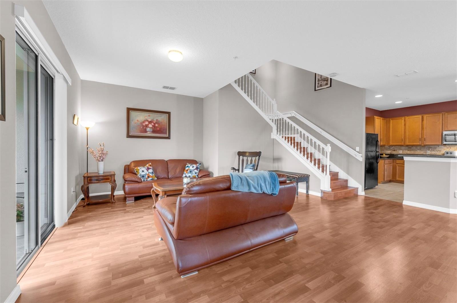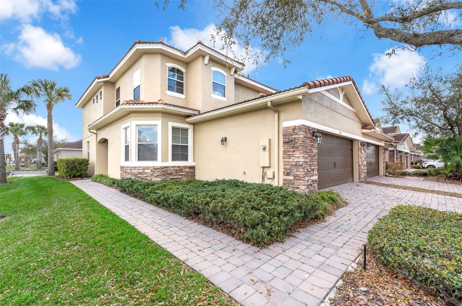 Welcome to 2080 Bent Grass Ave, Ocoee, FL near Winter Garden – A Rare 4-bedroom, 3-bath corner and end-unit townhome in the gated community of Villages of Wesmere, just steps from the clubhouse, pool, and playground. The HOA provides comprehensive coverage, taking care of exterior walls, roof, lawn care, and pool maintenance, ensuring truly hassle-free ownership. The main level features a formal dining room, open-concept living area, dinette, and a well-appointed kitchen with granite countertops, stainless steel appliances, tile backsplash, and breakfast bar. Newly replaced oven and dish washer. New air conditioner! Sliding glass doors lead to a screened lanai and fenced backyard. A first-floor bedroom with wood floors and access to a full bath is perfect for guests or a home office. Seller will also include any furniture that a buyer may want as well! Additional highlights include an indoor laundry room with built-in cabinetry, under-stair storage, and a mudroom cubby. Upstairs offers a loft, wood flooring, and a spacious primary suite with tray ceilings, dual closets, window seat, and en-suite bath with dual vanities, jetted tub, glass-enclosed shower, and private water closet. Tile roof, stone-accented façade, paver driveway, and 2-car garage. HOA includes lawn care and resort-style amenities. Convenient guest parking and a private sidewalk to the elementary school next door. Minutes from shopping, dining, and major highways in Ocoee, Windermere and beautiful downtown Winter Garden!