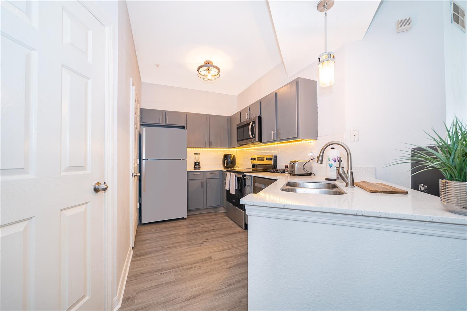Take a look at this lovely, well maintained 1 bed, 1 bath condo located in Ocoee! GATED community! BRAND NEW LUXURY VINYL FLOORING throughout - 2026! NEW INTERIOR PAINT- 2024. NEWER WATER HEATER - 2023. NEWER LIGHT FIXTURES - 2022. Beautiful, UPDATED KITCHEN with Stainless Steel appliances - 2025. A/C rebuilt - 2025. This home is PERFECT and features an open floor plan, balcony, laundry area, and ATTACHED 1 CAR GARAGE. Living area is spacious! Master bedroom features UPDATED master ensuite and two closets. Community features mature landscaping throughout, large pool, community center, fitness center and on site management. Location is super convenient to shopping, dining, highways & more! Schedule a showing TODAY!