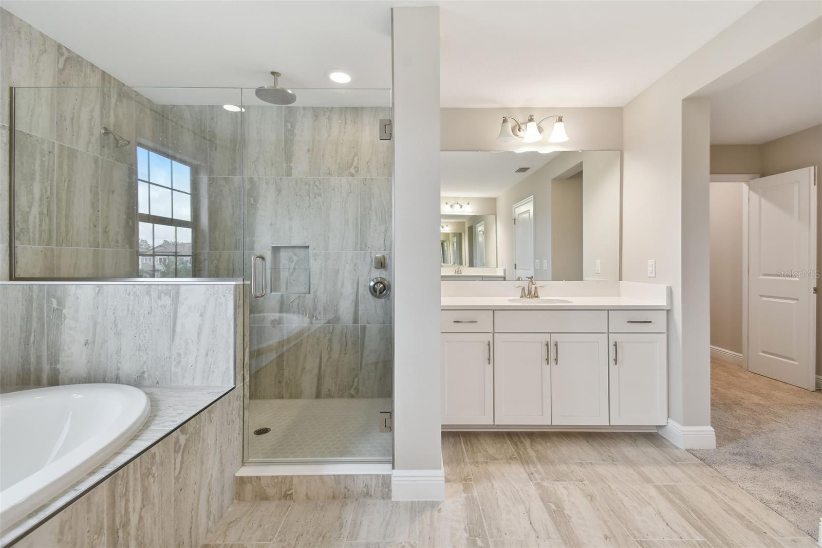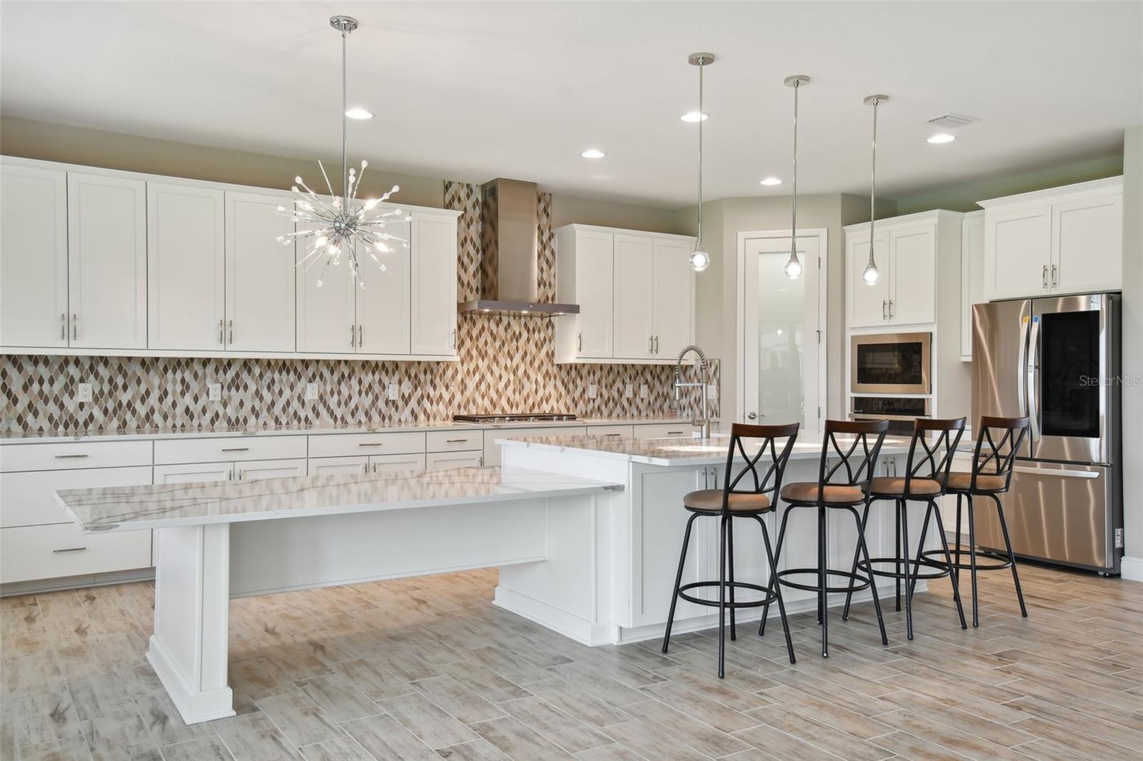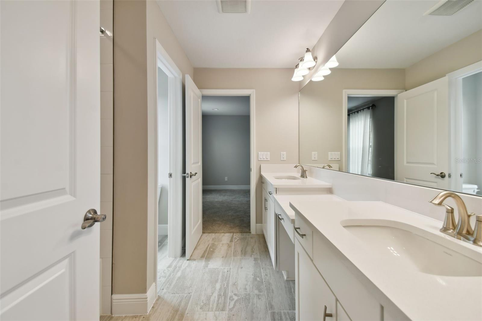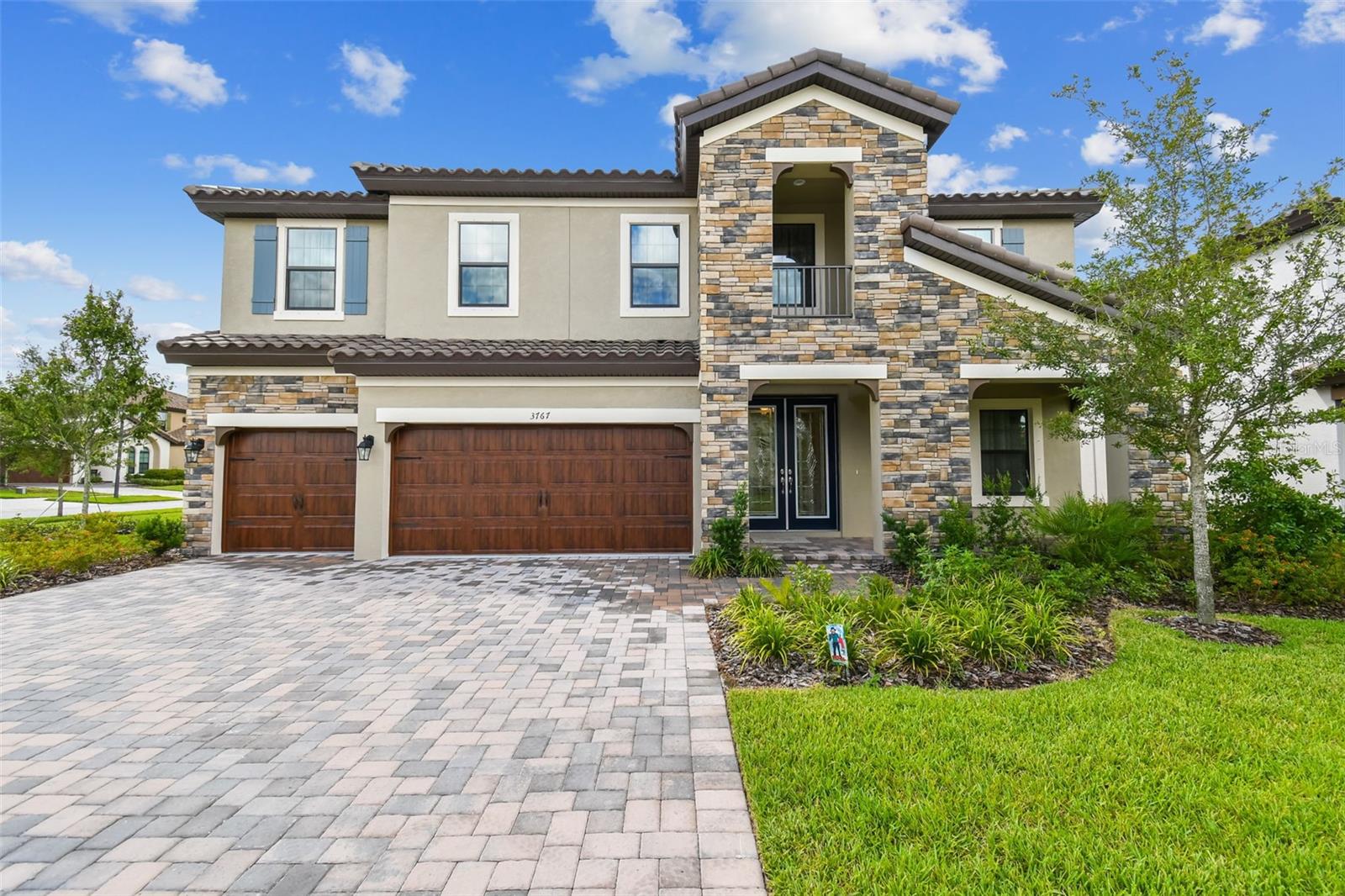 Be the first to live in this stunning and luxurious 5-bedroom, 4-bathroom, new-built home with many desirable features. The home sits on a spacious .23-acre fenced lot, providing serene water views. The open floor plan showcases top-of-the-line quartz countertops, a beautiful backsplash, and island lights in the kitchen, which is well-equipped with a gourmet 36" gas cooktop appliance package, a gas range, farmhouse sink, lighting under cabinets, a 2-door standing refrigerator, and a spacious pantry. Additional upgrades include a 4ft wrought iron fence, water softener with conditioner, extra can lighting in each bedroom, and a spacious second floor laundry room with a built-in sink. The home is located in the highly sought after Starkey Ranch community, offering trails, parks, and playgrounds. It's convenient location near major roads and highways provides easy access to Tampa airport, Downtown Tampa, and the beaches. This impeccable home is definitely worth the visit!