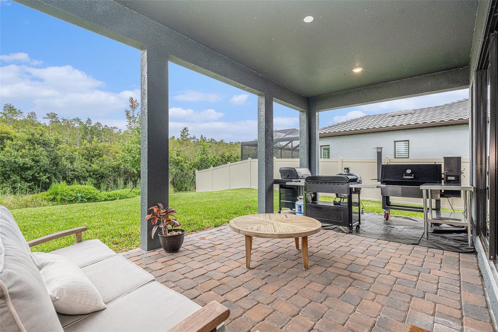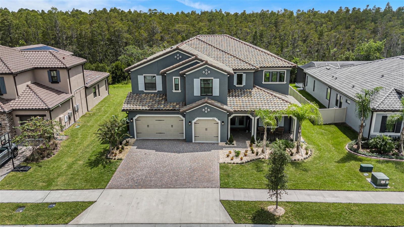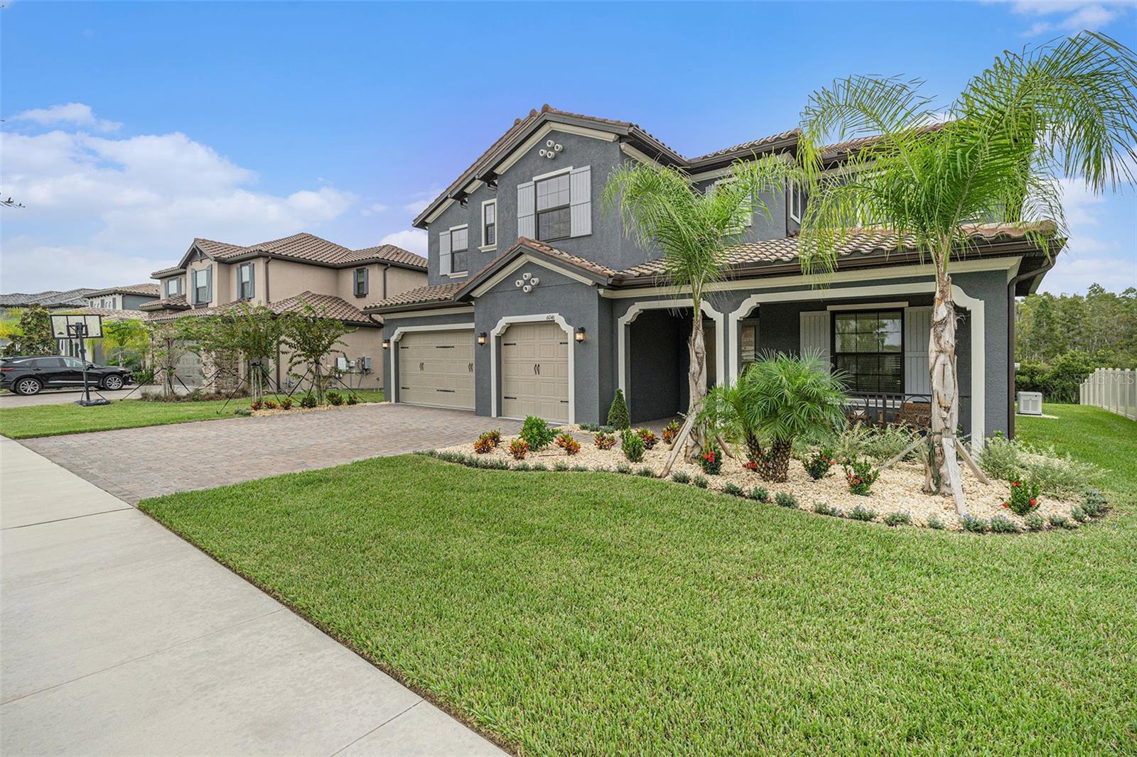 Welcome to this exquisite 2023 Lennar Mendocino in Odessa's Tarramor community featuring five spacious bedrooms and a stunning entryway with impressive double doors that lead you into a soaring two-story foyer. The home comes fully equipped with a whole house Generac generator, providing peace of mind during every season. Additional upgrades include custom closets in every bedroom, a generous pantry, and a chic chandelier in the dining area. Walk through the French doors where natural light floods the den, which boasts stylish tray ceilings, creating an airy ambiance. This spacious gem is thoughtfully designed with high-end touches and ample natural light throughout. The first-floor guest suite with private lanai access offers ideal accommodations for visitors or multi-generational living, ensuring both comfort and privacy. Awaken your inner chef in a kitchen designed with GE Profile appliances and Jennair refrigerator to inspire, featuring a premium gas cooktop, double ovens, and a generous island that seamlessly connects to the family room and casual dining area. A formal dining room with elegant tray ceilings offers additional space for gatherings or flexible use. Step outside to your expansive backyard, an entertainer’s dream with space for family gatherings, barbecues, and relaxation. Upstairs, you'll find a generous bonus area and loft - with balcony access- ready to host movie nights, game days, or casual gatherings. Each of the 4 bedrooms on the second floor feature an ensuite and each closet with a custom organization system. Retreat to the luxurious Primary Suite with balcony access—a serene spot to greet the day with a morning coffee! The suite showcases an expansive walk-in closet, and a spa-inspired bathroom with a soaking tub and an incredibly spacious walk-in shower for the ultimate relaxation experience. The thoughtfully designed laundry room includes a utility sink and added storage, ensuring functionality in every corner. Seller had plans for a future pool- please each out to Agent for potential options for the space. Enjoy exclusive access to Tarramor's resort-style amenities, including a pool, clubhouse, fitness center, and activity areas—all designed to complement your luxury lifestyle. With quick access to the Veterans Expressway, top-rated schools, shopping, and dining, this residence offers the perfect balance of tranquility and convenience. Don’t miss the opportunity to experience this exceptional home firsthand. Schedule your private showing today and discover the life of comfort, elegance, and ease that awaits you!