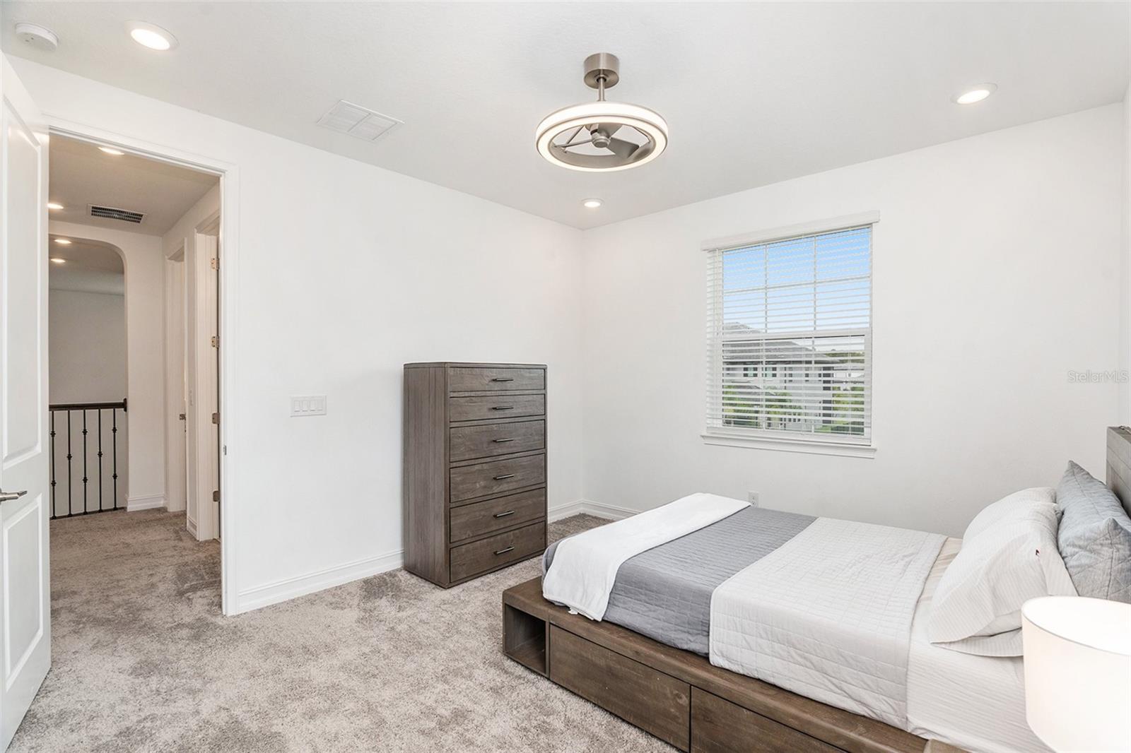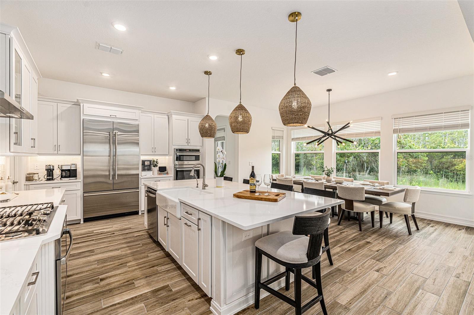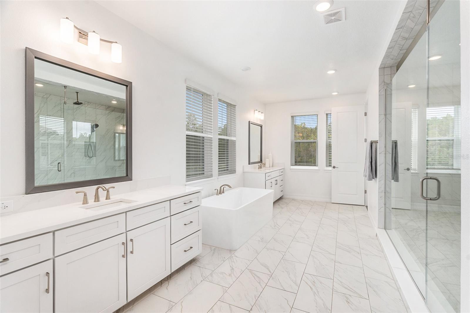 Welcome to this exquisite 2023 Lennar Mendocino in Odessa's Tarramor community featuring five spacious bedrooms and a stunning entryway with impressive double doors that lead you into a soaring two-story foyer. The home comes fully equipped with a whole house Generac generator, providing peace of mind during every season. Additional upgrades include custom closets in every bedroom, a generous pantry, and a chic chandelier in the dining area. Walk through the French doors where natural light floods the den, which boasts stylish tray ceilings, creating an airy ambiance. This spacious gem is thoughtfully designed with high-end touches and ample natural light throughout. The first-floor guest suite with private lanai access offers ideal accommodations for visitors or multi-generational living, ensuring both comfort and privacy. Awaken your inner chef in a kitchen designed with GE Profile appliances and Jennair refrigerator to inspire, featuring a premium gas cooktop, double ovens, and a generous island that seamlessly connects to the family room and casual dining area. A formal dining room with elegant tray ceilings offers additional space for gatherings or flexible use. Step outside to your expansive backyard, an entertainer’s dream with space for family gatherings, barbecues, and relaxation. Upstairs, you'll find a generous bonus area and loft - with balcony access- ready to host movie nights, game days, or casual gatherings. Each of the 4 bedrooms on the second floor feature an ensuite and each closet with a custom organization system. Retreat to the luxurious Primary Suite with balcony access—a serene spot to greet the day with a morning coffee! The suite showcases an expansive walk-in closet, and a spa-inspired bathroom with a soaking tub and an incredibly spacious walk-in shower for the ultimate relaxation experience. The thoughtfully designed laundry room includes a utility sink and added storage, ensuring functionality in every corner. Seller had plans for a future pool- please each out to Agent for potential options for the space. Enjoy exclusive access to Tarramor's resort-style amenities, including a pool, clubhouse, fitness center, and activity areas—all designed to complement your luxury lifestyle. With quick access to the Veterans Expressway, top-rated schools, shopping, and dining, this residence offers the perfect balance of tranquility and convenience. Don’t miss the opportunity to experience this exceptional home firsthand. Schedule your private showing today and discover the life of comfort, elegance, and ease that awaits you!