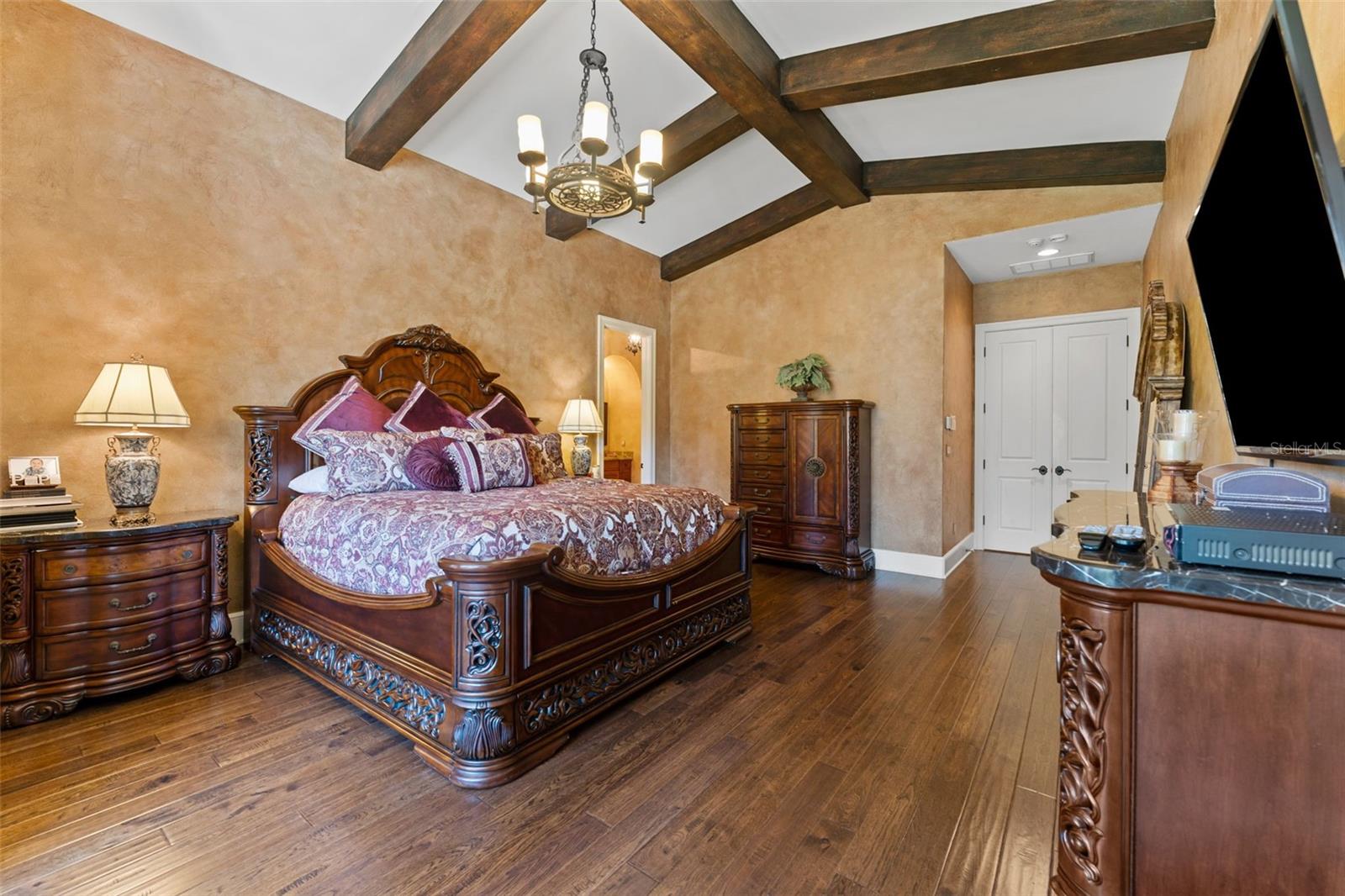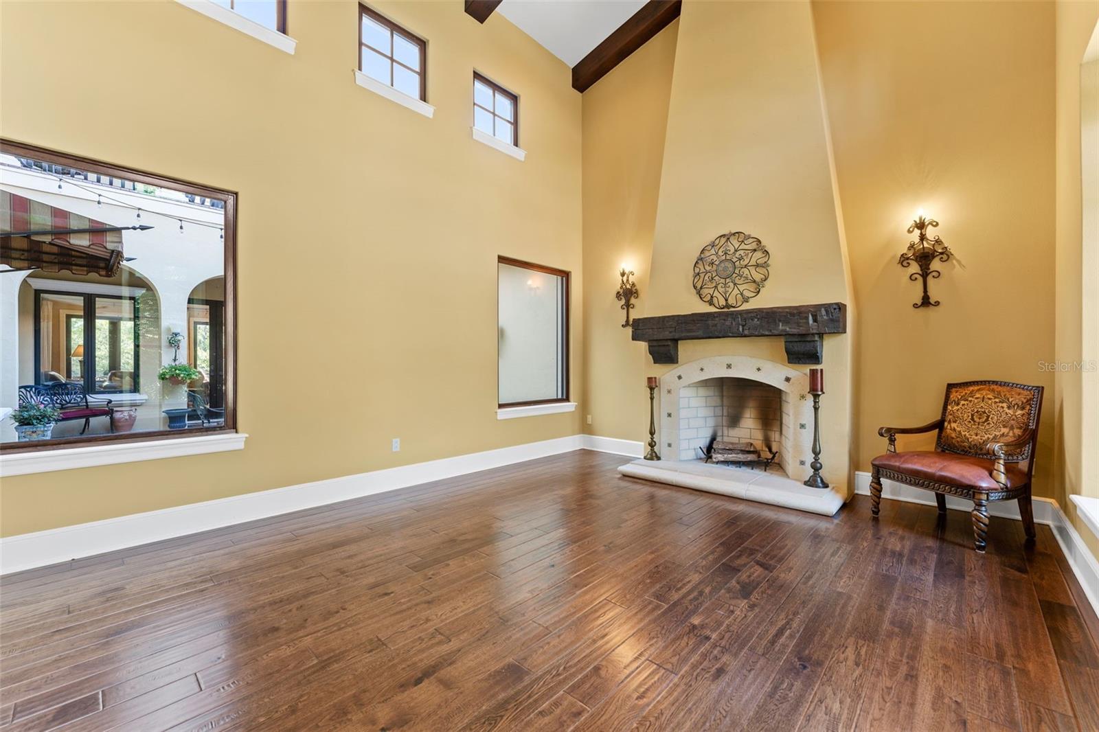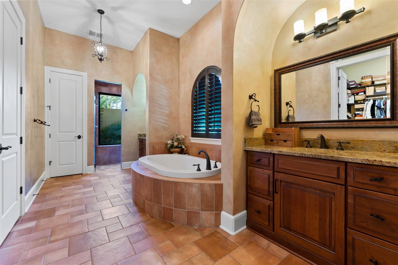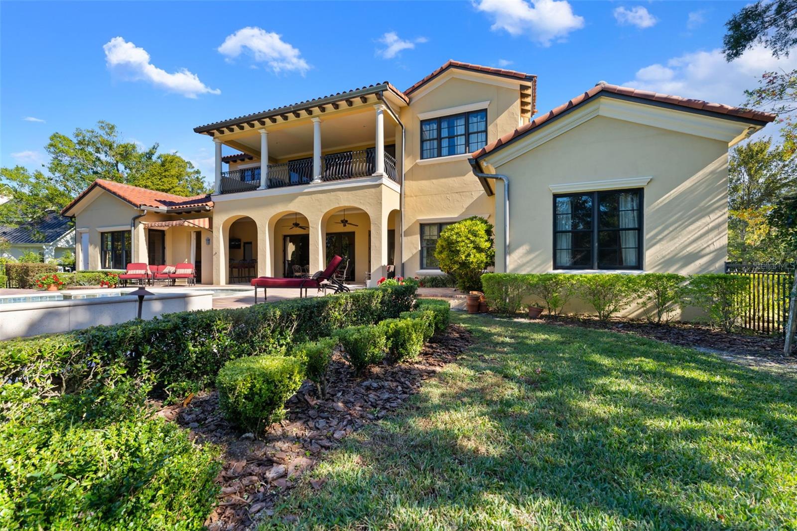 ** BRAND NEW Freshly Installed Roof!** Showings resuming NOW! Experience reimagined luxury in this breathtaking 5,630 sq ft estate built by The Fechtel Company, perfectly situated on a pristine 1.50 acres in the exclusive 24-hour guard gated enclave of Stillwater, where architectural brilliance meets unparalleled craftsmanship. Journey along the tree-lined driveway and stunning landscaping to a stately grand circular drive with a side-entry 3-car garage. Step through the portico into the rotunda-style foyer, complete with a brick-patterned inlay. This Mediterranean-style home features 4 bedrooms including a luxurious primary suite and guest suite located on the first floor, 5 full baths, 2 half baths, formal living and dining rooms, family room, a versatile den, a loft, an expansive bonus room with a mini-kitchen and sweeping balcony, and a unique double flex room. At its heart lies a private center outdoor courtyard, reminiscent of the timeless allure of an Italian piazza, and includes a wall-mounted fountain. Architectural highlights include soaring ceilings, exposed wood beams that enhance its Mediterranean charm, hand-scraped wood floors, crown molding, recessed lighting, art niches, Plantation shutters, rounded corners, and custom closet organizers, along with many other tailored features. The formal living room centers around a striking wood-burning fireplace, complemented by windows topped with transom windows that flood the space with natural light. The kitchen, a masterpiece of design and functionality, stands as the heart of the home, meticulously crafted for culinary creativity and cherished gatherings. It features premium imported Italian Granite countertops, 42” wood cabinets with crown molding, glass inserts, and under-cabinet lighting. The backsplash showcases deco tiles with a unique design under the vent hood. Equipped with GE MONOGRAM appliances, the kitchen boasts a 6-burner gas range, double oven, microwave, two dishwashers, and a spacious double-door refrigerator. Additional highlights include a high bar with a sink, an island with a second sink and cabinets on both sides, a butler’s pantry with a wine refrigerator, and a dining area for eight, creating the perfect setting for hosting and everyday living. Ascend the wood staircase, its risers adorned with unique Italian tile designs, leading to the loft equipped with a desk, cabinets, and a convenient laundry chute. Two spacious bedrooms with closet organizers and ensuite baths are on the second floor. Step into your private oasis, in this stunning outdoor space which features an infinity-edge pool with sun shelf for in-water relaxation, a spillover spa, and a paver pool deck with a gas firepit. Under cover is the lanai complete with an outdoor kitchen and bar for entertaining. All are framed by lush trees, a fenced yard, and serene views of the remaining property that overlooks a wooded area. Seize this amazing opportunity to make the estate of your dream your new home—schedule your visit today!