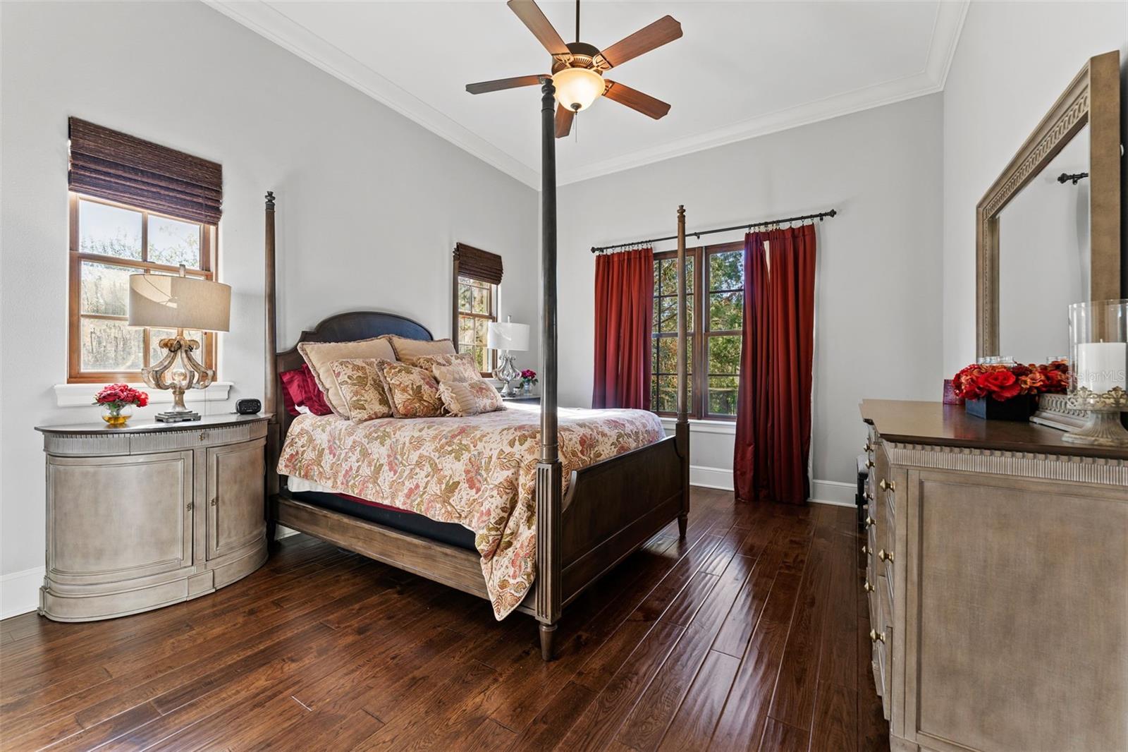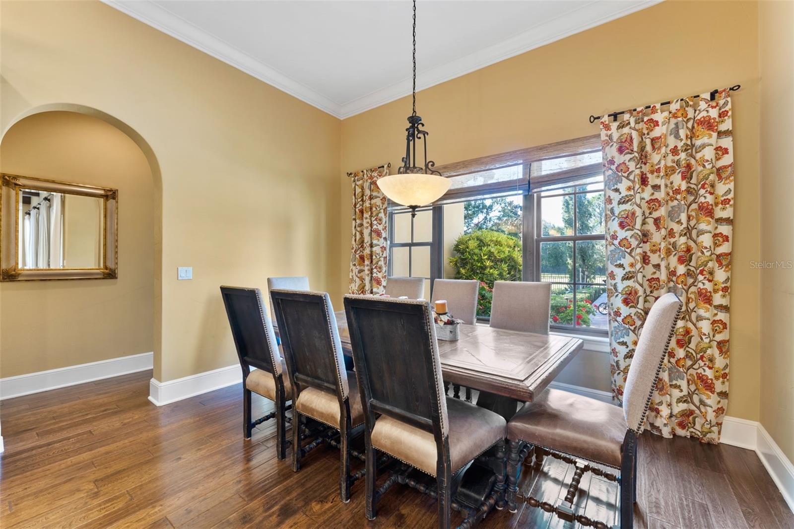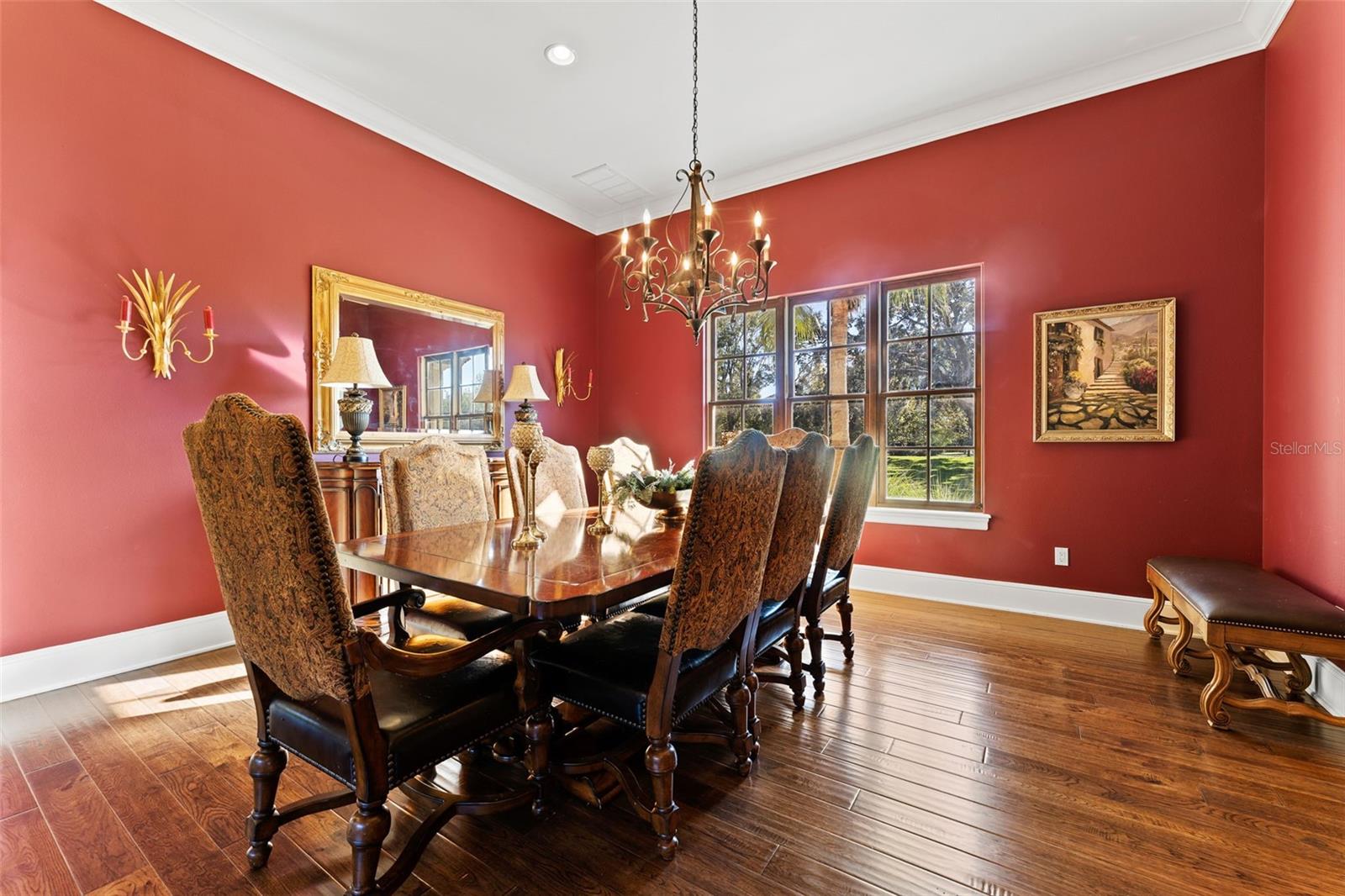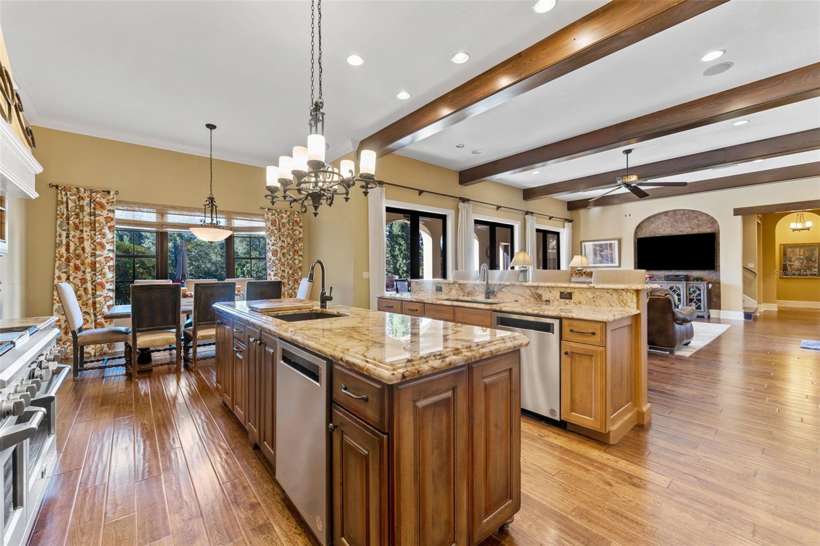 ** BRAND NEW Freshly Installed Roof!** Showings resuming NOW! Experience reimagined luxury in this breathtaking 5,630 sq ft estate built by The Fechtel Company, perfectly situated on a pristine 1.50 acres in the exclusive 24-hour guard gated enclave of Stillwater, where architectural brilliance meets unparalleled craftsmanship. Journey along the tree-lined driveway and stunning landscaping to a stately grand circular drive with a side-entry 3-car garage. Step through the portico into the rotunda-style foyer, complete with a brick-patterned inlay. This Mediterranean-style home features 4 bedrooms including a luxurious primary suite and guest suite located on the first floor, 5 full baths, 2 half baths, formal living and dining rooms, family room, a versatile den, a loft, an expansive bonus room with a mini-kitchen and sweeping balcony, and a unique double flex room. At its heart lies a private center outdoor courtyard, reminiscent of the timeless allure of an Italian piazza, and includes a wall-mounted fountain. Architectural highlights include soaring ceilings, exposed wood beams that enhance its Mediterranean charm, hand-scraped wood floors, crown molding, recessed lighting, art niches, Plantation shutters, rounded corners, and custom closet organizers, along with many other tailored features. The formal living room centers around a striking wood-burning fireplace, complemented by windows topped with transom windows that flood the space with natural light. The kitchen, a masterpiece of design and functionality, stands as the heart of the home, meticulously crafted for culinary creativity and cherished gatherings. It features premium imported Italian Granite countertops, 42” wood cabinets with crown molding, glass inserts, and under-cabinet lighting. The backsplash showcases deco tiles with a unique design under the vent hood. Equipped with GE MONOGRAM appliances, the kitchen boasts a 6-burner gas range, double oven, microwave, two dishwashers, and a spacious double-door refrigerator. Additional highlights include a high bar with a sink, an island with a second sink and cabinets on both sides, a butler’s pantry with a wine refrigerator, and a dining area for eight, creating the perfect setting for hosting and everyday living. Ascend the wood staircase, its risers adorned with unique Italian tile designs, leading to the loft equipped with a desk, cabinets, and a convenient laundry chute. Two spacious bedrooms with closet organizers and ensuite baths are on the second floor. Step into your private oasis, in this stunning outdoor space which features an infinity-edge pool with sun shelf for in-water relaxation, a spillover spa, and a paver pool deck with a gas firepit. Under cover is the lanai complete with an outdoor kitchen and bar for entertaining. All are framed by lush trees, a fenced yard, and serene views of the remaining property that overlooks a wooded area. Seize this amazing opportunity to make the estate of your dream your new home—schedule your visit today!