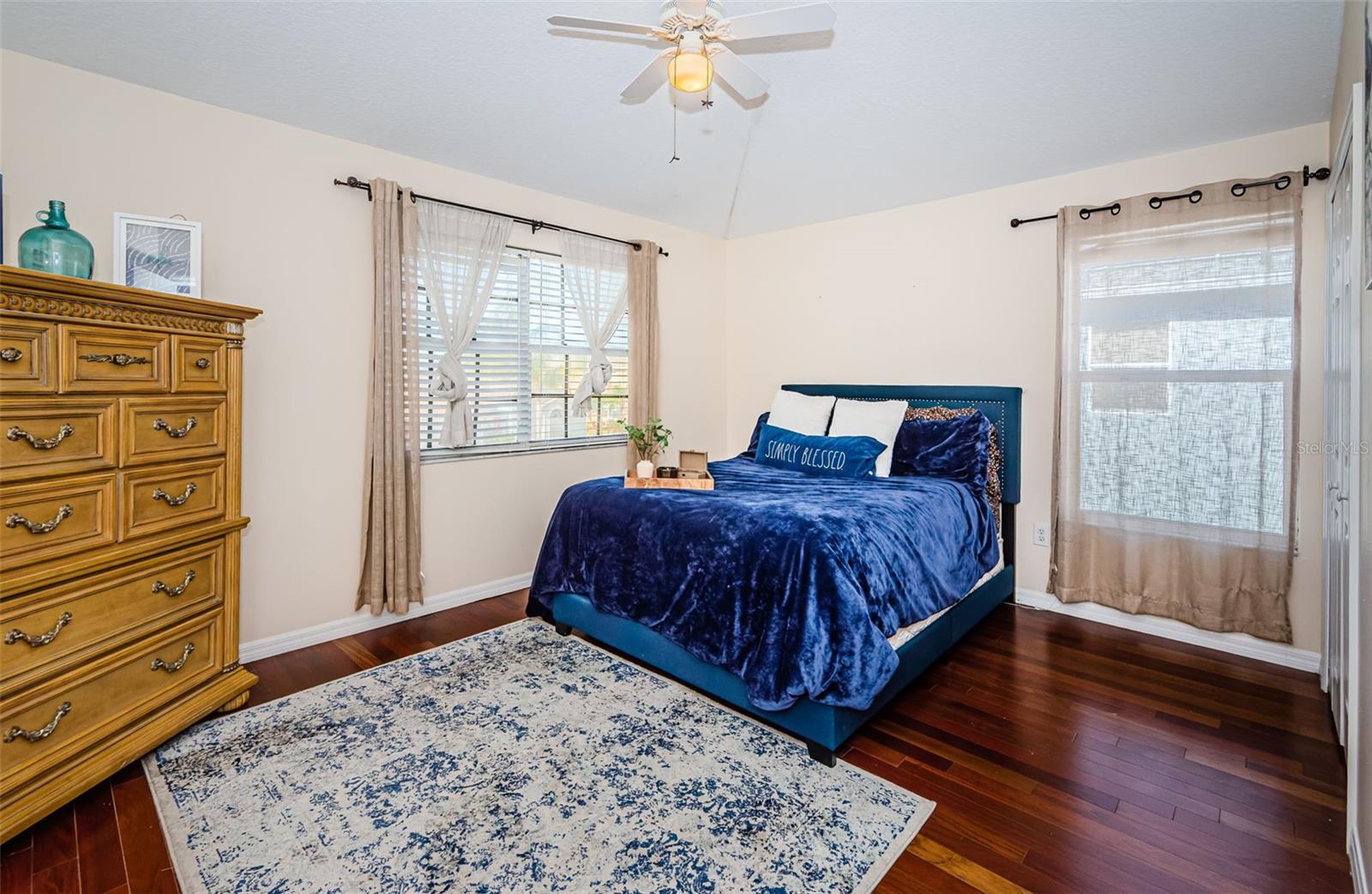 One or more photo(s) has been virtually staged. Nestled within the prestigious, 24 hour gated golf community of The Eagles, this stunning 4 bedroom, 2.5 bath residence embodies luxury and comfort. Meticulously maintained, this home features a spacious 3 car garage and a gorgeous solar powered pool - perfect for year-round enjoyment. Step inside to discover an inviting open floor plan that seamlessly connects the kitchen and dining area to expansive great room. The kitchen is a chef's delight, boasting solid wood custom cabinets, a center island, and elegant granite countertops. Enjoy the tranquility of no rear neighbors, as the property backs up to a beautiful horse pasture owned by a private owner. In addition to the peaceful setting, the property features a sturdy retaining wall and an underground drainage system that effectively prevent flooding, ensuring your home remains safe and dry. Retreat to the master suite, which offers a generous bedroom, a walk-in closet, and a luxurious ensuite with a double vanity, garden tub, and separate shower. A beautiful loft serves as the perfect bonus room, complemented by 3 additional bedrooms. Entertainment is a breeze with your outdoor patio, complete with a bar and grill, and a cozy fire pit- ideal for gatherings with family and friends. Additionally, a brand-new garage door adds an extra touch of modernity. This move in ready home boasts 2 AC units replaced within the last 6 years, ensuring comfort year round. The roof, replaced in 2015, features hurricane reinforced clips, providing added security and potentially lowering your insurance costs. The Eagles community features 2 (18) hole golf courses, a clubhouse that has a full bar and food menu and is situated within A+ rated school district. With convenient access to shopping, the Tampa airport, and stunning beaches, this home truly offers the best of Florida living. Don't miss the opportunity to call this exceptional property your new home. Call today to schedule your private showing.