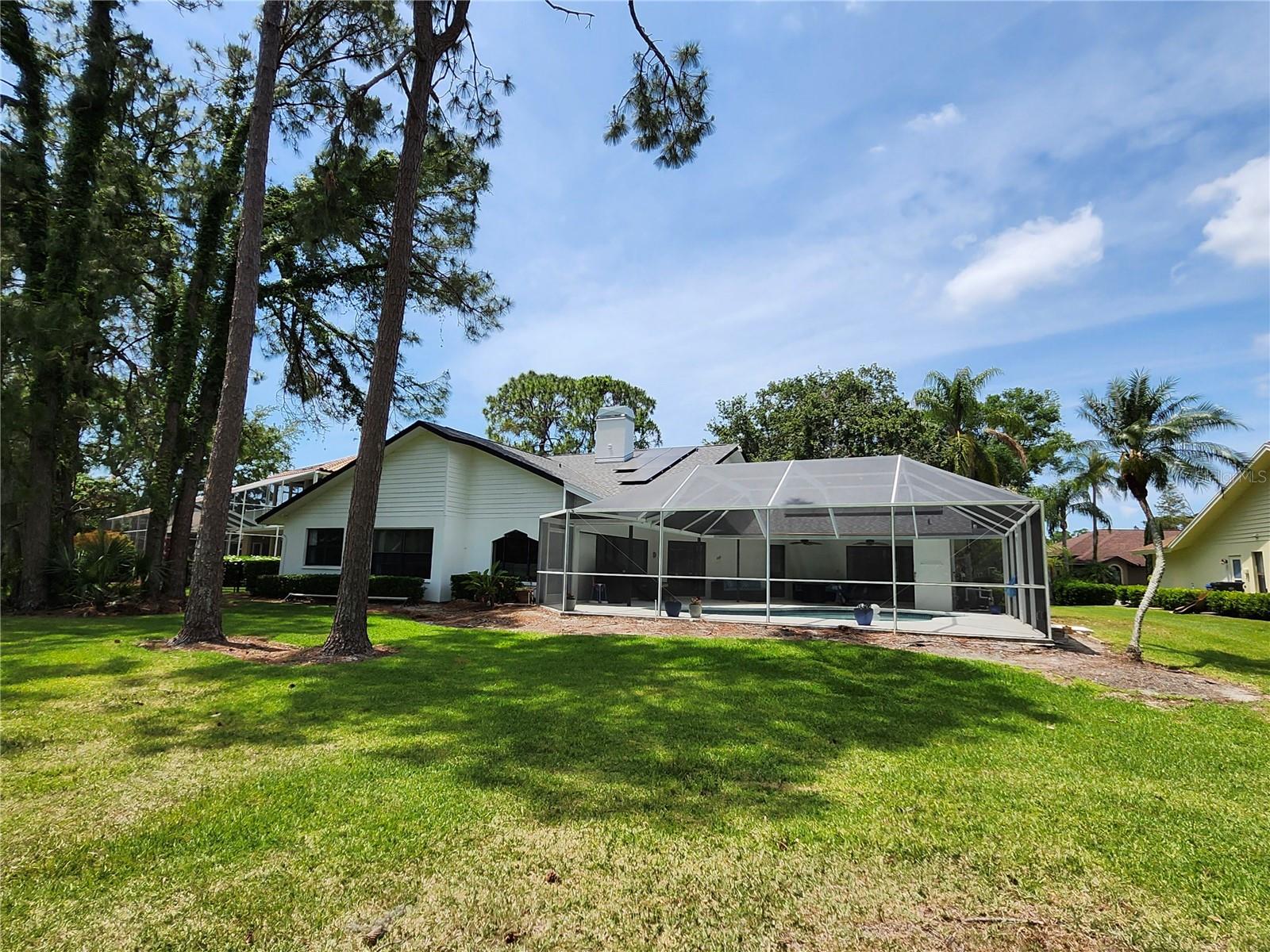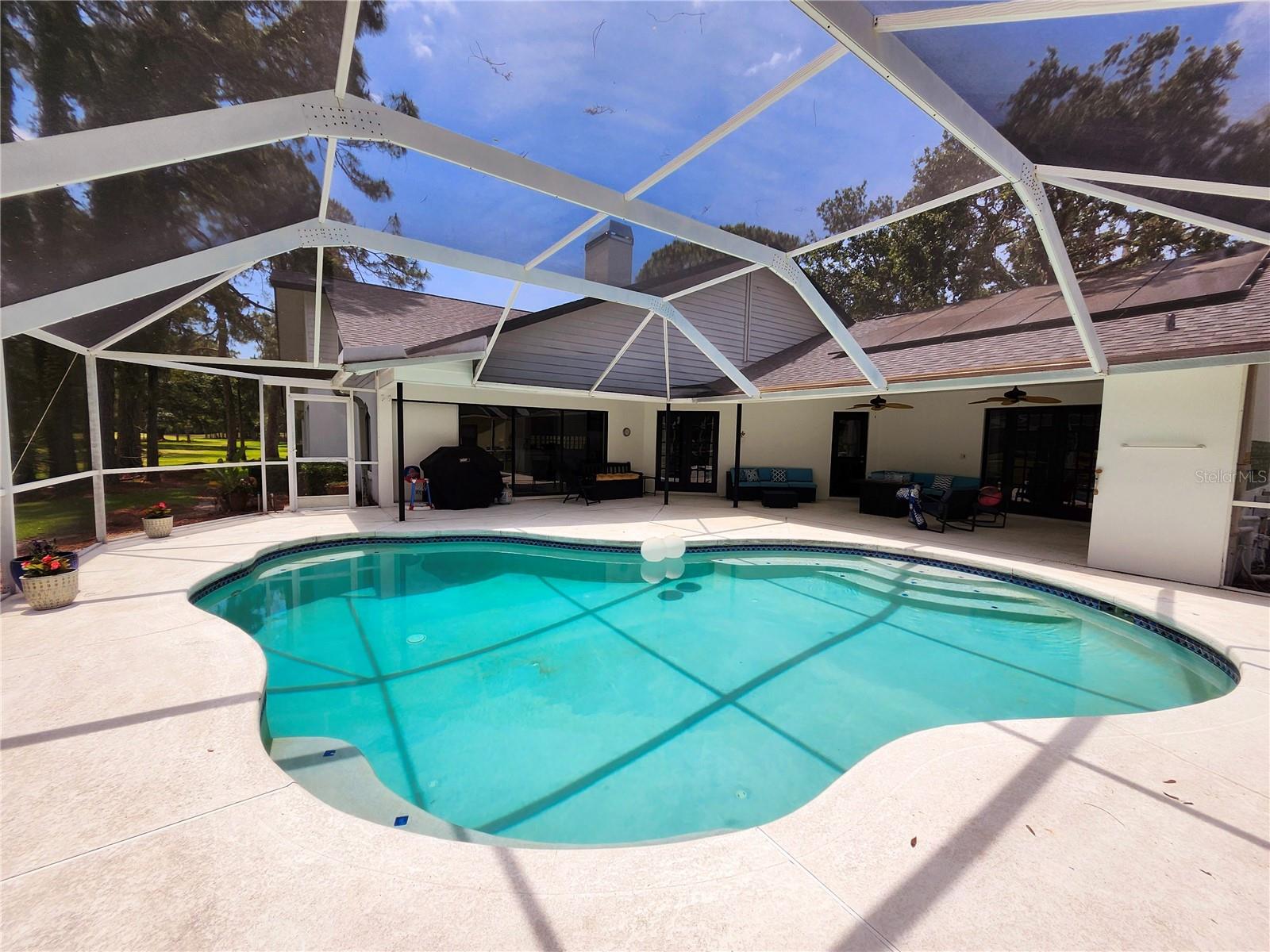 NOW PRICED UNDER VALUE! Come live your best Florida lifestyle in the highly desirable Golf Community of The Eagles! This spacious, single story, split 4 bedroom home with screen enclosed Saltwater Pool is located right off the championship golf course with absolutely stunning views! Rare find & one of the largest lots within the neighborhood. As you enter inside, you find the spacious living room with dining, an office, another seating spot, or gaming. The double sided fireplace between the living & family rooms along with spectacular views of the pool & back yard are nice highlights of the home. Entering to the left you are greeted with the 4th bedroom plus the primary suite with access & more views of the sparkling pool and beautiful outdoors. Your ensuite bath will become one of your new favorite getaways relaxing in the spa tub. The spacious walk in closet provides ample storage space for all your clothes and personal belongings. To the right, passing the living room you find the kitchen with solid wood cabinets & ALL NEW stainless steel APPLIANCES opening into the family & dining rooms which is perfect for entertaining amongst more amazing views of the sparkling pool and golf course. NEW ROOF 2022 & SOLAR PANELS! Reduced power significantly! SO MANY UPDATES within the last couple years which includes exterior & interior freshly painted, updated electric power panel, 2 newer HVAC's, new water heater, new hurricane grade front double doors & 2 side doors. New toilets, ceiling fans, & new pool pump. A special fenced in area was added on the side of the home, perfect as a dog run, so bring the pets! You will love this amazing home in the Prestwick neighborhood of the Eagles surrounded by 1000 acres of lush landscapes & conservation which is the perfect blend of nature & luxury! NO Flood Zone! Very LOW HOA! 24 hour security guard & gate, Tennis, Pickleball, Basketball courts, playground and several Running & Jogging trails. This is the best location!! Just a little North between East Lake of Palm Harbor & West Chase of Tampa. Easy commutes to the gorgeous Beaches, Tampa Airport, downtown, shopping, numerous restaurants, and did I mention A+ SCHOOL DISTRICTS? It really has it all!
