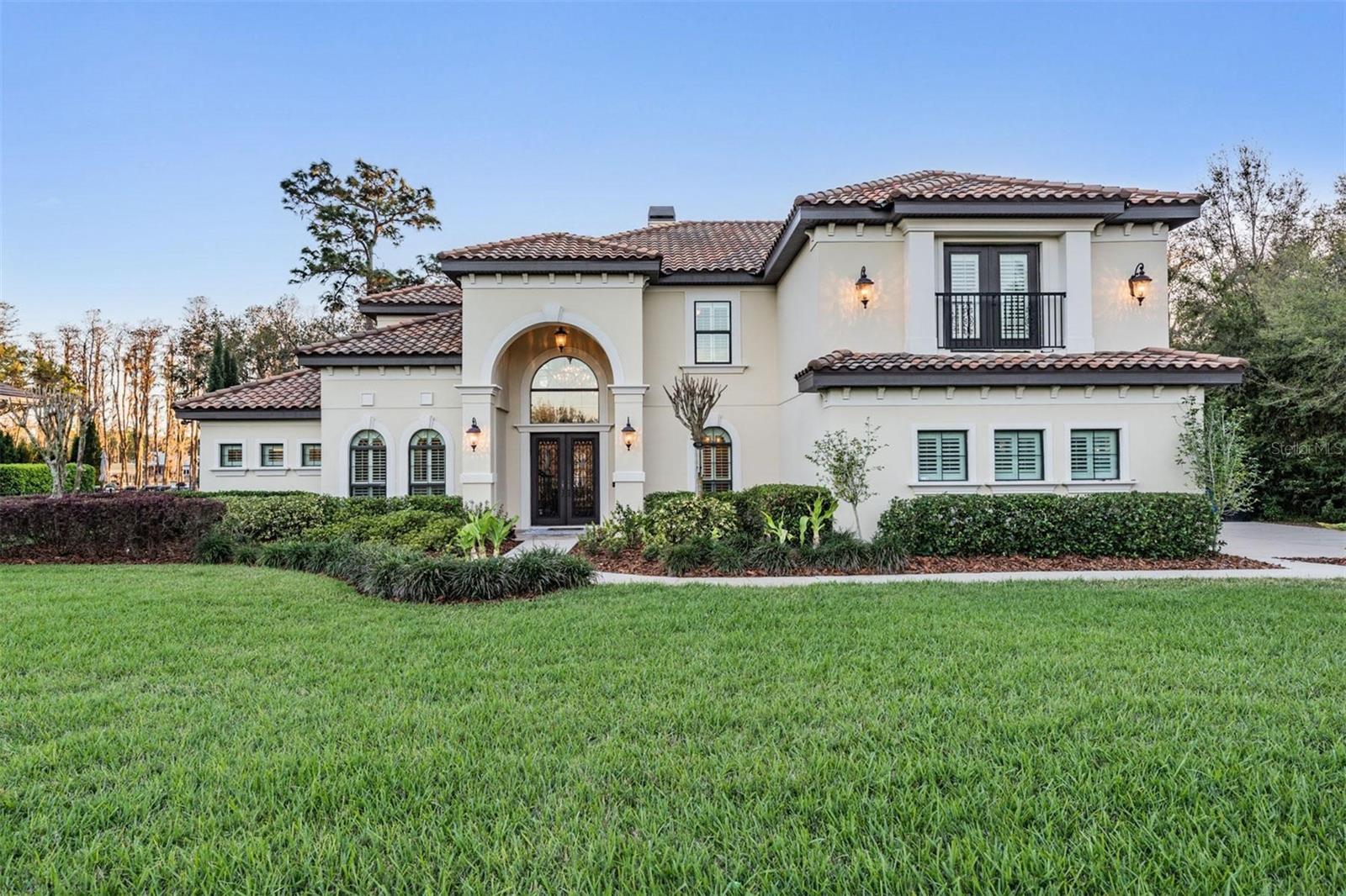 Tucked away within the prestigious gated enclave of The Reserve on Rock Lake, this extraordinary Mediterranean-style estate delivers refined lakefront living at its finest. Custom designed & masterfully crafted by Tamlin Homes, the residence features 5 bedrooms, 4 baths, a dedicated office, a versatile office or guest suite with private entrance, an upstairs bonus room, & a generous 3-car garage. Set on over 2 lush acres with direct frontage on Rock Lake, this property is part of the scenic Lake Pretty chain—connecting Rock Lake (53 acres), Lake Josephine (51 acres), and Lake Pretty (80 acres)—offering ample space for boating, skiing, & waterfront recreation. The expansive grounds include a fenced backyard & manicured lawn, creating the perfect backdrop for entertaining or serene lakeside relaxation. A long, private drive leads to the striking Mediterranean façade, where impressive architectural lines and tile roof details hint at the elegance inside. Step through the stately entry into a dramatic foyer highlighted by a sweeping staircase with ornamental wrought iron & intricate finishes. Soaring ceilings & large windows fill the home with light, enhancing the open & airy layout with views of the tranquil lake from almost every room. The open-concept living spaces are adorned with designer lighting, custom woodwork, tray ceilings, & rich hardwood & travertine flooring—all crafted with an eye for elegance and comfort. The heart of this home lies in the stunning, custom kitchen that will delight any chef. Featuring beautiful custom wood cabinetry, a large center island with high-end granite, copper farmhouse sink, step-in pantry, & top-of-the-line appliances, including a 6-burner gas range with griddle, paneled fridge/freezer, and a vented hood, this kitchen is a culinary masterpiece. A large dinette area with breathtaking lake views provides the ideal space to start your day. Bar area off the kitchen with beverage fridge and custom cabinetry - perfect for entertaining! The spacious dining & living room features a charming fireplace and French Doors that flow seamlessly to the outdoor oasis. The primary suite is a private sanctuary with its own lake views, spa-like ensuite bath, and custom walk-in closets. Downstairs you will find a generous size bedroom off of the Family Room with Private Entrance & adjacent Full Pool Bath. Upstairs you'll find 3 bedrooms each w/ walk-in closets (2 with en-suite jack-n-jill baths), & an upstairs media/bonus room features custom built-ins, wet bar, en-suite jack-n-jill bath w/ access to lg private balcony overlooking the pool area & Lake-front setting. Flexible floor plan offers a mudroom with built in workstation, 2 laundry rooms, a dedicated office, & much more. Step outside to your lake-front paradise with a resort-style saltwater pool with sundeck, covered lanai (pre plumbed and gas ready for outdoor kitchen), & meticulously landscaped yard that gently slopes down to your private dock. Upgraded composite dock & boat lift ensure you can enjoy your time on the Lake without worries. You will love the gorgeous views at sunset as you come in from a day on the water. Whether you’re enjoying quiet mornings on the water or sunset gatherings under the stars, this estate offers a lifestyle beyond comparison. Perfectly positioned in the heart of Odessa, this lakeside retreat offers convenient proximity to top-rated schools, shopping at Citrus Park & International Plaza, & Tampa International Airport.
