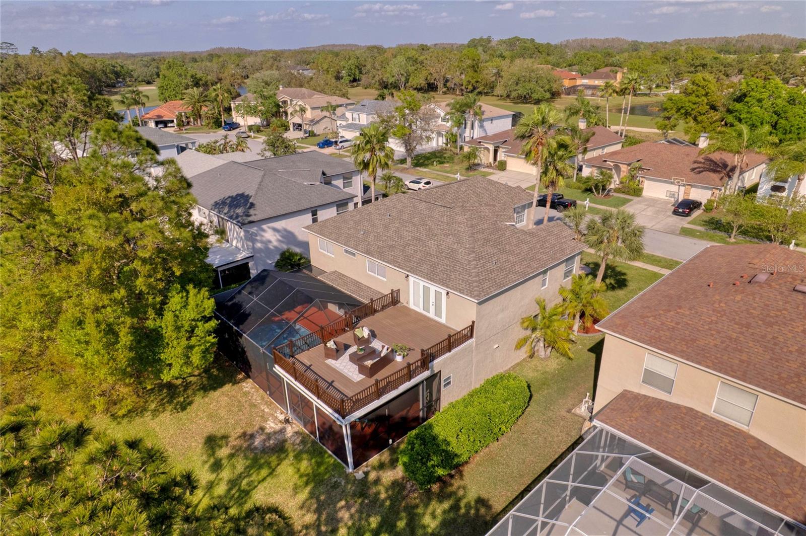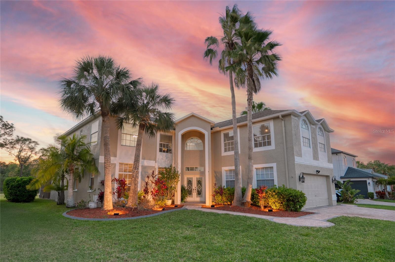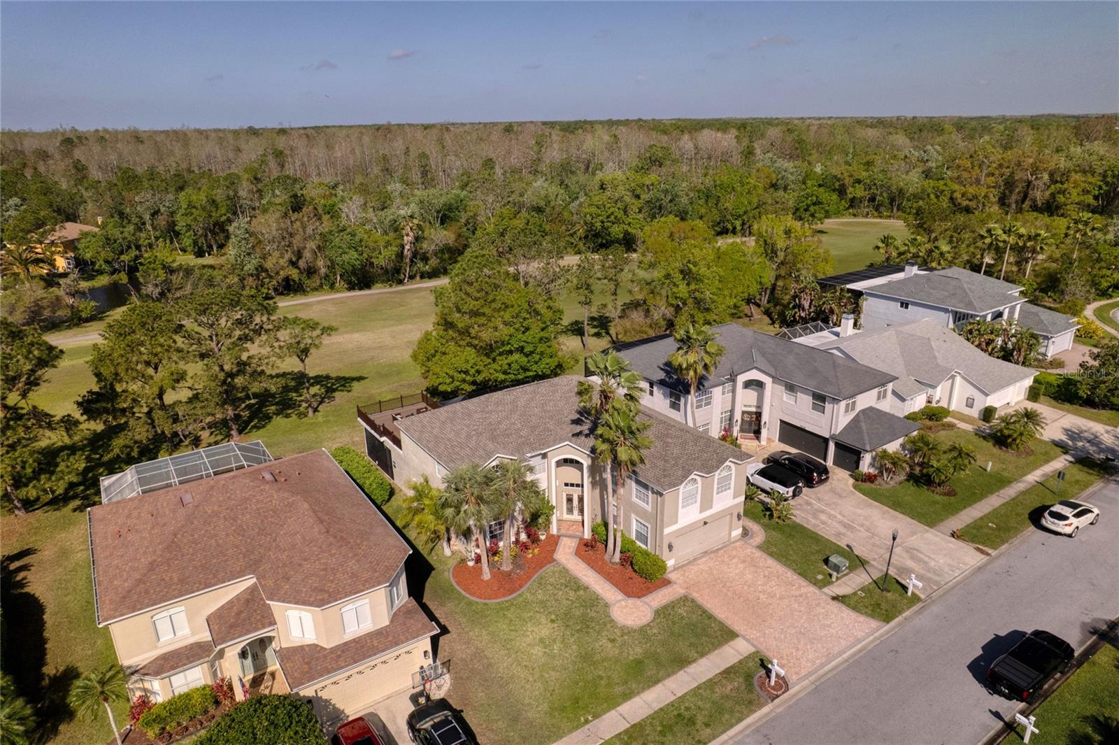 PRICE IMPROVEMENT PLUS MAJOR UPGRADES JUST COMPLETED!!! TWO BRAND NEW AC UNITS were installed in August 2025 and POOL DECK PROFESSIONALLY REPAINTED as well. This is in addition to all updates that were previously done!!!! Welcome to luxury living on the coveted 7th hole of the Forest Course. This EXECUTIVE-STYLE SMART HOME delivers 5 BEDROOMS, 3.5 BATHROOMS, HUGE BONUS ROOM, 2-CAR GARAGE, HEATED POOL, and a spectacular 470+ SQUARE FOOT TREX SUNDECK, all positioned on a QUIET CUL-DE-SAC WITH NO REAR NEIGHBORS. At 3,692 square feet on a premier lot, this home showcases OVER $100,000 IN PREMIUM UPGRADES and sits in a NON-FLOOD ZONE with NO STORM DAMAGE and NO FLOOD INSURANCE REQUIRED. The moment you arrive, stunning curb appeal greets you with PAINTED EXTERIOR IN THE LAST FEW YEARS, NEW PAVER WALKWAY AND DRIVEWAY. Step inside to discover LUXURY VINYL FLOORING and FRESH NEUTRAL PAINT THROUGHOUT, creating that contemporary feel buyers crave. The sunlit sitting room flows seamlessly into the formal dining space, perfect for entertaining, while the COMPLETELY REMODELED CHEF'S KITCHEN (2022) steals the show with 42-INCH LIGHT CABINETS, GRANITE COUNTERTOPS, FARMHOUSE SINK, STAINLESS STEEL APPLIANCES, NEW LG DISHWASHER, and SPACIOUS ISLAND. The OPEN FLOOR PLAN connects kitchen to family room and breakfast nook, creating bright, inviting space for everyday living. Your private backyard oasis centers around the 18,000-GALLON HEATED POOL RESURFACED A FEW YEARS AGO WITH SKY-TONE FLOOR FINISH. The FRESHLY PAINTED POOL DECK, OVERSIZED LANAI, FULL POOL BATHROOM, BRAND-NEW COVERED DECK WITH TRANQUIL LIGHTING, and EXTENDED OUTDOOR SEATING create the ultimate retreat. COLOR-CHANGING LED POOL LIGHTS, SOLAR LIGHTS ON UPPER DECK POSTS, and a NEWER BALL-RESISTANT SCREENED POOL CAGE deliver resort-like ambiance that will impress family and friends. FIVE SPACIOUS BEDROOMS include one on the first floor for convenience and flexibility. The OWNER'S SUITE serves as your personal sanctuary featuring DOUBLE CLOSETS, space for sitting area, PRIVATE DECK ACCESS, and SPA-LIKE EN-SUITE BATHROOM. Step through FRENCH DOORS onto your PRIVATE 470+ SQUARE FOOT TREX DECK to enjoy sunset views from this ECO-FRIENDLY, DURABLE, LOW-MAINTENANCE outdoor oasis. The FULLY REMODELED EN-SUITE BATHROOM (2022) showcases ITALIAN TILE, PEDESTAL TUB, WALK-IN SHOWER, and DOUBLE SINKS. Upstairs, the BONUS ROOM awaits your vision as media room, home theater, game room, or additional bedroom, while the flexible downstairs bedroom works perfectly as home office or guest retreat. PREMIUM UPGRADES include NEW ROOF (2022), ELECTRIC VEHICLE CHARGING STATION, NEW WATER HEATER, NEW LANAI, NEW UPPER DECK, ELECTRIC POOL HEATER, MYQ GARAGE DOOR OPENER WITH BUILT-IN CAMERA, OVERHEAD GARAGE STORAGE SHELVES, and APP-CONTROLLED SPRINKLER SYSTEM. SMART HOME TECHNOLOGY throughout adds convenience and modern appeal. Eagles residents enjoy 24/7 gated security, two championship 18-hole golf courses, clubhouse with dining, tennis, basketball, playground, pickleball, and vibrant community events. With LOW HOA OF JUST $123 MONTHLY and NO CDD FEES, this community provides exceptional value. You're ZONED FOR TOP-RATED BRYANT, FARNELL, AND SICKLES SCHOOLS while being minutes from shopping, dining, world-class beaches, Veterans Expressway, and just 9 miles from Tampa International Airport. Schedule your showing today!