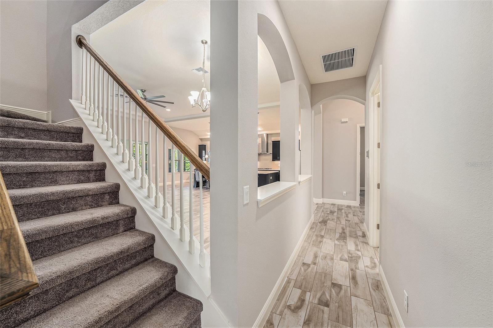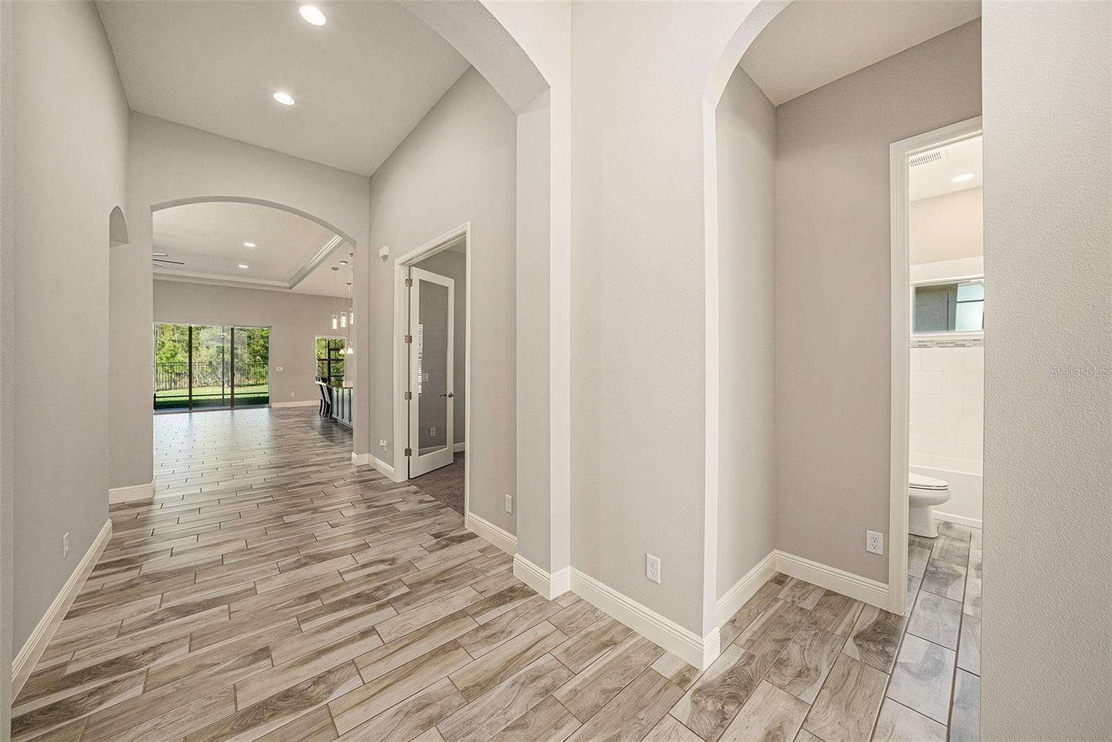 Welcome to an exquisite luxury living experience in the secluded, gated enclave of Anclote Reserve at Starkey Ranch. This immaculate 4-bedroom, 4-bathroom home offers unparalleled elegance and exceptional craftsmanship, perfectly situated in one of the most desirable communities. Boasting a tile roof and paver driveway, this home presents an inviting and grand first impression. Inside, you’ll be greeted by soaring 12-foot ceilings that enhance the bright, open layout, including a spacious foyer, grand room, and chef-inspired kitchen. Premium design finishes such as stainless-steel GE appliances, Timberlake Kinsdale Maple Espresso cabinetry, Principal Subway glass backsplash, and Level 6 Brown Fantasy Granite countertops create an atmosphere of refined sophistication. The Legacy 7x22 wood-look tile in Sterling complements the modern, warm aesthetic throughout. The heart of the home is the seamless flow between the grand room, gourmet kitchen, and casual dining area, all opening to a generous 280 sq. ft. covered lanai, perfect for entertaining and outdoor living. Whether you’re hosting guests or enjoying a quiet moment, this outdoor space is an extension of your home’s beauty and functionality. The owner’s retreat serves as a secluded sanctuary, offering spacious walk-in closets and a spa-inspired bath with a large walk-in shower. Secondary bedrooms provide ample privacy and comfort for family or guests. Upstairs, a versatile bonus room, with an additional bedroom and bath, creates the perfect space for guests or multi-generational living. This home offers a blend of private retreats and inviting living areas, making it ideal for both relaxation and entertaining. The award-winning Starkey Ranch community enhances your lifestyle with top-tier amenities, including schools, community pools, playgrounds, a dog park, and a 20-mile trail system. Enjoy a community center, garden, library, theatre, and more, with the added bonus of kayaks for water activities. Experience the finest in luxury living in Starkey Ranch’s most exclusive gated community and make this dream home your family's reality for years to come. Check out the video tour here: https://listings.nextdoorphotos.com/vd/178568381