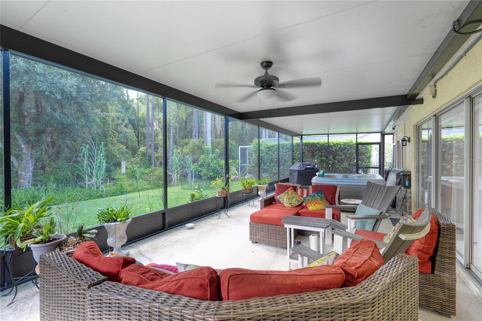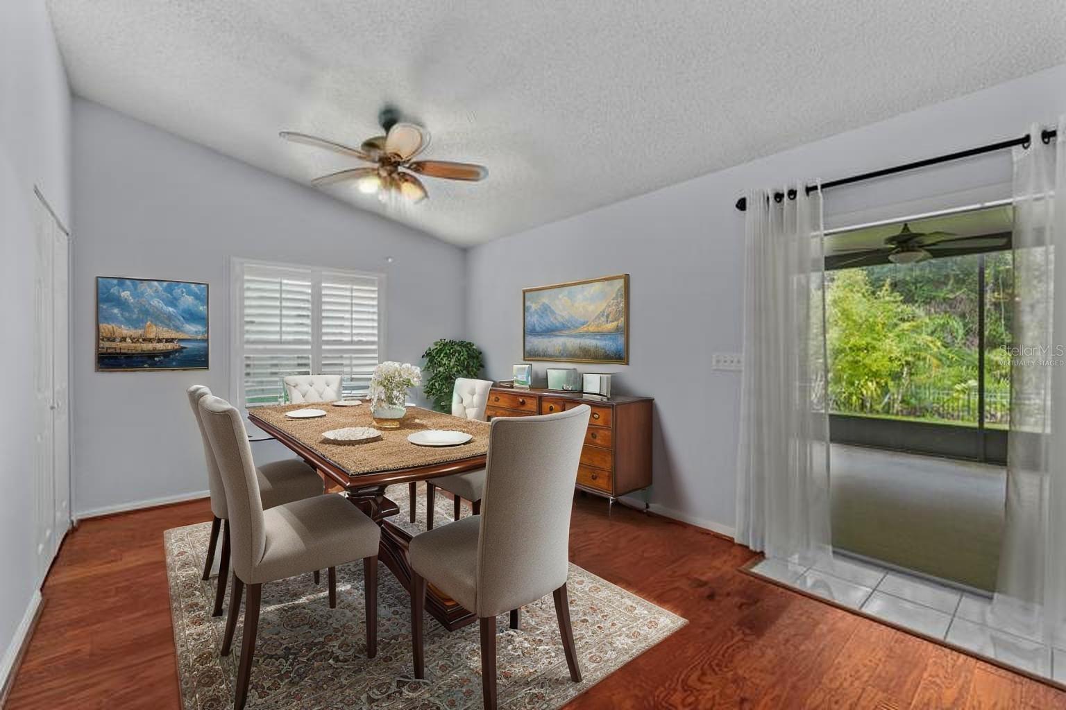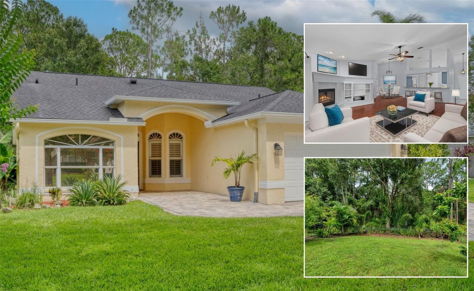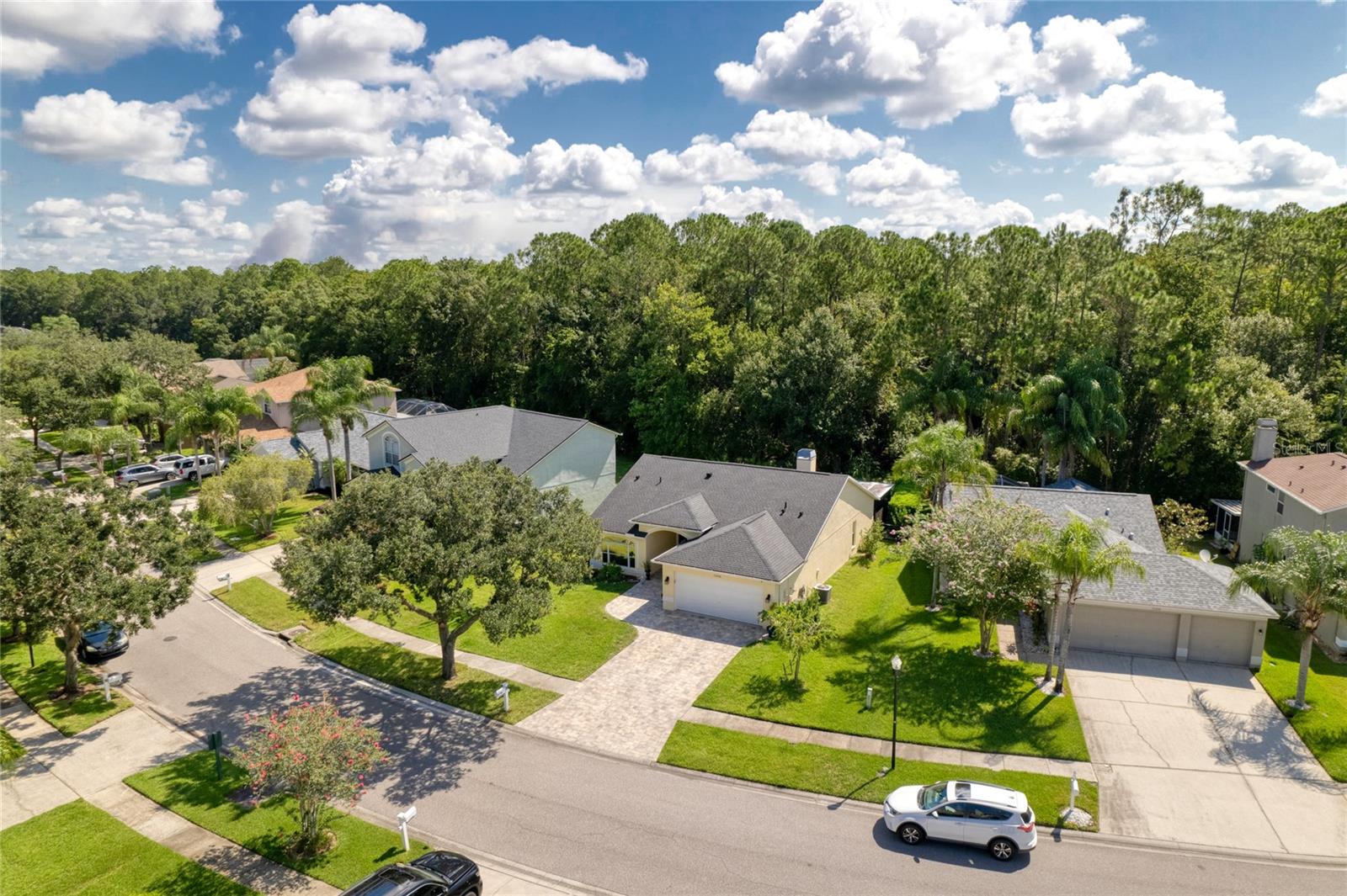 One or more photo(s) has been virtually staged. This is your opportunity to own this Beautiful and UPDATED “ONE STORY” home in THE EAGLES gated Golf Community near Westchase! With NO BACKYARD NEIGHBORS, you will enjoy WOODED CONSERVATION views and daily wildlife sightings! This 3 Bedroom/ 2 Bathroom/ 2 Car Garage Floorplan is OPEN and BRIGHT with the bedrooms split for privacy! As you arrive you can’t help but notice the CURB APPEAL the gorgeous pavers add to this lovely home. As you enter you will be impressed by the GLEAMING and UPDATED HARDWOOD FLOORS in the FAMILY, DINING and MASTER BEDROOM as well as the TILE in the remaining rooms. There is NO Carpet in this home! The family room features a gas fireplace for your enjoyment and the dining room could be easily converted back into a 4th bedroom if so desired. Every detail has been upgraded, including Stainless-Steel GE appliances, granite countertops, a stylish backsplash, a sleek faucet, a modern sink, and beautifully painted cabinets in the kitchen. The Primary Bathroom is a true oasis with an updated walk-in shower with floor to ceiling tile, frameless glass door, a spacious vanity with updated faucets and sinks. Step into the lanai and relax in the comfort of the NEWER screen cage, accompanied by a convenient working sink and cooler. Unwind in the hot tub after a long day and enjoy the privacy provided by the wrought iron fence surrounding the back and side of the property. Additional highlights include sunshades on all sliding doors, Roof 2019, custom closets with cedar wood panels, plantation shutters, paver walkway and driveway, and window tinting in the front bedrooms. Set within The Eagles community, residents enjoy 24/7 security, a golf course with a clubhouse, basketball courts, and an on-site restaurant. With low HOA fees of just $132/month and no CDD fees, this community provides excellent value. Zoned for top-rated Mary Bryant, Farnell, and Sickles schools, conveniently located near Nine Eagles Drive, Racetrack Road, Tampa International Airport, and world-renowned beaches, this move-in-ready home is ready to welcome its new owners. Don’t miss the chance to make this beautiful property yours!