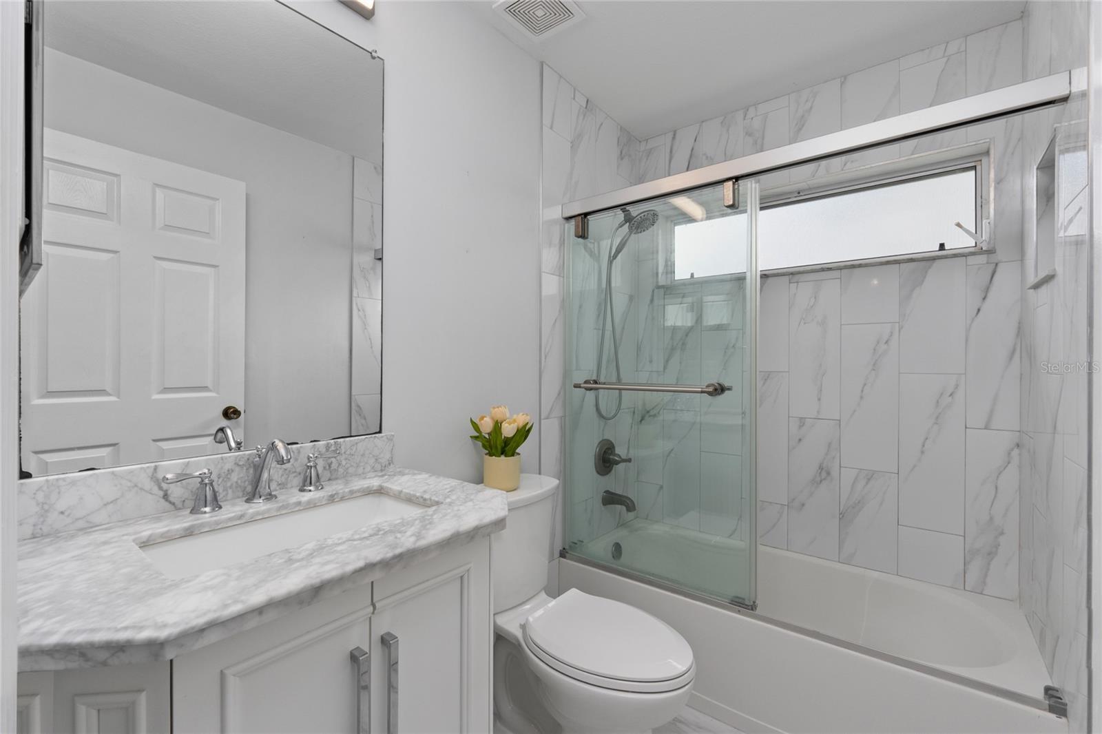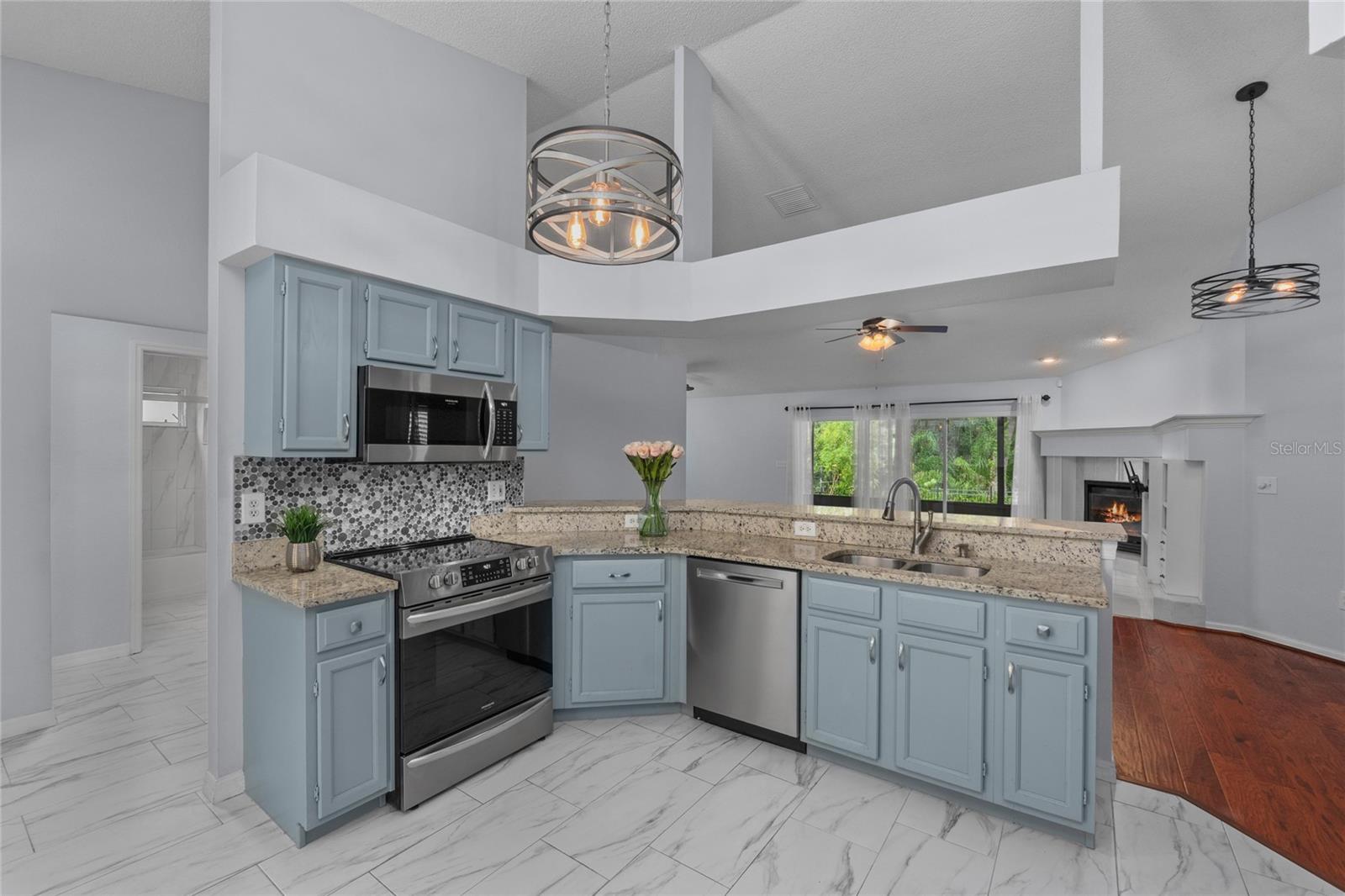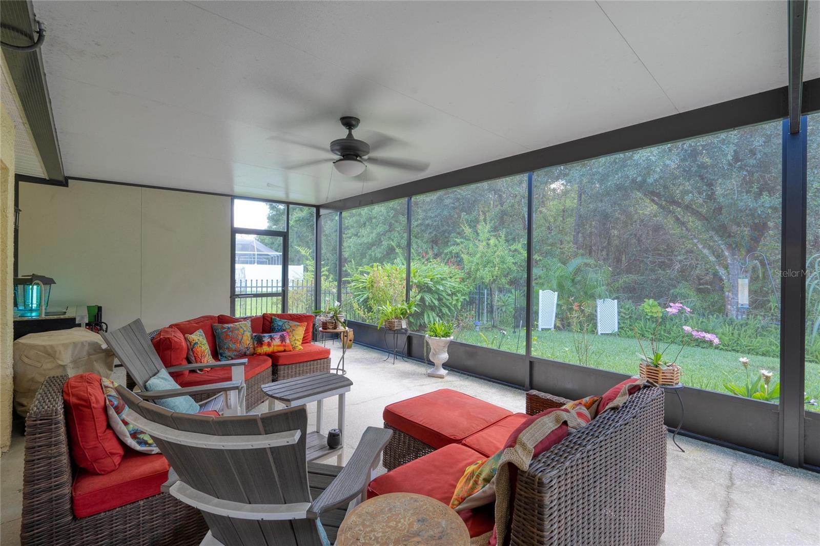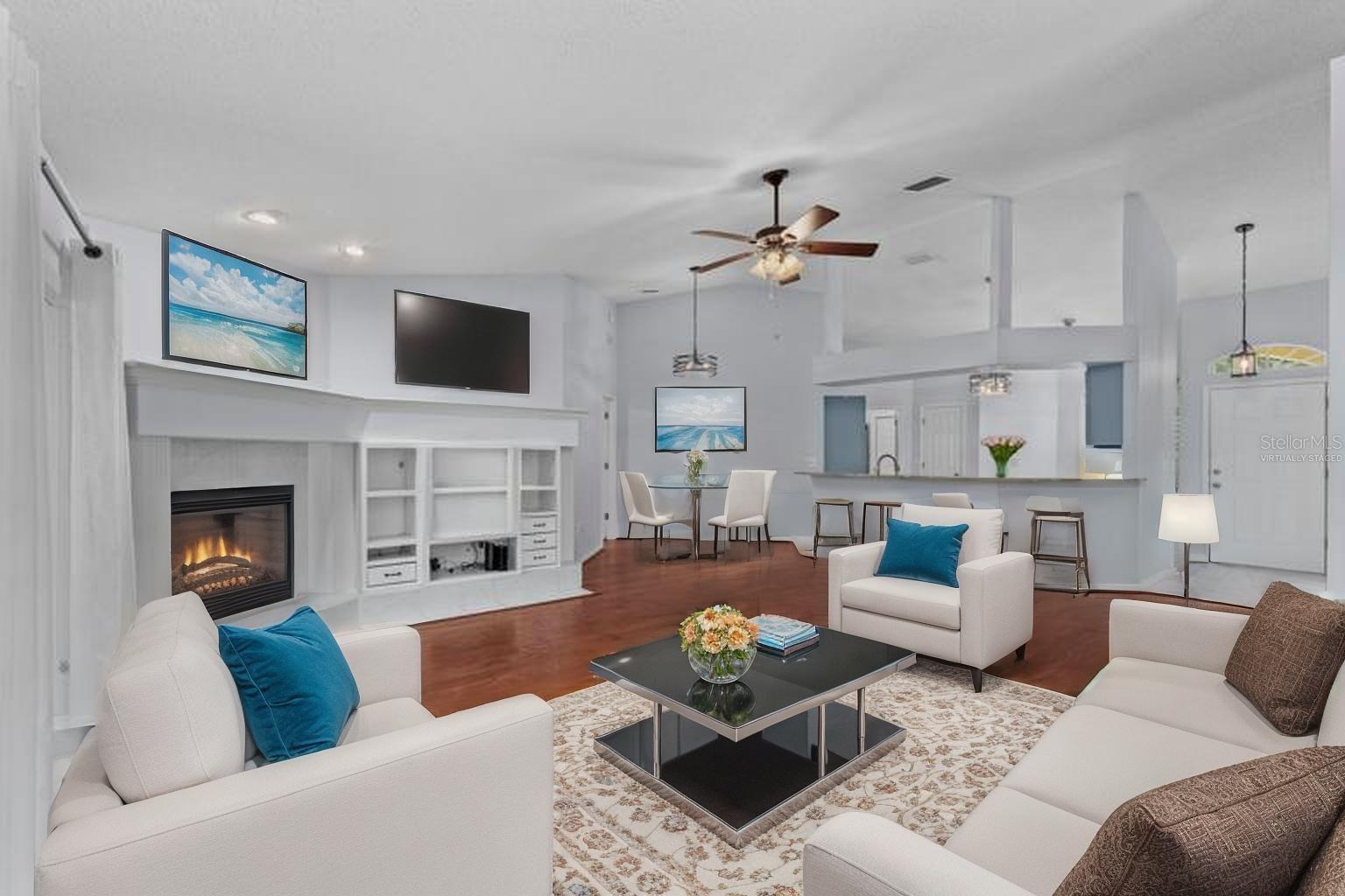 One or more photo(s) has been virtually staged. This is your opportunity to own this Beautiful and UPDATED “ONE STORY” home in THE EAGLES gated Golf Community near Westchase! With NO BACKYARD NEIGHBORS, you will enjoy WOODED CONSERVATION views and daily wildlife sightings! This 3 Bedroom/ 2 Bathroom/ 2 Car Garage Floorplan is OPEN and BRIGHT with the bedrooms split for privacy! As you arrive you can’t help but notice the CURB APPEAL the gorgeous pavers add to this lovely home. As you enter you will be impressed by the GLEAMING and UPDATED HARDWOOD FLOORS in the FAMILY, DINING and MASTER BEDROOM as well as the TILE in the remaining rooms. There is NO Carpet in this home! The family room features a gas fireplace for your enjoyment and the dining room could be easily converted back into a 4th bedroom if so desired. Every detail has been upgraded, including Stainless-Steel GE appliances, granite countertops, a stylish backsplash, a sleek faucet, a modern sink, and beautifully painted cabinets in the kitchen. The Primary Bathroom is a true oasis with an updated walk-in shower with floor to ceiling tile, frameless glass door, a spacious vanity with updated faucets and sinks. Step into the lanai and relax in the comfort of the NEWER screen cage, accompanied by a convenient working sink and cooler. Unwind in the hot tub after a long day and enjoy the privacy provided by the wrought iron fence surrounding the back and side of the property. Additional highlights include sunshades on all sliding doors, Roof 2019, custom closets with cedar wood panels, plantation shutters, paver walkway and driveway, and window tinting in the front bedrooms. Set within The Eagles community, residents enjoy 24/7 security, a golf course with a clubhouse, basketball courts, and an on-site restaurant. With low HOA fees of just $132/month and no CDD fees, this community provides excellent value. Zoned for top-rated Mary Bryant, Farnell, and Sickles schools, conveniently located near Nine Eagles Drive, Racetrack Road, Tampa International Airport, and world-renowned beaches, this move-in-ready home is ready to welcome its new owners. Don’t miss the chance to make this beautiful property yours!