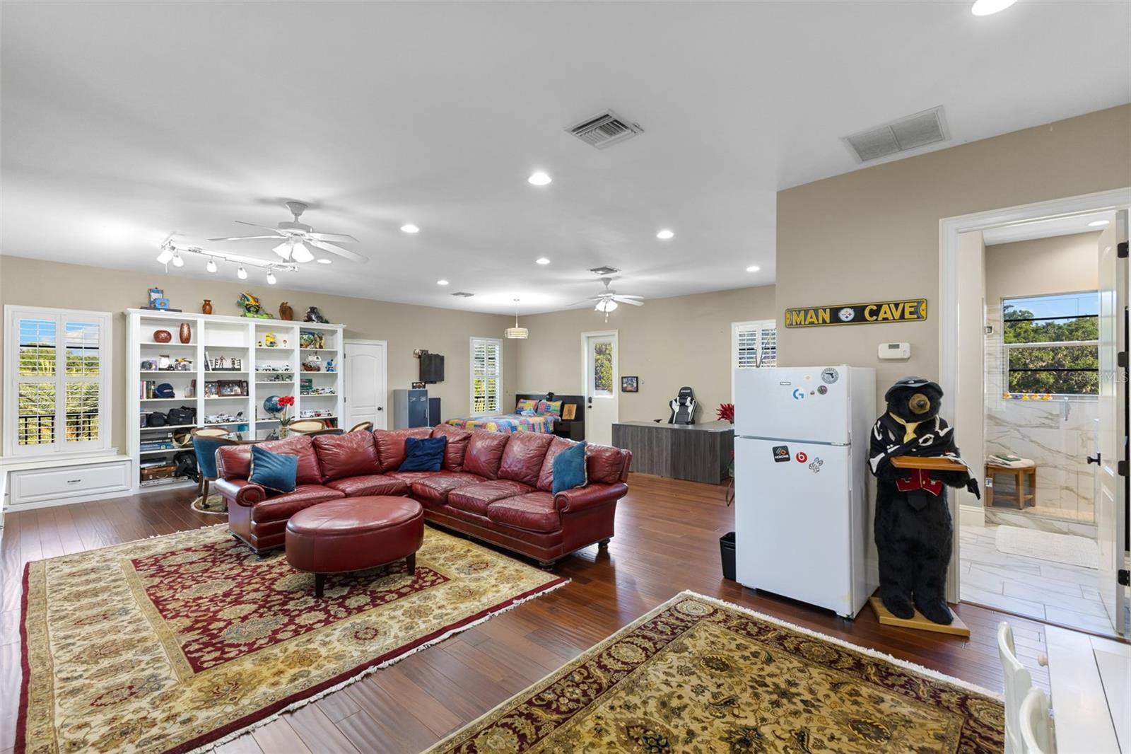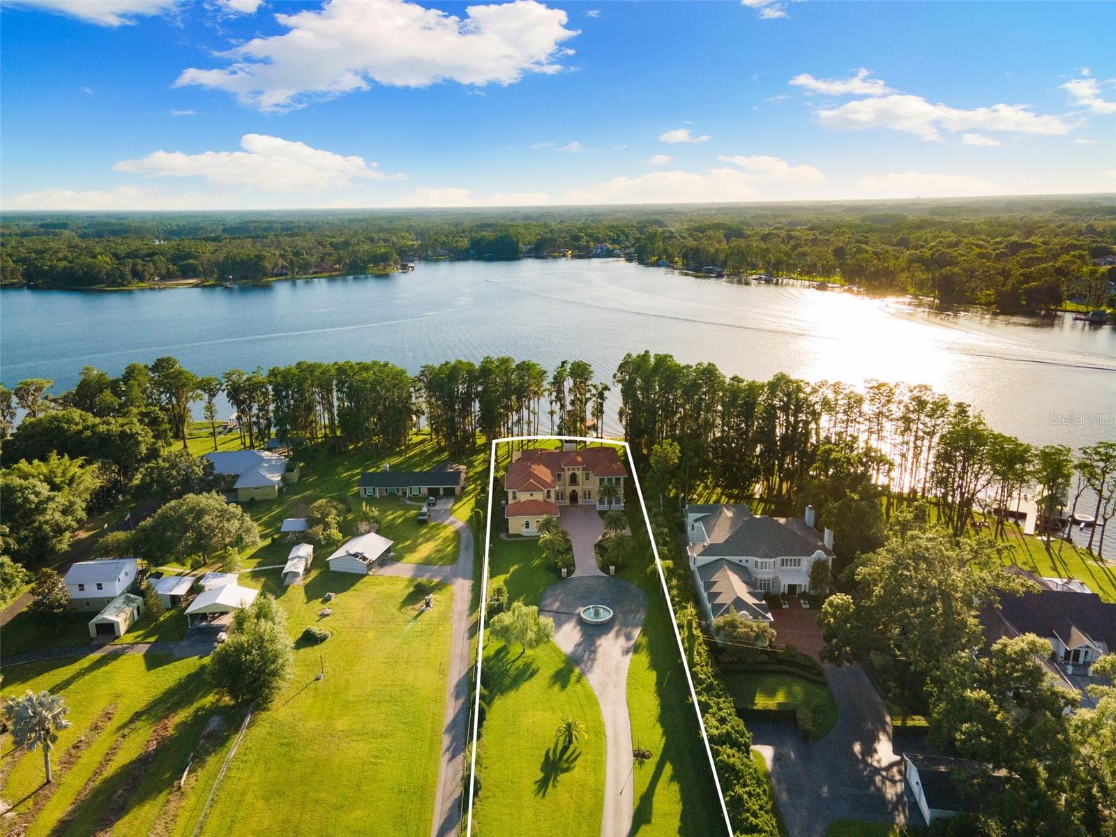 Welcome to this once-in-a-lifetime opportunity to own a breathtaking 2.38-acre gated estate directly on Lake Keystone—Odessa’s most sought after private ski lake. One of only 22 properties on Lake Keystone with over 2 acres of land and western exposure, this remarkable estate offers more than just a home—it delivers a front-row seat to sunsets over the lake every evening. As you enter through the private gate equipped with a brand-new security system, a long private driveway winds its way to the very end of the property—creating an immediate sense of seclusion. The approach reveals a tranquil fountain and a circular roundabout drive that transitions into a paved motor court. This 6,850-square-foot estate showcases 5 spacious bedrooms, 5 full bathrooms, 2 half bathrooms, and a 4-car garage. Step inside and be welcomed by soaring ceilings and views of Lake Keystone. To your left, an elegant formal dining room awaits special gatherings, while to your right, a private guest bedroom and full bath provide comfortable accommodations for visitors. As you move into the heart of the home, the expansive living room and open-concept kitchen take center stage—both with French doors that open to the lanai. Just off the living room, a dedicated game room/bonus room awaits, complete with its own half bath and direct access to the outdoor patio—perfect for entertaining. Discreet pocket sliders lead from the game room into a private home theater. The first floor also includes an office with lake views, a half bath, a temperature-controlled wine cellar, and laundry room. Upstairs, the primary suite is a private retreat featuring its own balcony that overlooks the lake—ideal for morning coffee or taking in evening sunsets. Across the opposite wing, a luxurious guest suite mirrors this experience with a private balcony, full ensuite bathroom, and walk-in closet. A third upstairs guest bedroom also offers its own ensuite bath. For added convenience, a second laundry room is thoughtfully located on the upper level. An expansive in-law suite is thoughtfully positioned on the second level, offering both private access from inside the home and a separate exterior entrance along the side—perfect for multigenerational living or long-term guests. The suite features a generous layout, a full ensuite bathroom, and is pre-plumbed for a future kitchen installation. Step into the backyard and discover over 1,100 square feet of covered outdoor living space—complete with an outdoor kitchen, covered dining area, and an outdoor living room anchored by a fireplace and mounted TV. Beyond the covered lanai, a heated saltwater pool and elevated spa overlook the waters of Lake Keystone, while a path leads to a lakeside firepit and private dock with covered boat slip—offering effortless access to one of Tampa Bay’s premier ski lakes. Situated in Flood Zone X, this estate also features a powerful 40KW whole-house generator for peace of mind—all with no HOA restrictions, offering complete freedom to enjoy your private lakefront home.. Schedule your private showing today!