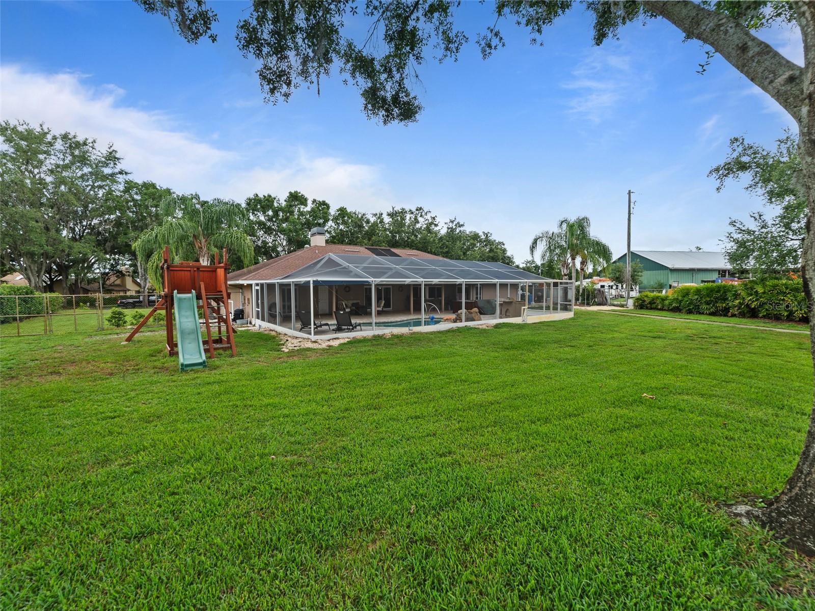 Welcome to your own slice of paradise on a spacious, oak-shaded lot nestled at the end of a quiet dead-end street. This beautifully upgraded home combines charm and function with hardwood floors, a wood-burning fireplace, and fully remodeled bathrooms that bring comfort and style throughout. The heart of the home is the stunning kitchen, featuring solid wood cabinetry, a tile backsplash, upgraded granite countertops, and a large center island perfect for gathering and entertaining. All major appliances stay, including a new washer (May 2025), making this home truly move-in ready. Step outside to your private backyard retreat, complete with a saltwater pool, both powered by variable-speed motors, plus a relaxing hot tub and a convenient outdoor kitchen setup—ideal for year-round entertaining. The irrigation and drip system keeps the mature landscaping thriving, while the well and septic system (cleaned May 2025) keep costs down. Additional highlights include: Triple-pane, argon-filled windows Hurricane Shutters 50 amp RV hookup & pad RainSoft water system (serviced June 2025) Bali cellular shades At the rear of the property, a fully finished 750 sq ft workshop offers endless possibilities. This space includes R30 ceiling and R5 wall insulation, a dedicated split A/C system, 220 power, and a solar attic exhaust fan, making it ideal for any project or creative pursuit. A rare find with room to breathe, this home delivers the lifestyle, privacy, and amenities you've been searching for.