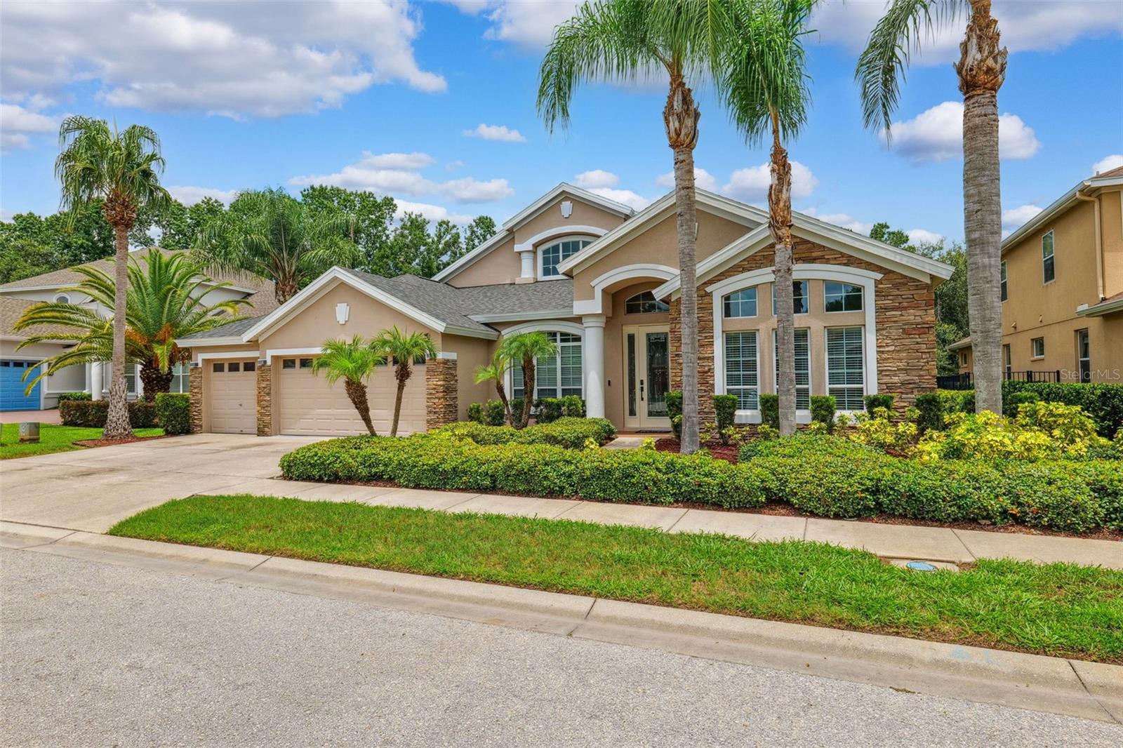 Your Home Search Ends Here! Welcome To This Stunning 5-Bedroom, 3-Bathroom, 3-Car Garage Home Offering 3,612 Sq Ft Of Thoughtfully Designed Living Space In The Highly Sought-After Community Of Grey Hawk. This Cul-de-sac Home is Move-In Ready And Packed With Luxury Upgrades, This Home Has It All! Step Inside To Find Soaring Cathedral Ceilings, Elegant Archways, Niches, Tray Ceilings, And An Abundance of Windows, Creating Architectural Interest Throughout. A Timeless 18-Ft Custom Feature Wall Anchors The Great Room With Oversized Marble-Inspired Ceramic Tile, A Color-Changing Electric Fireplace, And Built-In Space For A 90” TV And Sound Bar. The Heart Of The Home Is The Gourmet Kitchen Featuring A Wine/Coffee Bar, Beverage Refrigerator, Newer Double Ovens, Large Center Island With Storage And Outlets, Walk-In Pantry, And 42” Maple Cabinetry. Real Hardwood Floors Span The Entire Home With Ceramic Tile In Wet Areas, Complemented By Designer Light Fixtures And New Interior Paint. Retreat To The Expansive Primary Suite With Sitting Area, And Spa-Like Bath Including Dual Vanities, Step in Shower, Garden Tub, And Luxurious Walk-In Closet with Custom Closet System. Additional Highlights Include A Separate Office / Flex Space, Elegantly Appointed Dining Room, Upstairs Bonus Room / Theater With Custom Storage Wall, Large Laundry Room, Triple Split Floor Plan Features All Bedrooms Located on the First Floor, and Two Additional Full Bathrooms, One of Which Is Accessible From The Pool Deck. Entertain At Home In Your Heated Saltwater Pool Featuring A Sun Shelf, Spillover, And Fountain Powered By An Aqua-Cal Heat Pump (Warranty Through 2028). Enjoy The Screened Lanai With Travertine Pavers, Custom Trim Lighting, Rain or Shine Retreat To Your Covered Back Patio, Overlooking the Stunning Outdoor Oasis. Peace Of Mind Comes With A 2025 NEW ROOF (Transferable Warranty), WHOLE-HOME Generac Generator (500-Gallon Propane Tank, Serviced June 2025), Continuous Termite And Pest Protection, Fully Fenced Yard, And A Vivint Monitored Security System With Cameras And Smart Garage Access. Additional Features, Stone Accents on Front Elevation For Year-Round Curb Appeal, Smart Thermostats, Two Air Conditioning Units, Water Softener, Ceiling Fans Throughout, Prewired for Sound System in the Great Room and Upstairs Bonus Room, And An Epoxy-Coated Garage Floor. Located In A Pedestrian-Friendly Community With Lake Access via Shared Community Dock, A Manned Guard Gate, And A Park Offering Tennis, Volleyball, Basketball, Playground, And Dog Park. Plus Fun-Filled Holiday Celebrations All Year Long! This Home Combines Style, Function, And Total Peace Of Mind. Schedule Your Private Tour Today!