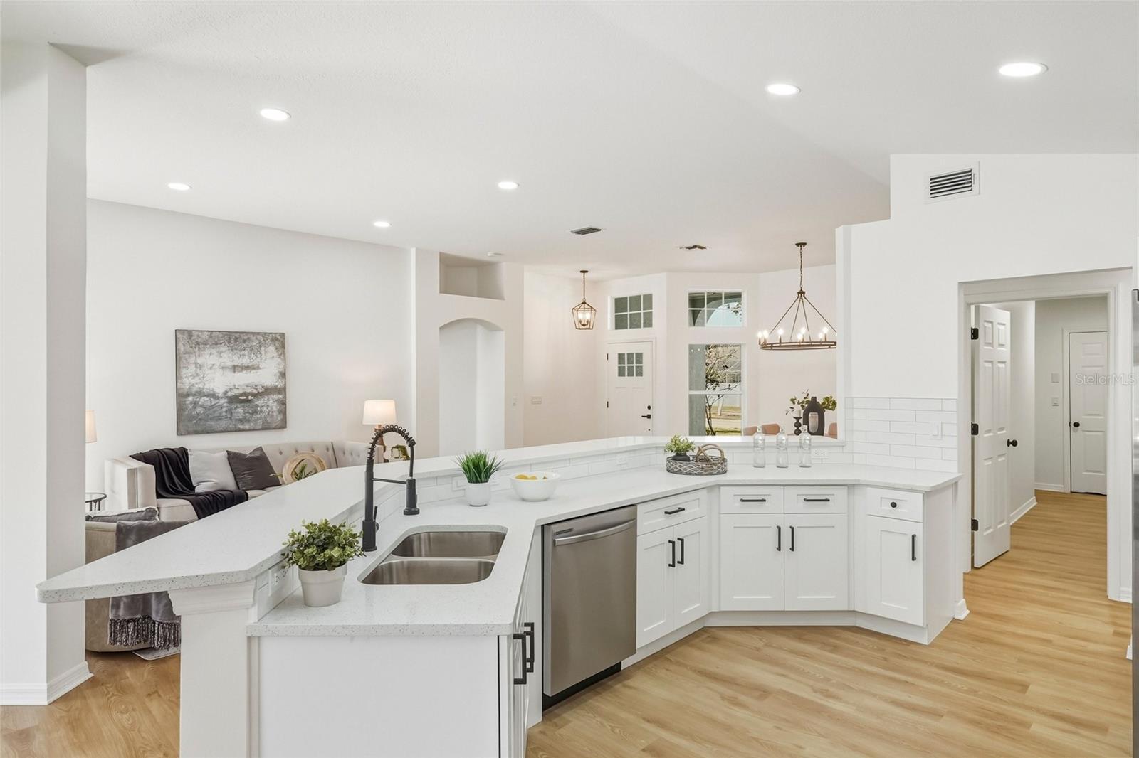 Stunning Renovated 4-Bedroom 3 Bath-Three Car Garage in Odessa–Your Private SANCTUARY Awaits! This beautifully remodeled 4-bedroom, 3-bathroom gem is ideally situated in one of Odessa's most sought-after neighborhoods. Boasting 2,191 square feet of exquisitely designed living space, this property offers the perfect blend of comfort, style, and entertainment. At the heart of this home lies a show-stopping designer kitchen, meticulously crafted with sleek modern cabinetry, luxurious quartz countertops, and premium stainless-steel appliances. Brand-new luxury vinyl flooring stretches seamlessly through the living areas. Retreat to the serene master suite, a true sanctuary with a beautiful walk-in shower, soaking tub, and walk-in closets. The thoughtful split-bedroom floor plan includes three additional bedrooms, and two fully updated bathrooms. No doubt you will notice the fully screened-in, sparkling pool that has recently been refinished along with fully serviced pool equipment! The property comes with a 2020 Roof, 2018 HVAC, and Brand-New Garage Doors, which will provide peace of mind for years to come. Location, location, location! This community is known for being family friendly, safe, and very well kept. You can rest easy knowing you are in one of Hillsborough County's best school districts! This exceptional property offers not just a home, but a lifestyle. Don’t miss the chance to make it yours!