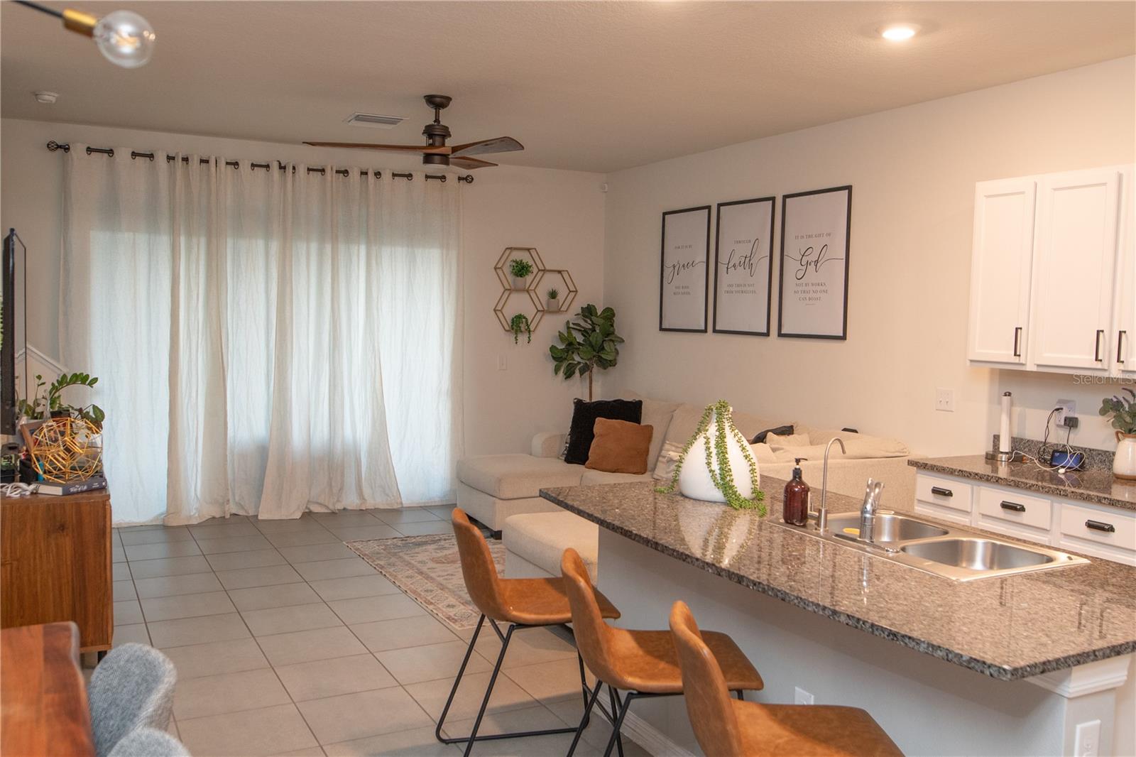 Welcome to this adorable, like-new townhome built in 2021, offering modern upscale and resort style living in the heart of Odessa. This 3-bedroom, 2.5-bathroom home features an open-concept layout with spacious living and dining areas, a convenient half bath, and a charming foyer downstairs. The kitchen is a true standout, boasting stainless steel appliances, wood cabinetry, granite countertops, a tiled backsplash, and large pantry. Sliding glass door leads to the patio for outdoor relaxation.
