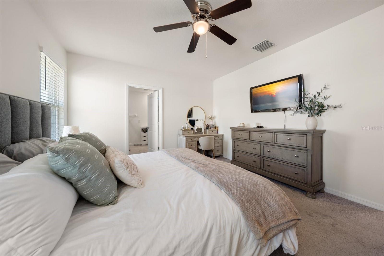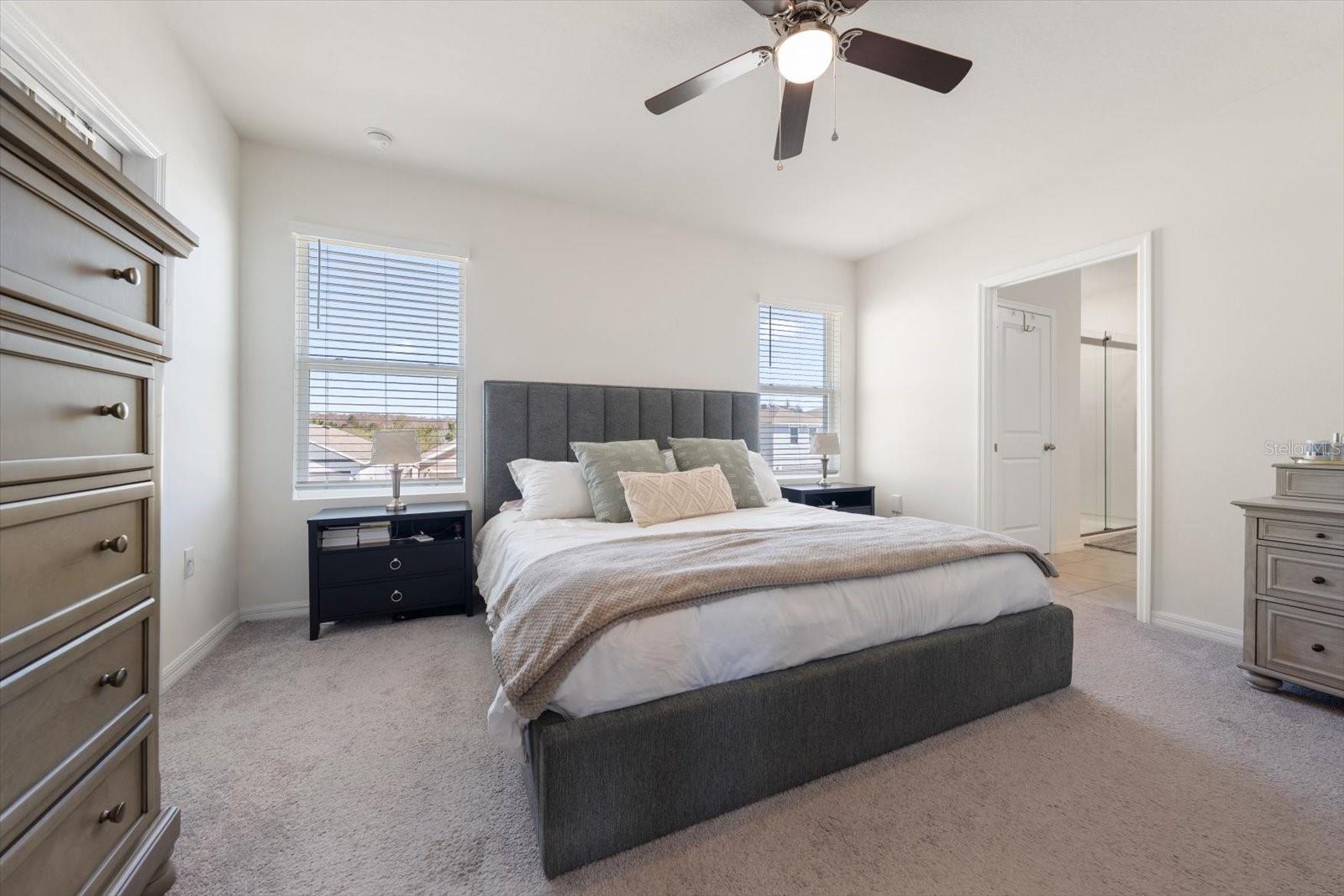 Welcome to this beautifully maintained 4-bedroom, 2.5-bath home in the highly desirable South Branch Preserve community, offering modern comfort, smart-home convenience, and exceptional neighborhood amenities. Ideally situated on a premium corner lot, this home features a fully fenced backyard, perfect for outdoor living, pets, and entertaining. Inside, the open-concept main level showcases durable tile flooring throughout the kitchen, living, and dining areas, creating a seamless flow ideal for everyday living and gatherings. The kitchen is equipped with a side-by-side refrigerator with water and ice dispenser, range/oven, microwave, dishwasher, and disposal, along with updated cabinet hardware for a clean, modern look. A spacious 2-car garage with overhead storage racks adds valuable storage and convenience. Upstairs, all four bedrooms feature comfortable carpeting, while the bathrooms are finished with tile. The primary suite includes a walk-in shower with a sleek glass enclosure, creating a private retreat. For added convenience, the laundry room is located upstairs near the bedrooms and includes built-in cabinetry, making everyday chores more efficient. Additional upgrades include a water softener, child-safety outlets, and a smart-home alarm system for enhanced comfort and peace of mind. South Branch Preserve offers a resort-style lifestyle with two community pools, fitness center, dog park, three playgrounds, and direct access to the Suncoast Trail for biking, walking, and outdoor recreation. Even better, lawn care, pest control, and cleaning services are included, allowing for truly low-maintenance living. This move-in-ready home combines modern upgrades, smart features, and outstanding community amenities—an exceptional opportunity to enjoy comfort, convenience, and lifestyle in one of the area’s most welcoming neighborhoods.