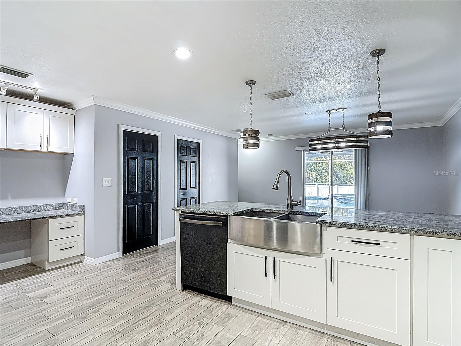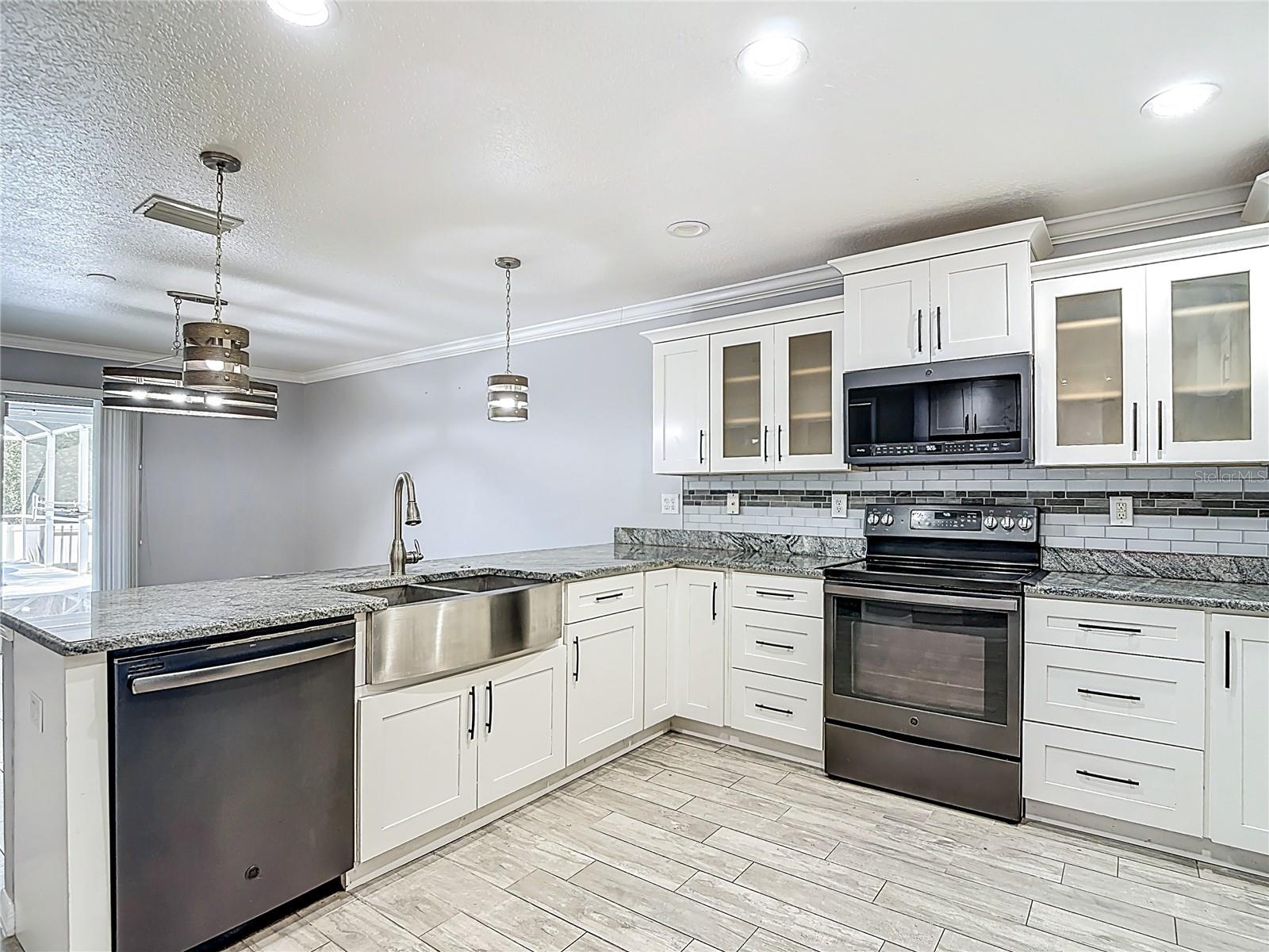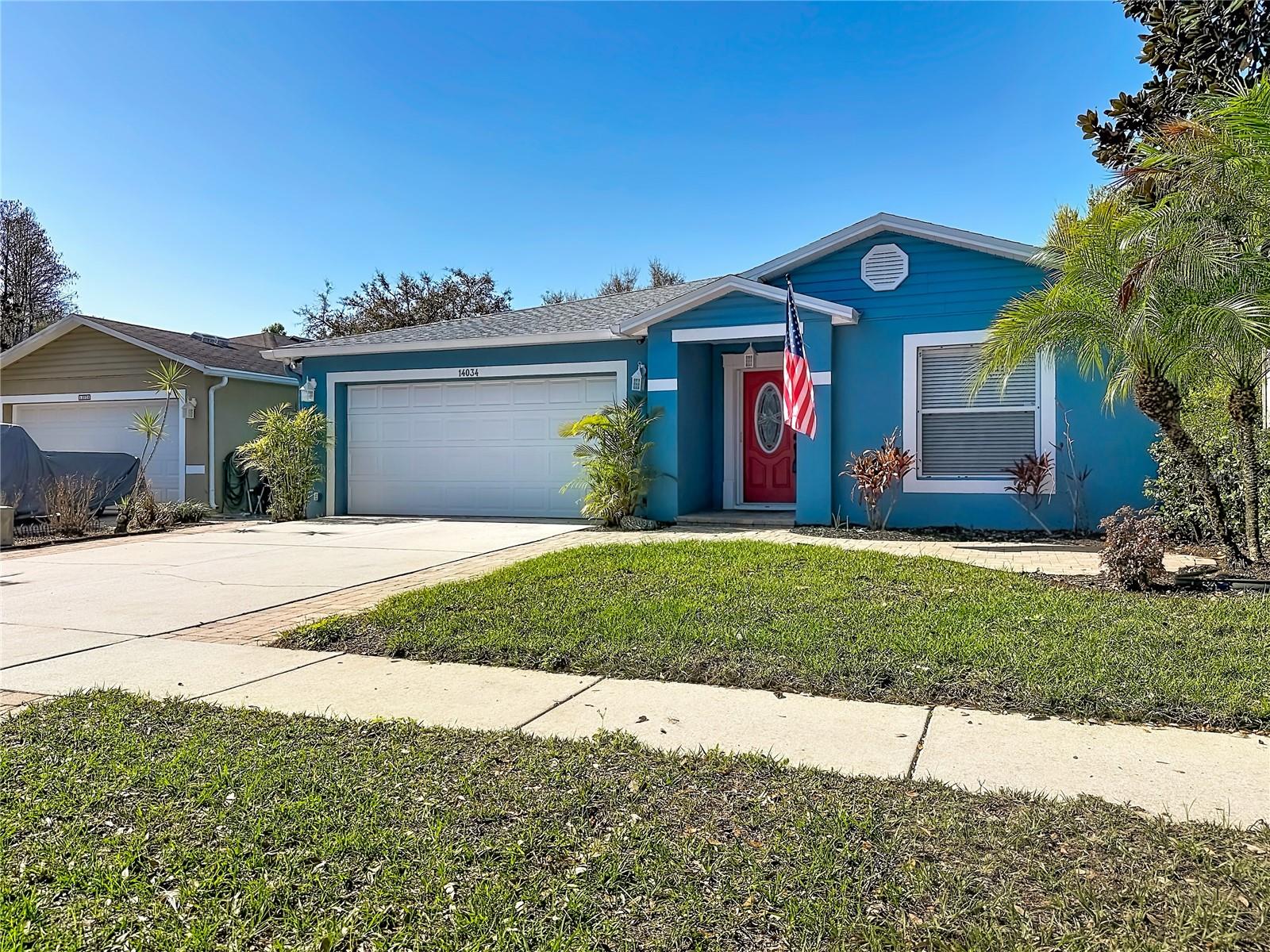 Move in ready, this 4 bedroom 2 bath home is done. Pool with child saftey fence and heated spa screened on conservation. Updated kitchen with high end finishes, glass panels in cabinet doors, granite and tile back splash. This home has great size bedrooms all with ceiling fans. Fresh paint as of this last week. Up graded appliance with a farm sink. Newer plank ceramic floors in the major areas. This home has no carpet, bedrooms all with a laminate flooring. New roof in 2022 with 25 year dimensional shingle. Also this home is on a cul-de-sac. We have crown molding , leaded glass insert front door, with a slide away screen door. Water softener owned as well as sprinkler system. We also have pull down stairs to attic with some floored space for storage. The over sized drive way with pavers on each side to widen the drive way. This community has no cdd and a low HOA , we have two play grounds.