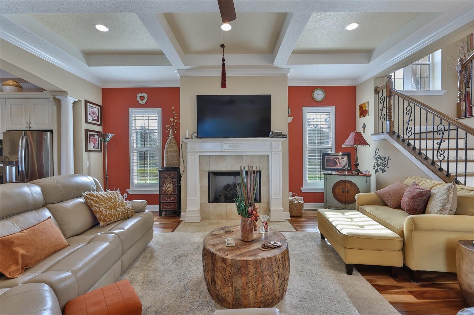 Wake up to peace, privacy and breath taking lake views on this 1.42 acre waterfront retreat in beautiful Odessa. Set behind a private gated entry, this home in anything but cookie cutter offering space, flexibility, and a true resort style lifestyle. Inside, soaring tray and coffered ceilings, acacia wood floors, wood beams, and granite countertops create a cozy and elegant feeling. The oversize kitchen island, gas stove, stainless appliances and expansive sliding glass doors make entertainment effortless, opening to multiple patios, a pergola, fire pit and a gas heated saltwater pool and spa overlooking the serene lake. New Bosch AC unit installed in 2025 and new duct work done in attic along with adding air purification and dehumidifier in 2026 to keep home cool and comfortable year around. Upstairs there is an additional bonus space, a craft room, and indoor access mother in law quarters with a private bath along with lake view from screened patios. This home is unique because it also has a separate mother-in-law quarters above the oversized garage, featuring a private entrance, full bath, kitchenette, and dedicated tankless water heater. Ideal for multigenerational living or guests. Home also has eco friendly bug misting system around exterior of home.