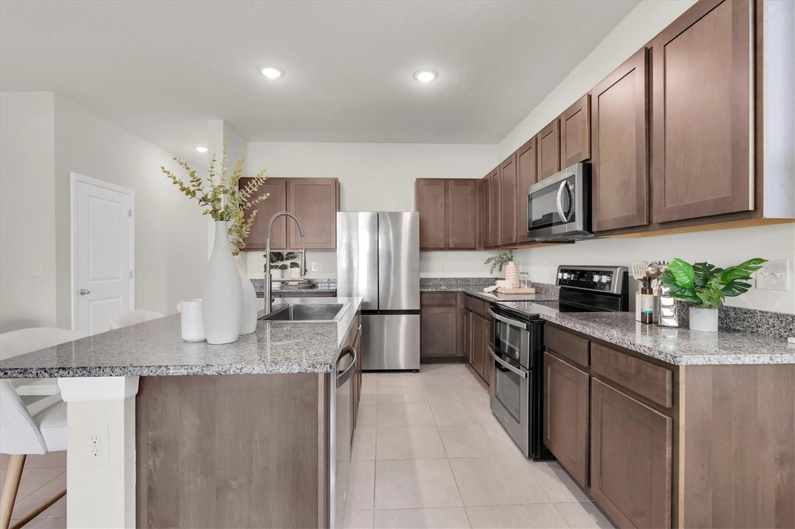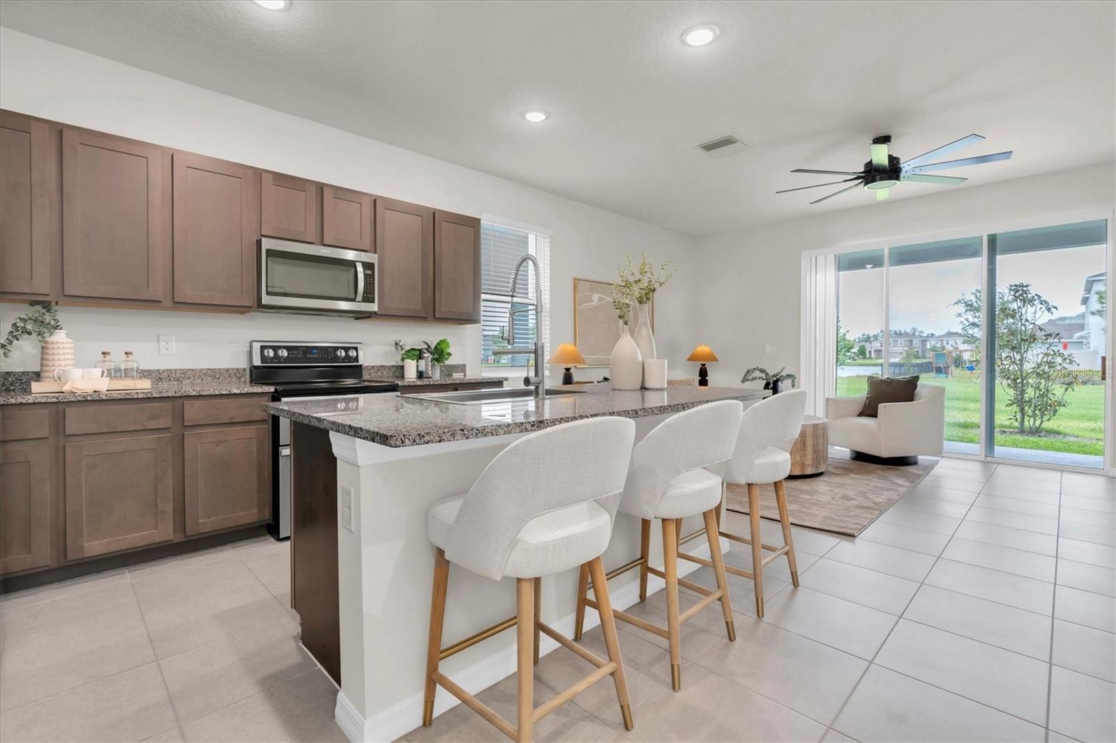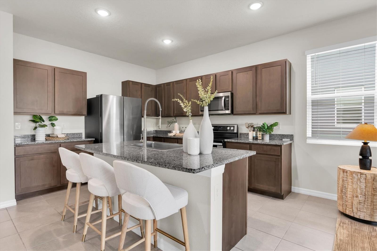 Welcome to this beautifully upgraded end-unit townhome in the highly desirable community of The Preserve in Odessa. Built in 2021, this three-bedroom, two-and-a-half-bath home with a spacious loft offers 1,758 square feet of well-designed living space and sits on a premium lot extra green space with water and sunset views. As an end unit, it enjoys abundant natural light, extra windows, and additional privacy, making it feel more like a single-family home. Recent improvements include BRAND NEW LUXURY carpet upstairs and NEW STYLISH Sherwin Williams neutral paint in Origami White with Pure White trim and doors. Inside, the home is thoughtfully appointed with smart home features including a Ring doorbell and chime, WiFi-enabled thermostat, and a security system. The gourmet kitchen showcases granite countertops, stainless steel appliances, an oversized island with bar seating, and a walk-in pantry. The open-concept layout flows seamlessly to a covered rear patio with views of the pond behind and magical sunsets, ideal for relaxing or entertaining. Upstairs, a spacious loft offers flexible space for a home office, gym, or media room. The primary suite features dual walk-in closets and a generous en-suite bathroom with double vanities and a walk-in shower with upgraded glass shower doors. Two additional bedrooms share a convenient Jack-and-Jill bathroom, and a laundry room is located upstairs for easy access. Washer and dryer are included for this home to be move in ready! Built with concrete block construction on both levels, the home provides added durability and sound insulation. Double pane windows and hurricane shutters help reduce insurance costs and provide peace of mind. One-car garage, which is complemented by a two-car driveway. The Preserve offers a resort-style lifestyle with two pools, a clubhouse, fitness center, two playgrounds, basketball court, soccer field, and a dog park that also has a fabulous dog wash station. The community also provides direct access to the 42-mile Suncoast Trail, perfect for biking, running, or walking This home is ideally located in the heart of Odessa, offering the perfect balance of suburban tranquility and convenient access to everyday amenities. Just minutes from the Suncoast Parkway, commuting to Tampa, Westshore, and Tampa International Airport is quick and easy. Nearby, you'll find a wide range of shopping and dining options at Citrus Park Town Center, The Shoppes at Sunlake Centre, and the popular Starkey Ranch area. For outdoor lovers, the Suncoast Trail is perfect for biking and jogging, and nearby parks like Starkey Wilderness Preserve and Lake Rogers Park offer scenic trails, kayaking, and nature experiences. Families will appreciate proximity to top-rated schools, medical facilities, fitness centers, and a variety of grocery stores including Publix, Sprouts, and Target. Odessa is also a short drive from charming downtown areas like Dunedin and Tarpon Springs, as well as the beautiful beaches of the Gulf Coast, making this location as convenient as it is desirable. With low HOA fees and a move-in-ready presentation, this exceptional townhome combines comfort, style, and convenience in one of the area’s most sought-after communities. FHA, VA, and USDA financing are welcome. Schedule your private showing today. For the virtual tour copy paste bit.ly/16177GlowingGrove. OWNERS PRICED IT LOW TO HAVE A QUICK SALE... HURRY BEFORE IT IS GONE!