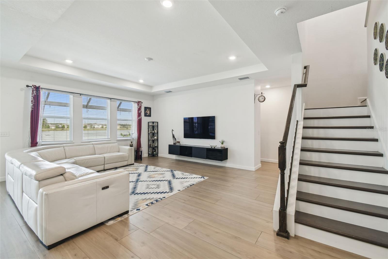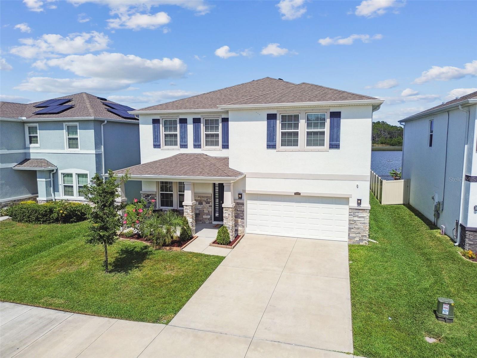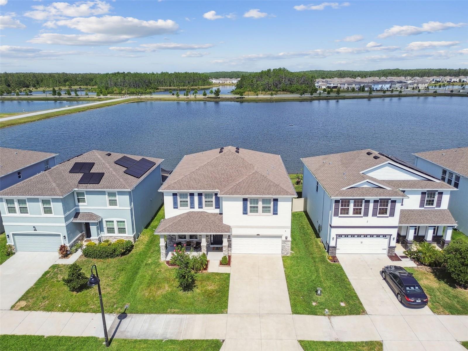 One or more photo(s) has been virtually staged. Welcome to this exquisite 2021-built lakefront home located in the highly desirable community of The Preserve in Odessa, Florida. Offering 4 bedrooms, 3 full bathrooms, and nearly 3,400 square feet of modern living space, this home is the perfect blend of elegance and functionality. Designed for today’s lifestyle, the open-concept layout features soaring ceilings, upgraded tile flooring, and an extended front porch that creates instant curb appeal. The heart of the home is the gourmet kitchen, complete with quartz countertops, stainless steel appliances, and a spacious butler’s pantry—ideal for a coffee station or additional storage. The downstairs bedroom and full bath offer an excellent setup for multi-generational living or private guest accommodations. Upstairs, the split-bedroom floor plan ensures privacy, with the primary suite offering a luxurious en-suite bathroom, walk-in closet, and an adjacent bonus space perfect for a nursery or home office. Step outside to the expansive screened lanai and enjoy tranquil lake views with room to entertain or even build your dream pool. Residents of The Preserve enjoy access to resort-style amenities, including two community pools, a clubhouse, fitness center, scenic walking trails, playgrounds, and parks. Conveniently located just minutes from top-rated schools, shopping, dining, and the Veterans Expressway for easy commuting to Tampa and surrounding areas. Experience exceptional Florida living in a vibrant and welcoming community—schedule your private showing today!