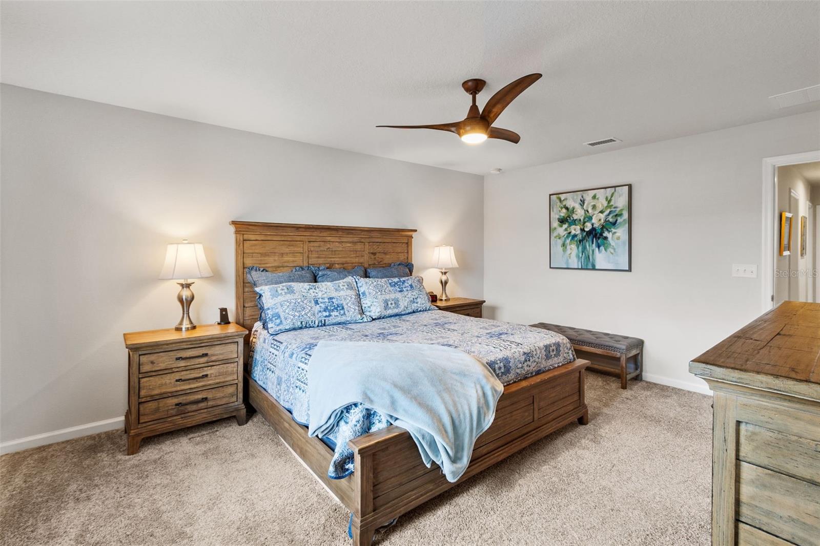 Welcome to 2421 Hearth Drive, located in the highly desirable Asturia community of Odessa, FL. This largest-model townhome is truly move-in ready and feels brand new, showcasing an exceptional collection of builder upgrades and thoughtful enhancements throughout. Offering three spacious bedrooms, two and a half bathrooms, and an upstairs laundry room, the home is designed for both comfort and convenience. The two-car garage with a full driveway provides excellent functionality and includes four ceiling-mounted hanging storage racks, maximizing garage storage and organization. Attention to detail is evident the moment you step inside, where elegant crown molding adds a refined finish to the main living areas. The gourmet kitchen serves as the heart of the home, featuring stainless steel appliances, upgraded cabinetry, a custom tile backsplash, recessed lighting, and an oversized island perfect for entertaining or everyday living. Just beyond the kitchen, a large private courtyard offers a wonderful outdoor retreat for relaxing or hosting guests. Upstairs, all bedrooms are generously sized with plush carpeting and abundant natural light. The two secondary bedrooms each feature custom closet buildouts, thoughtfully designed to maximize storage and organization. The owner’s retreat includes a private en-suite bathroom with dual vanities and a walk-in shower, creating a peaceful escape at the end of the day. This home is equipped with modern, energy-efficient features, including a tankless water heater, water softener, and an HVAC system with a blue-light air purification system. Additional upgrades include updated ceiling fans and a stylish dining room lighting fixture, further enhancing the home’s turnkey appeal. Enjoy a low-maintenance lifestyle with a monthly fee that covers lawn care, roof maintenance, and exterior painting. Asturia residents also enjoy access to a resort-style pool, state-of-the-art fitness center, clubhouse, dog park, playgrounds, green spaces, and scenic walking trails. With easy access to the Suncoast Parkway, this beautifully maintained townhome is an exceptional opportunity not to be missed.