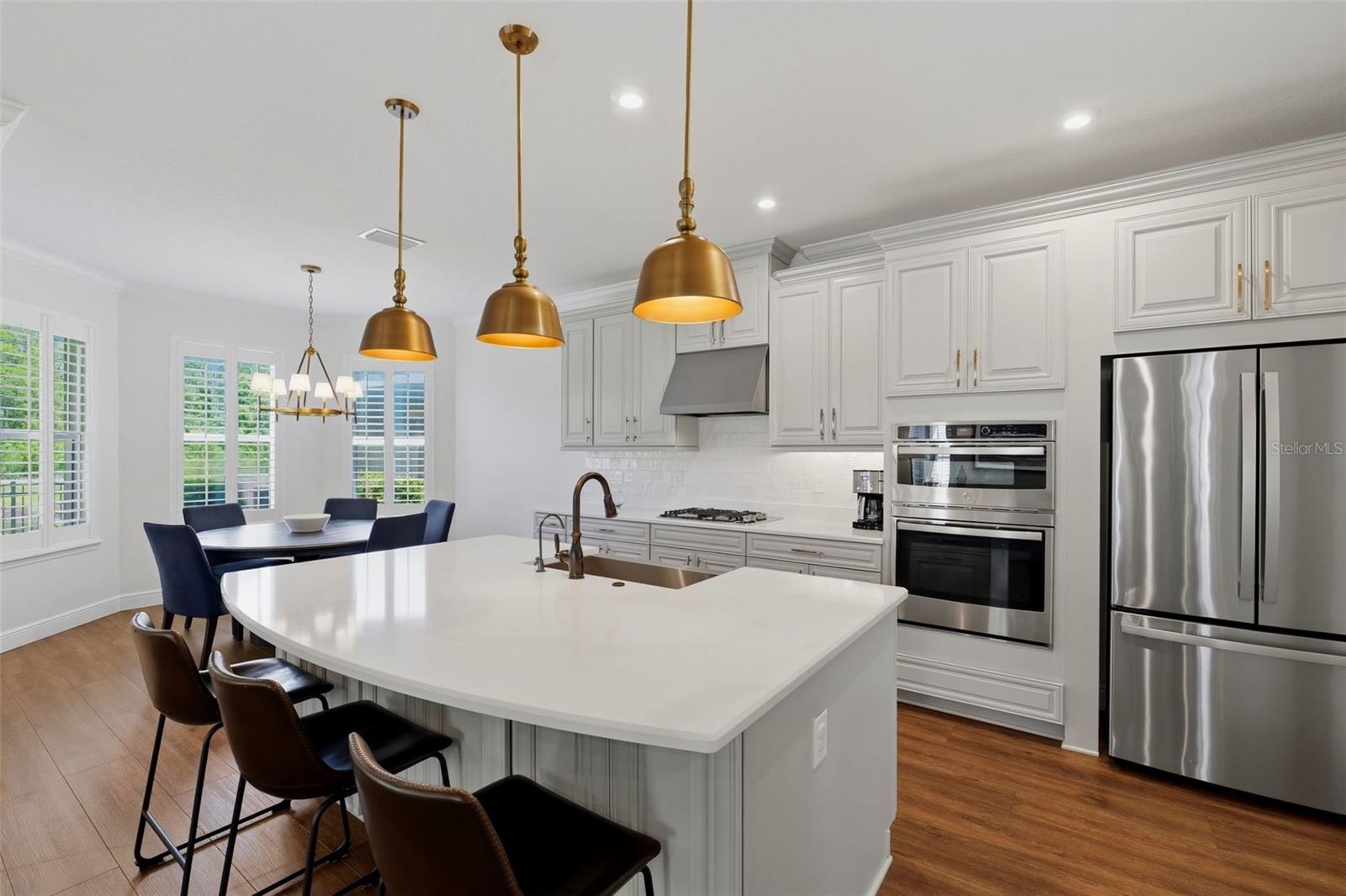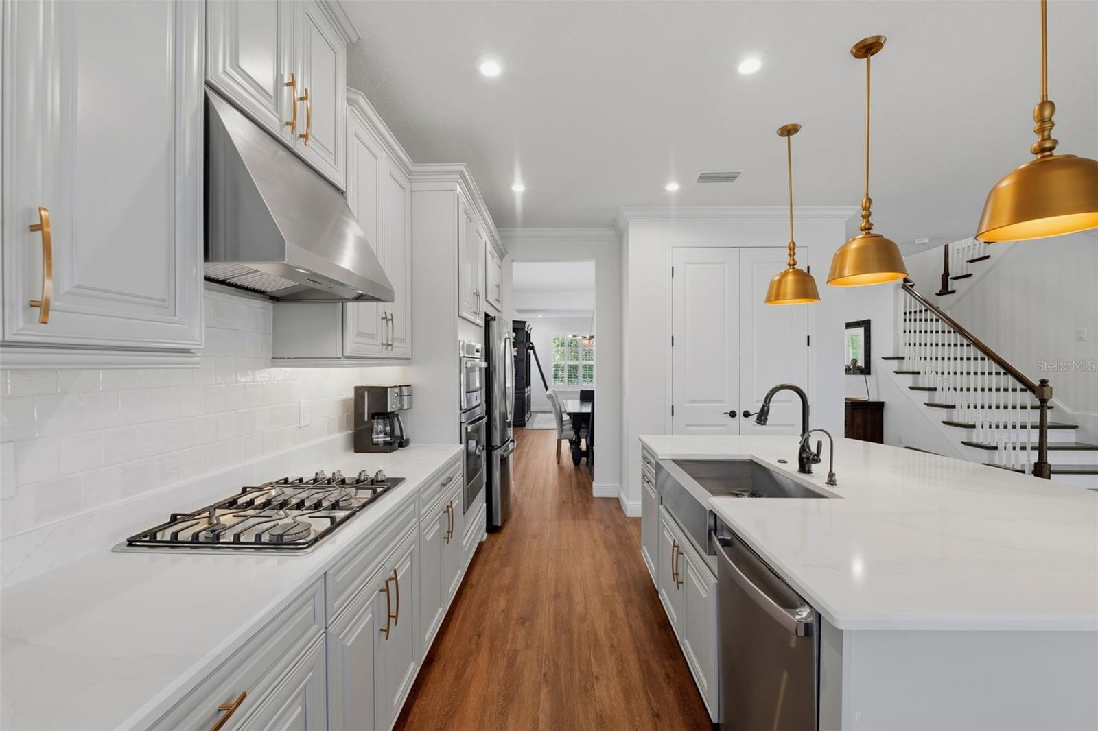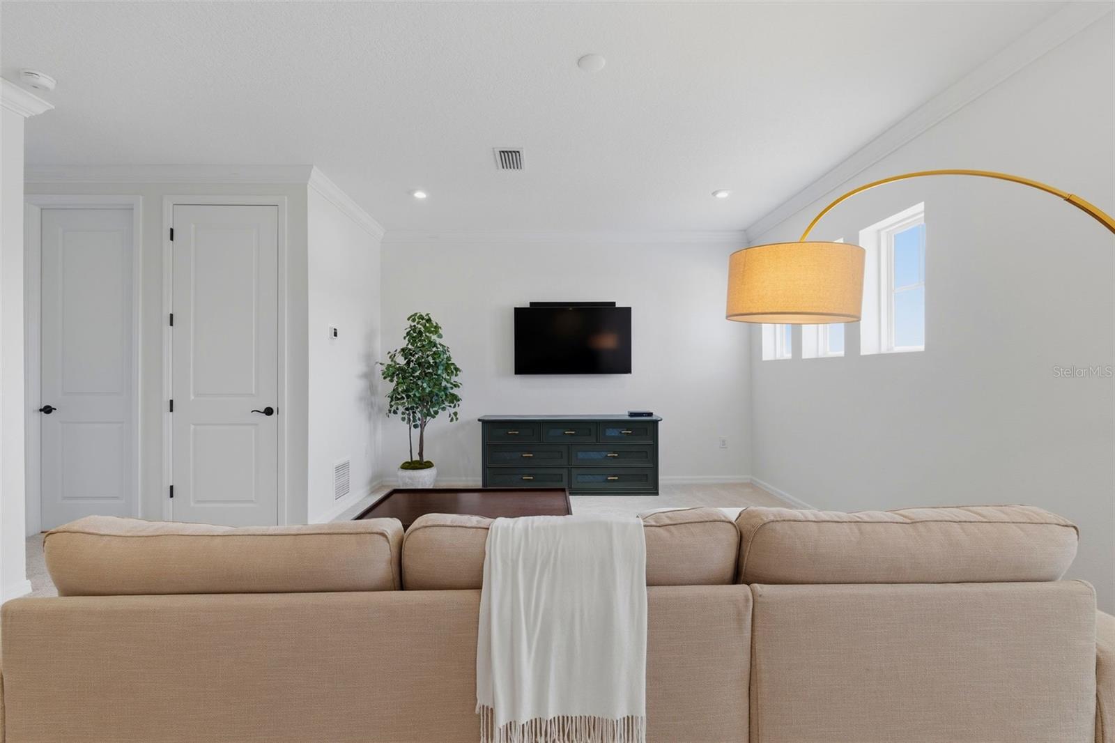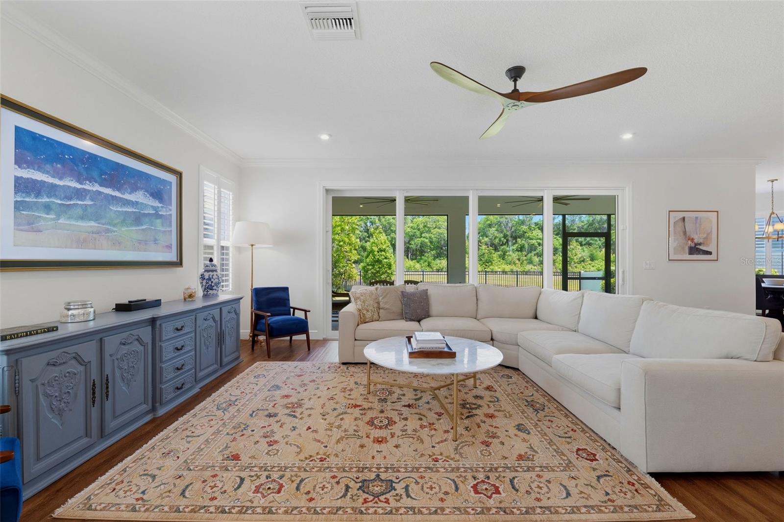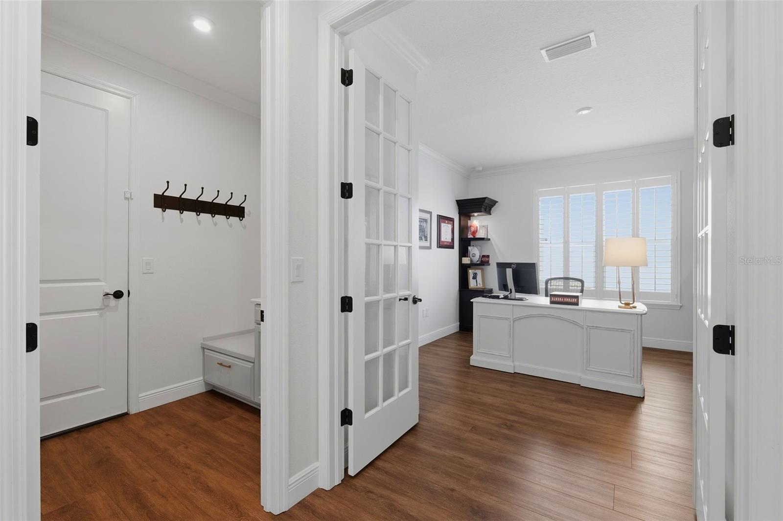 Welcome to 13803 Stansil Ave, where thoughtful design meets elevated, turnkey living in the heart of Starkey Ranch. From the moment you arrive, the pavered driveway and upgraded elevation create a polished first impression, hinting at the level of detail carried throughout the home. Step inside through the front door into a bright, two story foyer, where wide plank luxury vinyl flooring, crown molding, and upgraded lighting immediately set the tone. Just off the entry, a private office with elegant double French doors offers the perfect work-from-home space or flex room. As you move further in, the home opens beautifully into a spacious, light-filled living area designed for both everyday living and entertaining. The gourmet kitchen is truly the heart of the home—featuring 42” upper cabinets with crown molding, quartz countertops, a custom ceramic backsplash, under-cabinet lighting, and high-end built-in appliances. A large island with additional storage anchors the space, while the adjacent breakfast nook provides the perfect spot for casual dining with views of the backyard. The living room flows seamlessly to the oversized screened lanai, creating the ultimate indoor-outdoor lifestyle. Here, you’ll enjoy a premium pond and conservation views, offering peaceful water views, added privacy, and direct access to walking trails right from your fenced backyard. The upgraded “no-see-um” screen enclosure ensures year-round comfort as you relax or entertain outdoors. Upstairs, a spacious loft provides flexible living space, ideal for a media room, playroom, or second living area. The secondary bedrooms are well-sized and thoughtfully positioned, while upgraded plush carpeting and premium finishes continue throughout. The primary suite is a true retreat, featuring custom-built closet systems and private access to a front balcony through double French doors, perfect for enjoying morning coffee or evening sunsets. The spa-like primary bathroom includes a frameless glass shower and elevated finishes designed for comfort and style. Additional upgrades include plantation shutters on the first floor, upgraded blinds upstairs, solid wood stair treads, 8’ upgraded interior doors, designer light fixtures and fans, dimmer switches, a full home water softener, and epoxy-coated garage floors with overhead storage. Every detail has been carefully selected, making this home truly move-in ready and barely lived in. Located in the award-winning Starkey Ranch community, residents enjoy miles of scenic trails, multiple resort-style pools, parks, playgrounds, and a vibrant community atmosphere. With top-rated schools, community events, and easy access to shopping, dining, and major roadways, Starkey Ranch offers a lifestyle that’s hard to match. If you’ve been waiting for a home that combines premium upgrades, a stunning homesite, and effortless living...this is it!