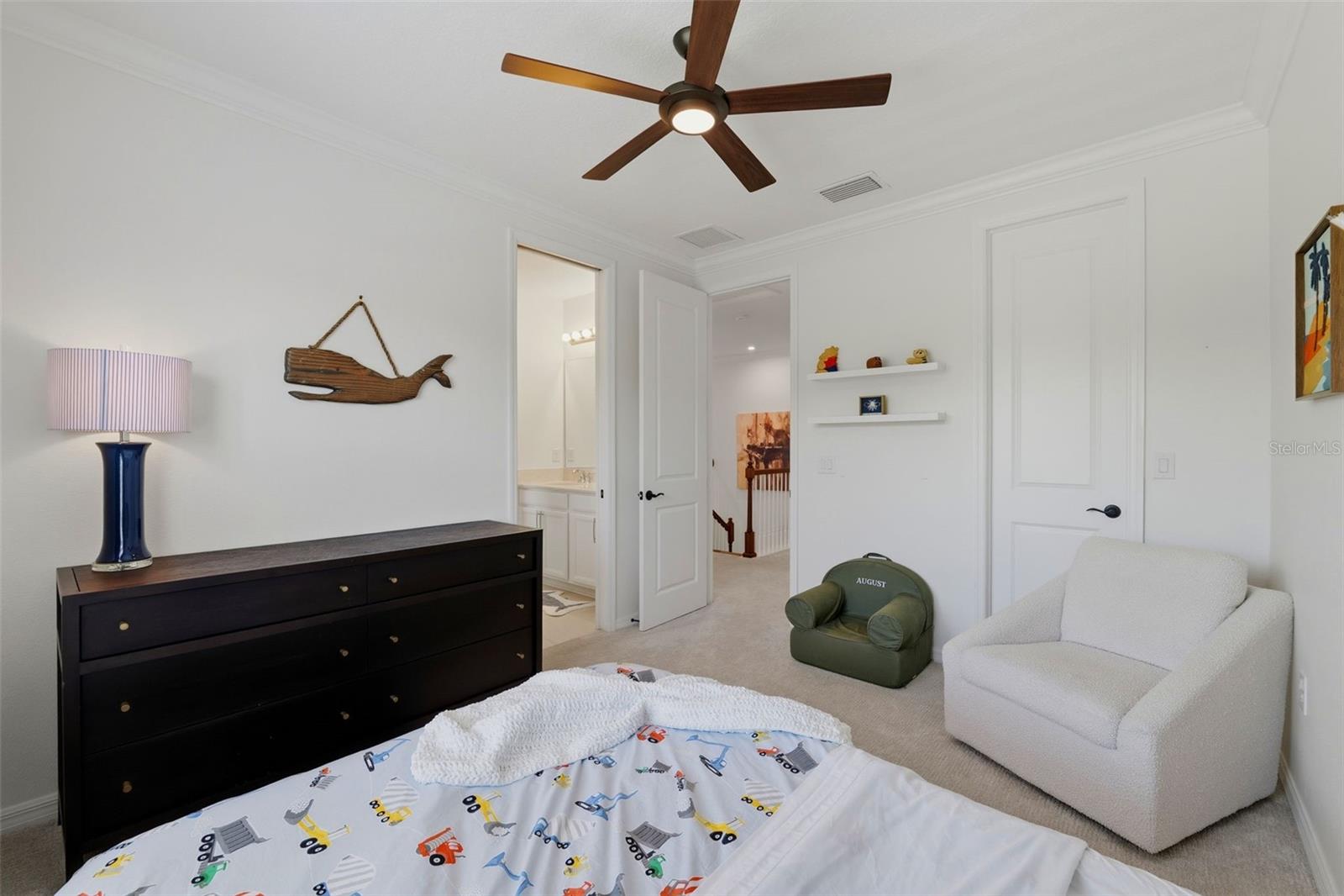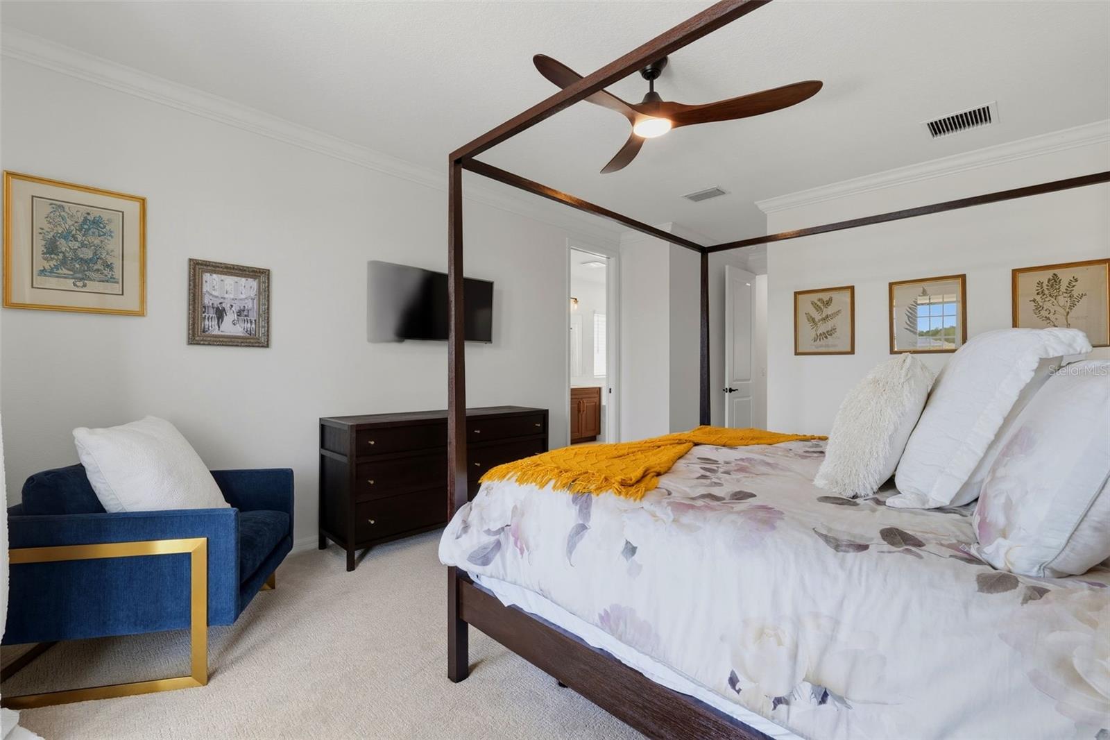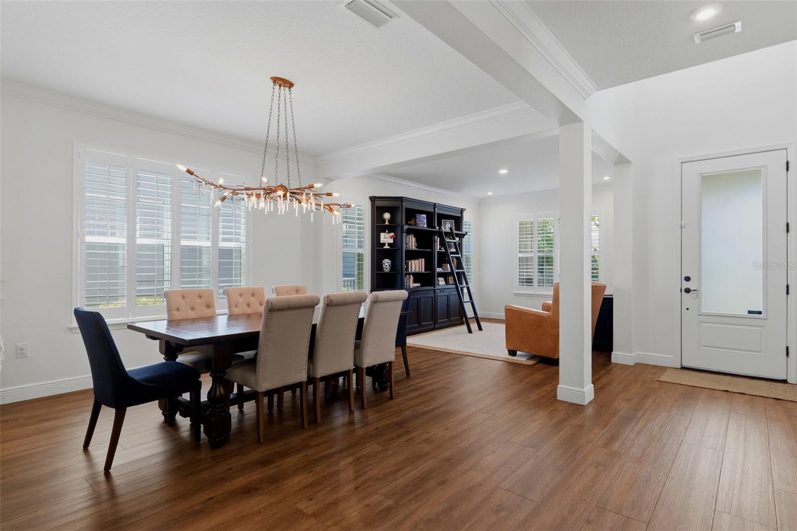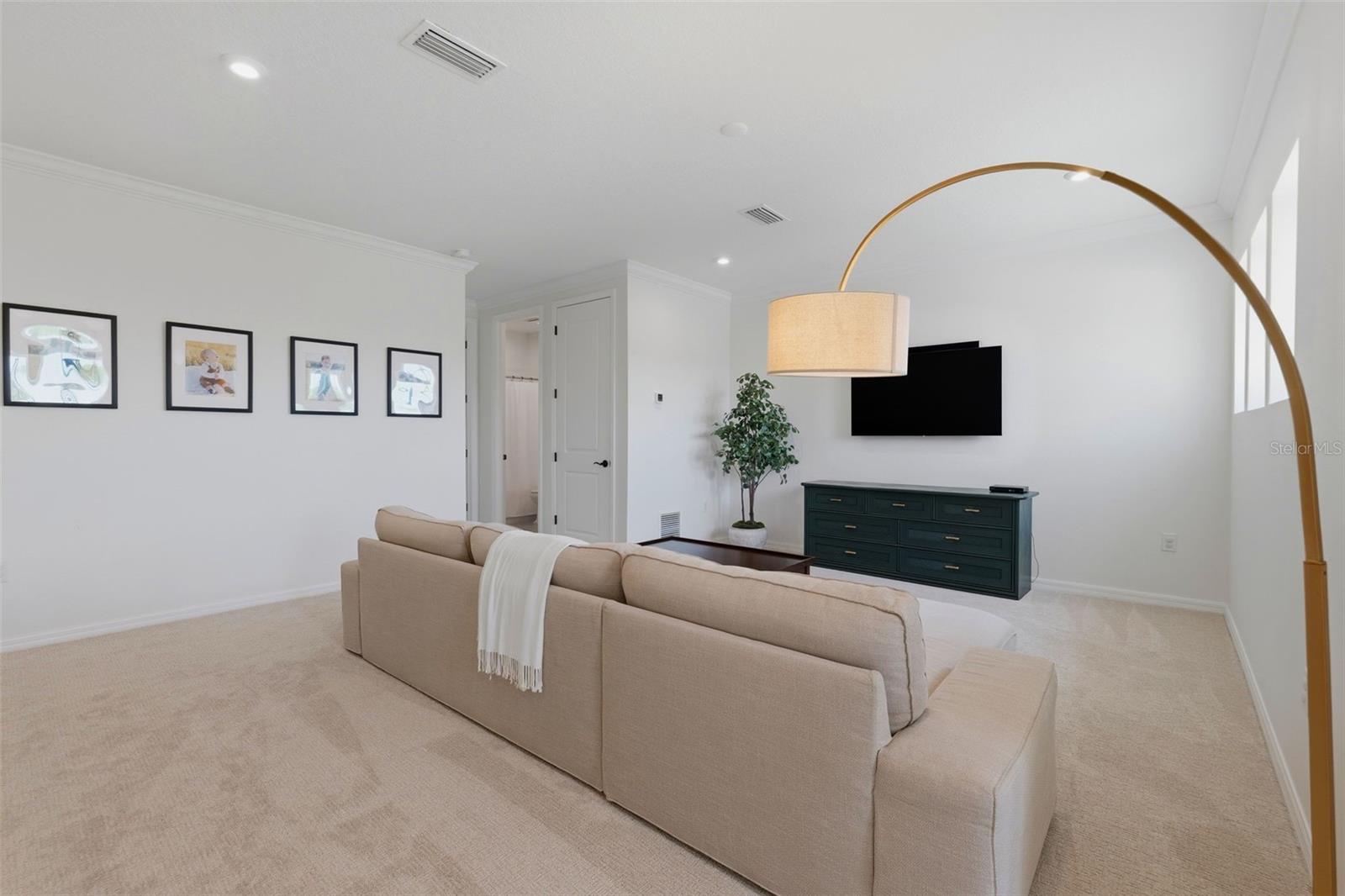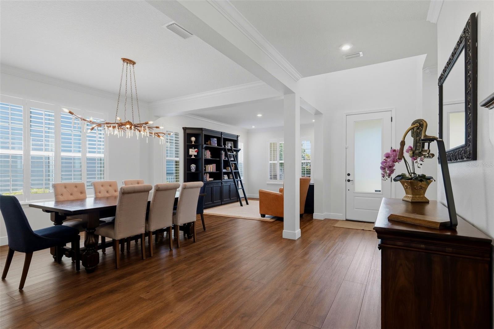 Welcome to 13803 Stansil Ave, where thoughtful design meets elevated, turnkey living in the heart of Starkey Ranch. From the moment you arrive, the pavered driveway and upgraded elevation create a polished first impression, hinting at the level of detail carried throughout the home. Step inside through the front door into a bright, two story foyer, where wide plank luxury vinyl flooring, crown molding, and upgraded lighting immediately set the tone. Just off the entry, a private office with elegant double French doors offers the perfect work-from-home space or flex room. As you move further in, the home opens beautifully into a spacious, light-filled living area designed for both everyday living and entertaining. The gourmet kitchen is truly the heart of the home—featuring 42” upper cabinets with crown molding, quartz countertops, a custom ceramic backsplash, under-cabinet lighting, and high-end built-in appliances. A large island with additional storage anchors the space, while the adjacent breakfast nook provides the perfect spot for casual dining with views of the backyard. The living room flows seamlessly to the oversized screened lanai, creating the ultimate indoor-outdoor lifestyle. Here, you’ll enjoy a premium pond and conservation views, offering peaceful water views, added privacy, and direct access to walking trails right from your fenced backyard. The upgraded “no-see-um” screen enclosure ensures year-round comfort as you relax or entertain outdoors. Upstairs, a spacious loft provides flexible living space, ideal for a media room, playroom, or second living area. The secondary bedrooms are well-sized and thoughtfully positioned, while upgraded plush carpeting and premium finishes continue throughout. The primary suite is a true retreat, featuring custom-built closet systems and private access to a front balcony through double French doors, perfect for enjoying morning coffee or evening sunsets. The spa-like primary bathroom includes a frameless glass shower and elevated finishes designed for comfort and style. Additional upgrades include plantation shutters on the first floor, upgraded blinds upstairs, solid wood stair treads, 8’ upgraded interior doors, designer light fixtures and fans, dimmer switches, a full home water softener, and epoxy-coated garage floors with overhead storage. Every detail has been carefully selected, making this home truly move-in ready and barely lived in. Located in the award-winning Starkey Ranch community, residents enjoy miles of scenic trails, multiple resort-style pools, parks, playgrounds, and a vibrant community atmosphere. With top-rated schools, community events, and easy access to shopping, dining, and major roadways, Starkey Ranch offers a lifestyle that’s hard to match. If you’ve been waiting for a home that combines premium upgrades, a stunning homesite, and effortless living...this is it!