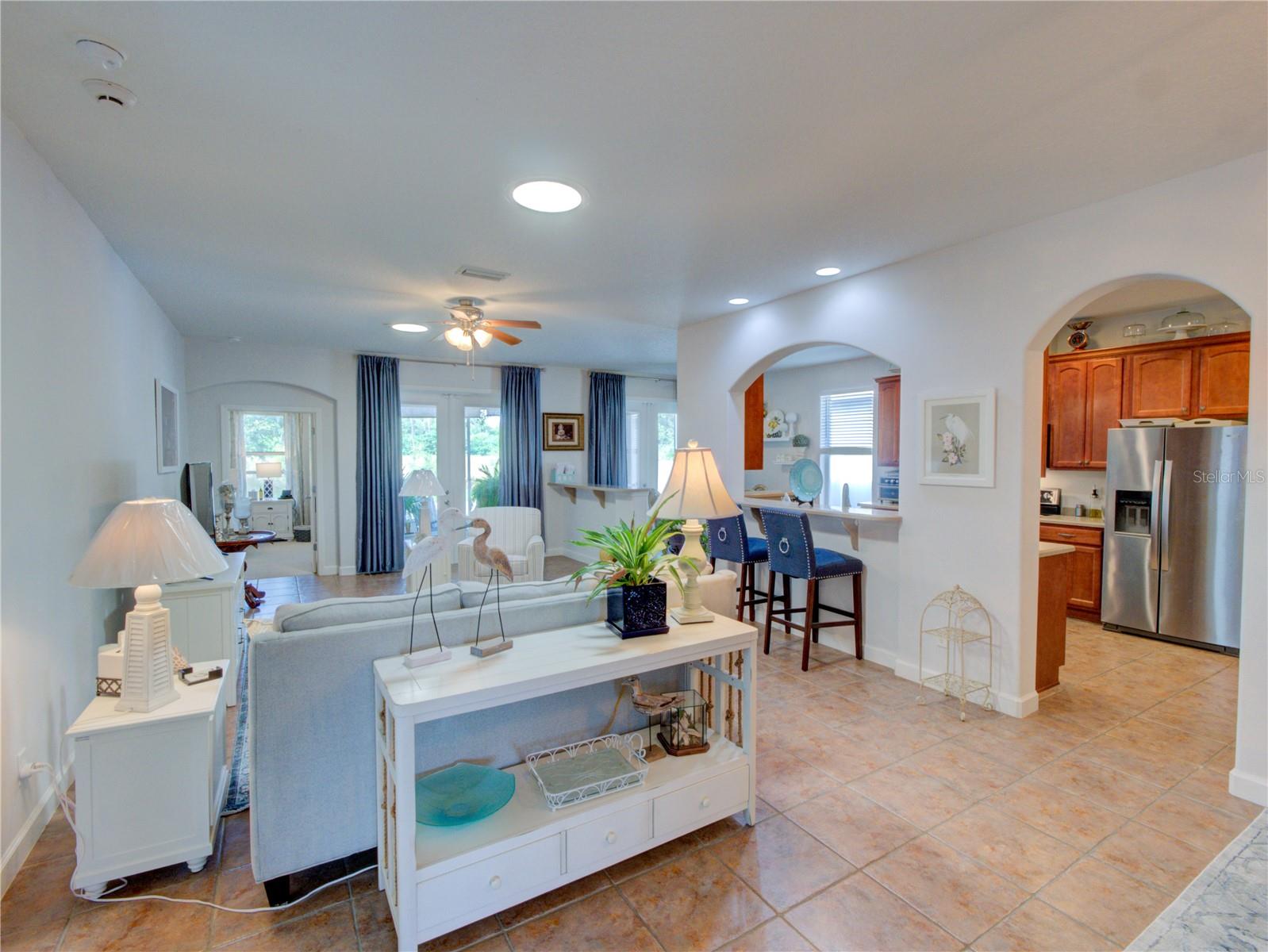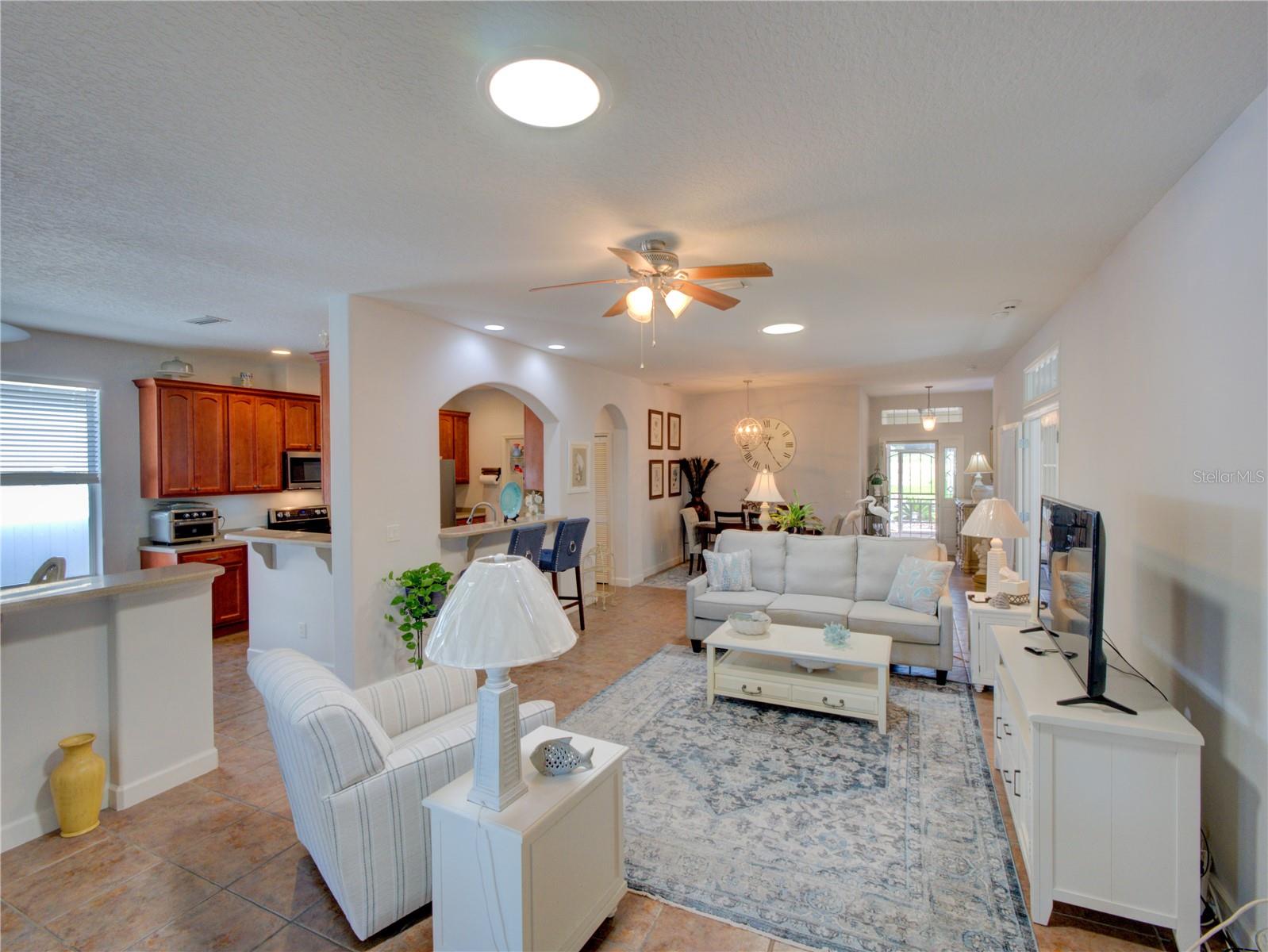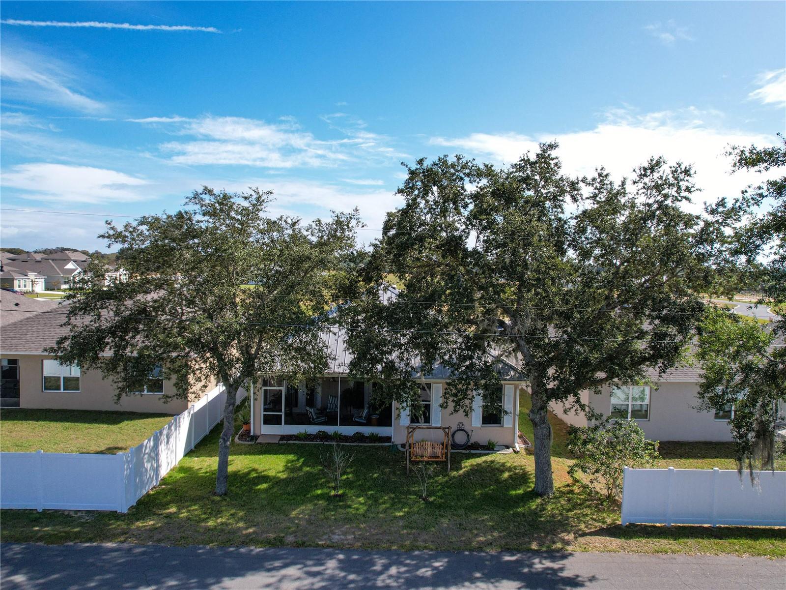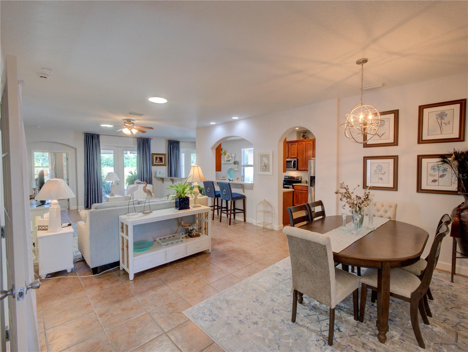 RARE opportunity, 55+ community that allows you to have a fenced backyard but only in select areas of the community and this home qualifies. Location is just one mile from Leesburg, this property is sure to leave a lasting impression. The moment you step inside, you'll instantly feel at home. This residence combines elegance with a welcoming atmosphere, featuring an open-air concept and strategically placed split bedrooms for enhanced privacy. The living room boasts ample natural light, thanks to two solar tube lights, creating a bright and inviting space. The kitchen, open to the living room, is perfect for entertaining. Equipped with Corian countertops, a new double oven stove (installed in 2023), a microwave from 2023, a refrigerator from 2020, and brand-new garage door openers, the kitchen is both stylish and functional. The third bedroom, with its French doors, offers versatility as it can easily serve as an office or craft room, or a third bedroom complete with a closet. All appliances are stainless steel, and the soft color palette throughout the home allows you to personalize the ambiance to your liking. Don't miss out on this exceptional opportunity – this home is truly move-in ready and impressively appointed.
