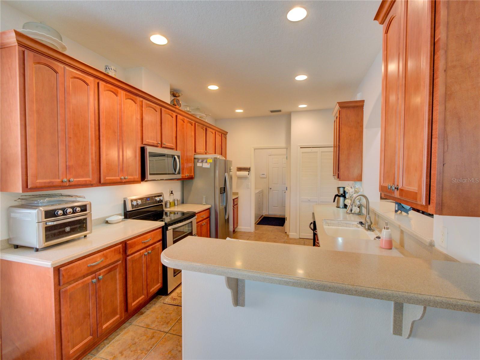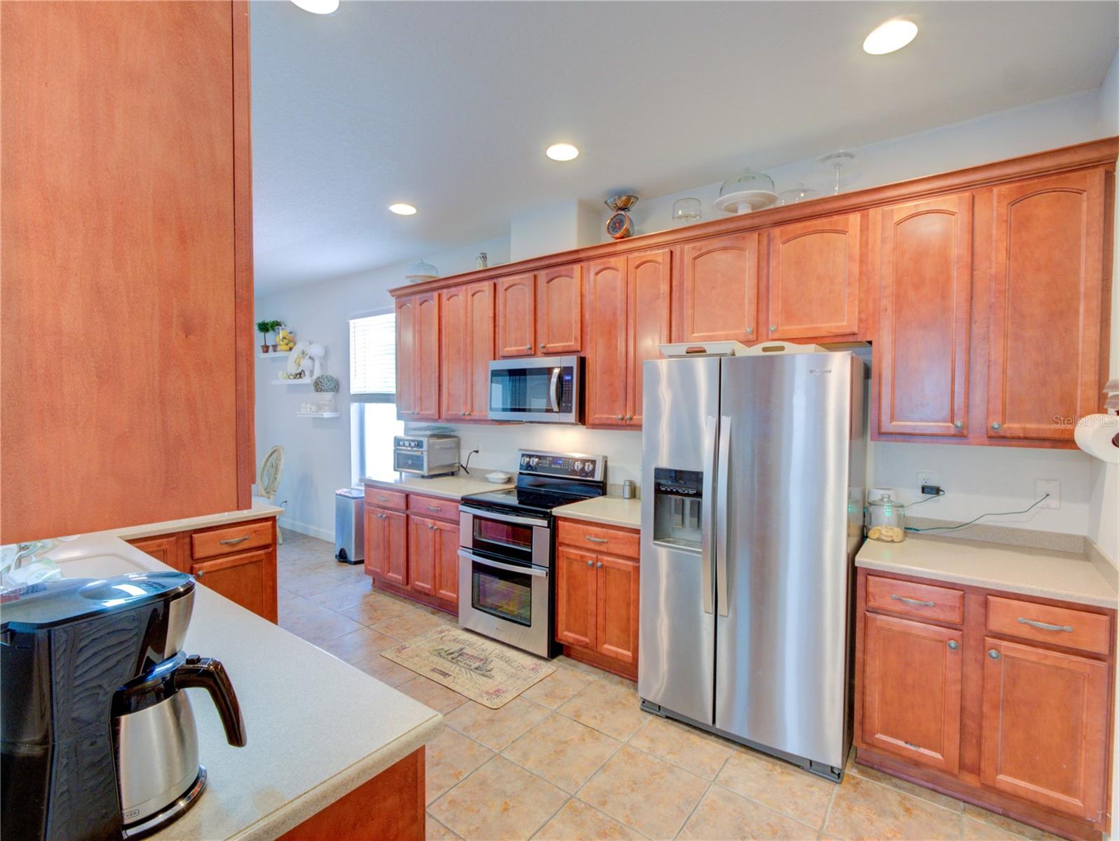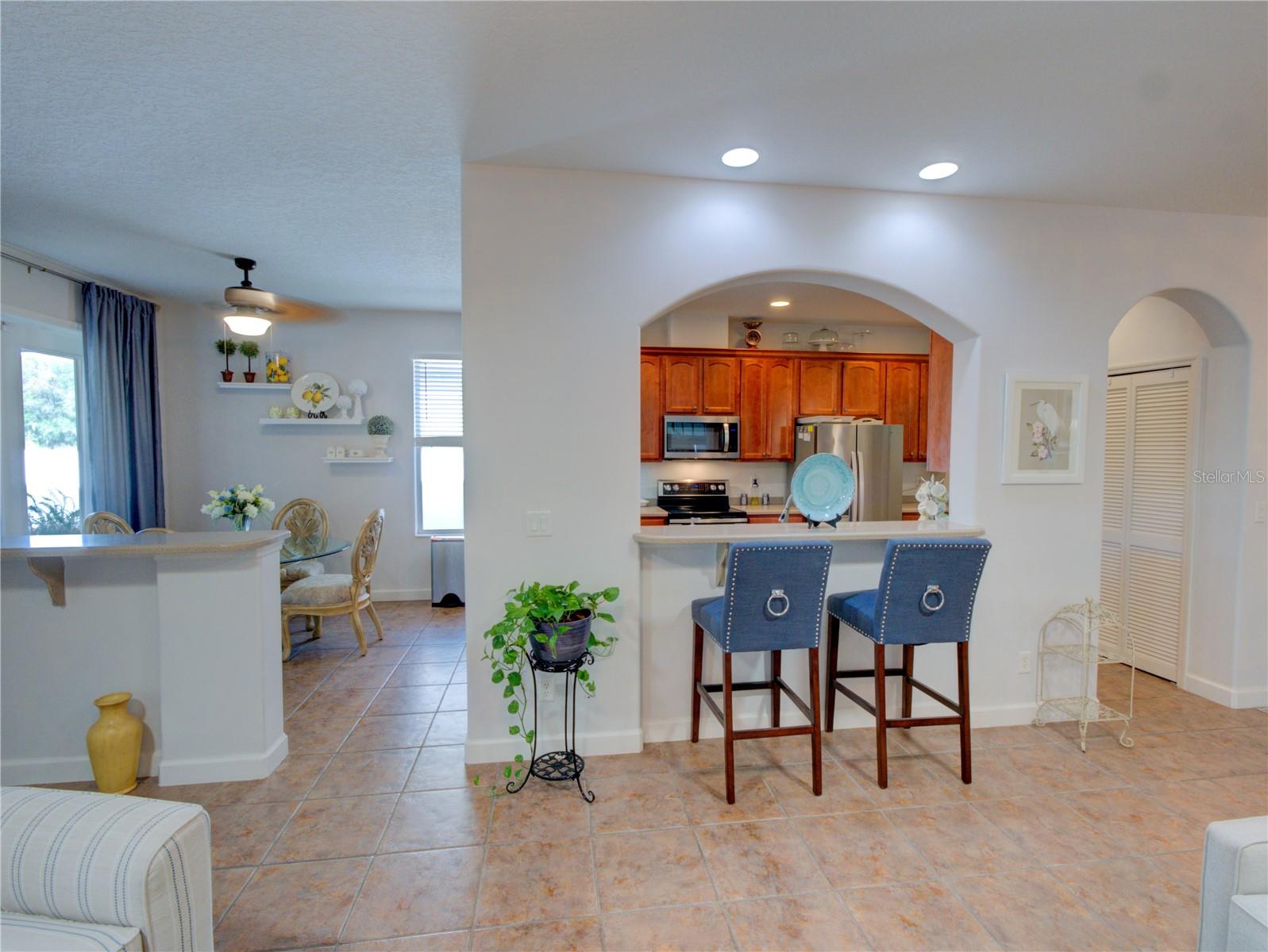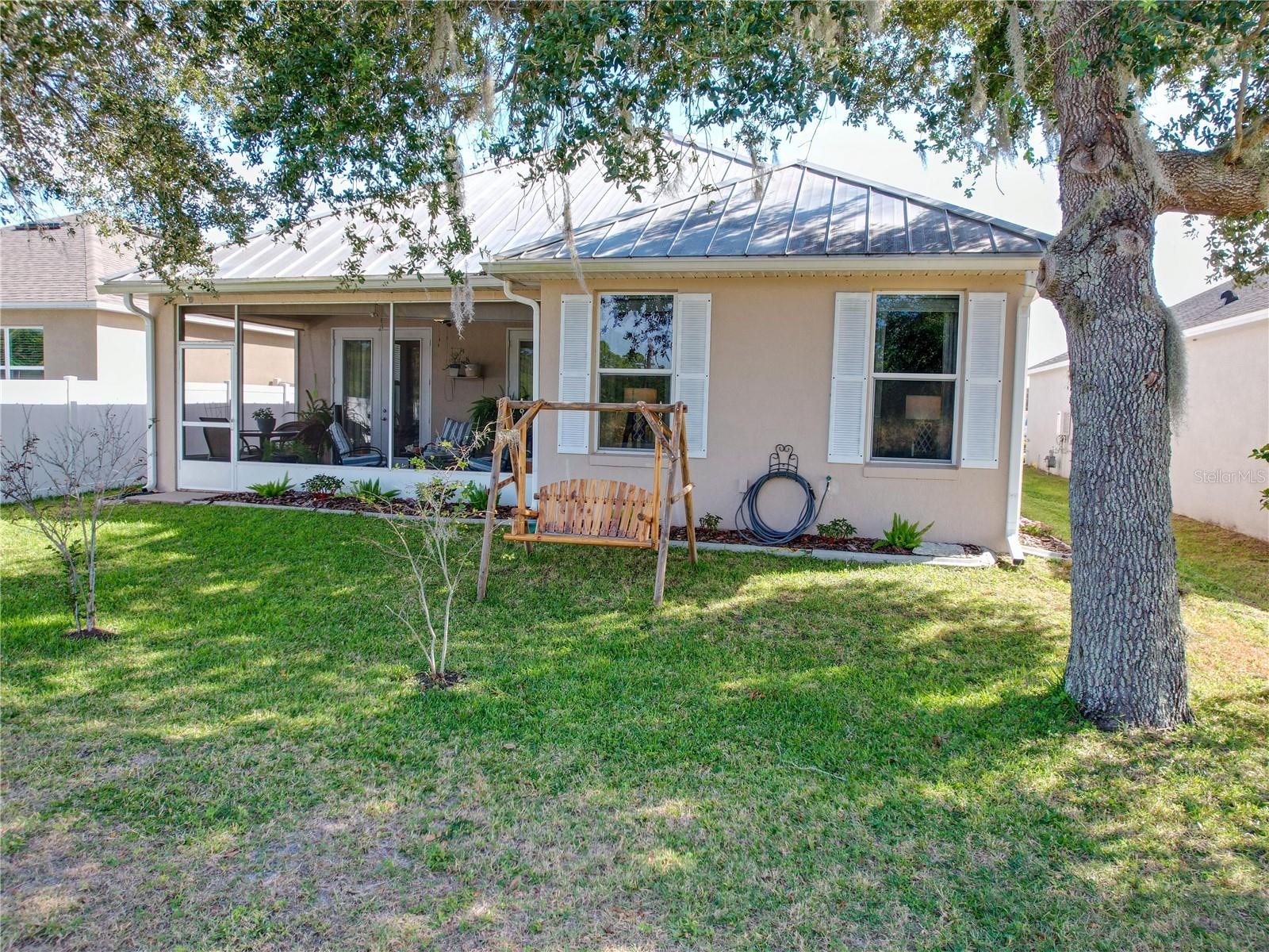 RARE opportunity, 55+ community that allows you to have a fenced backyard but only in select areas of the community and this home qualifies. Location is just one mile from Leesburg, this property is sure to leave a lasting impression. The moment you step inside, you'll instantly feel at home. This residence combines elegance with a welcoming atmosphere, featuring an open-air concept and strategically placed split bedrooms for enhanced privacy. The living room boasts ample natural light, thanks to two solar tube lights, creating a bright and inviting space. The kitchen, open to the living room, is perfect for entertaining. Equipped with Corian countertops, a new double oven stove (installed in 2023), a microwave from 2023, a refrigerator from 2020, and brand-new garage door openers, the kitchen is both stylish and functional. The third bedroom, with its French doors, offers versatility as it can easily serve as an office or craft room, or a third bedroom complete with a closet. All appliances are stainless steel, and the soft color palette throughout the home allows you to personalize the ambiance to your liking. Don't miss out on this exceptional opportunity – this home is truly move-in ready and impressively appointed.