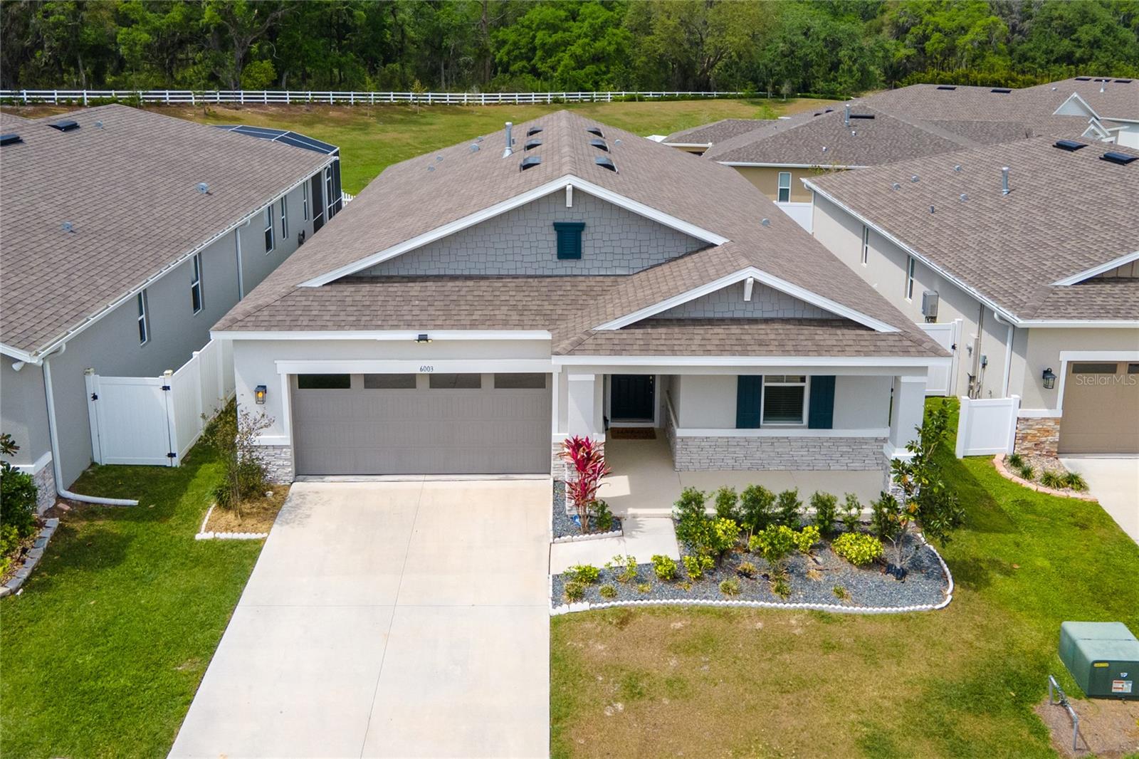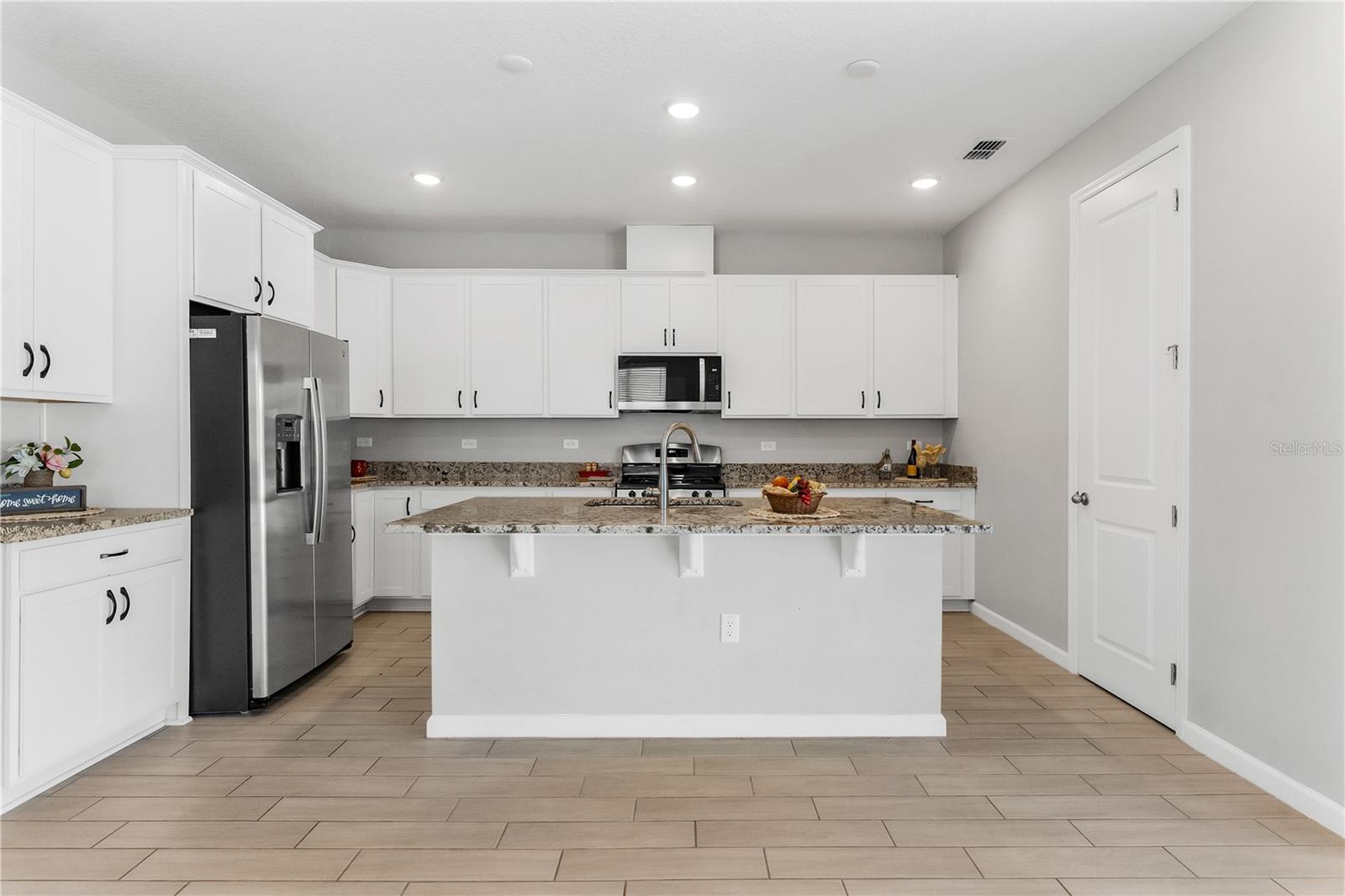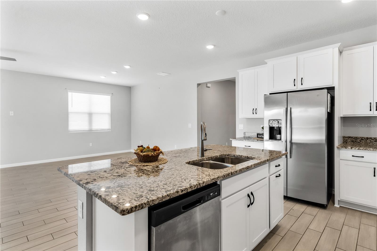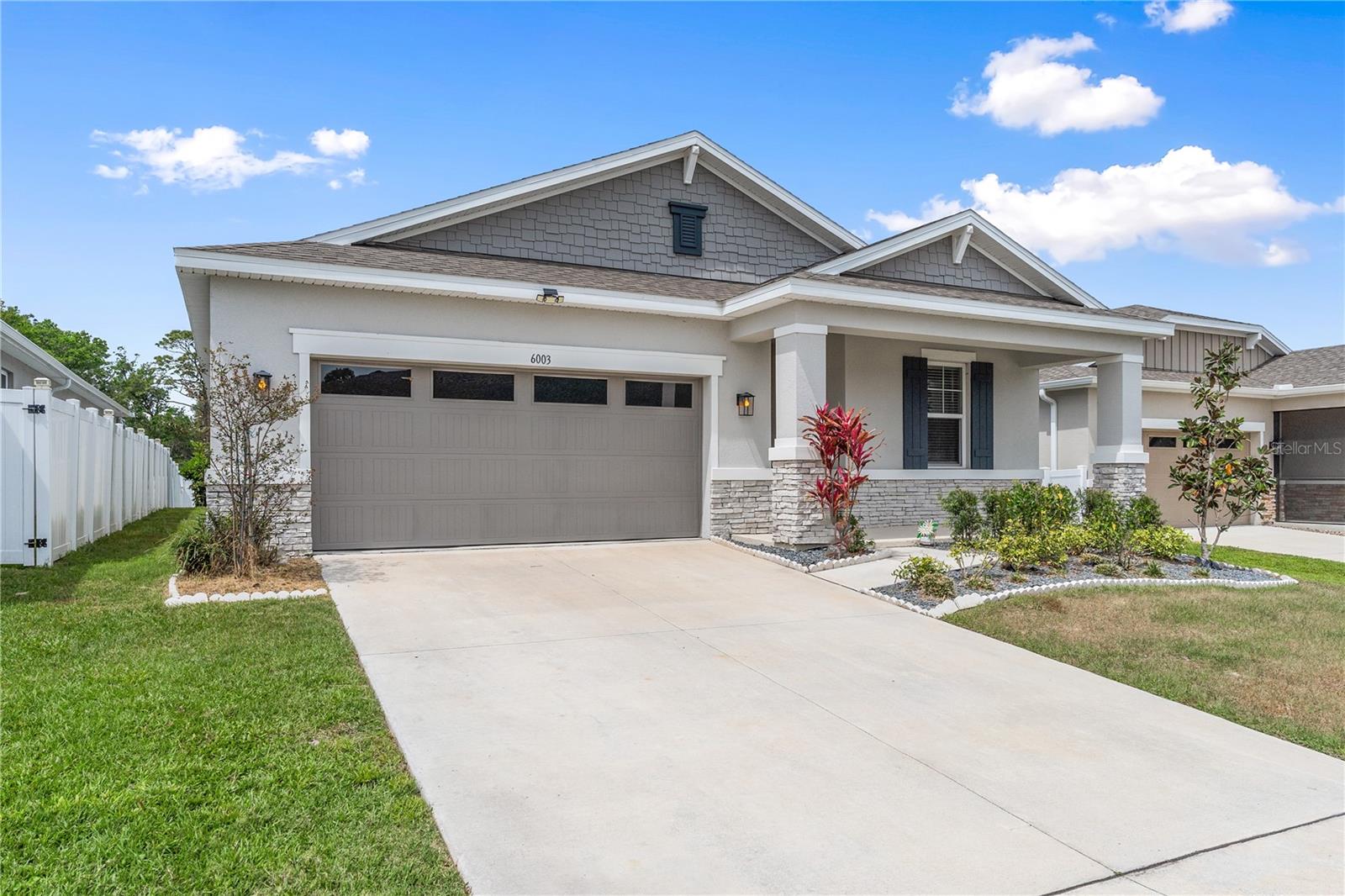 LIKE NEW HOME!! Don’t miss the chance to own this stunning 4-bedroom, 3-bathroom home with a spacious attached 2-car garage! Picture yourself relaxing on the front porch with a rocking chair. Inside, the great room boasts soaring volume ceilings, creating an open and airy atmosphere that flows seamlessly into the large kitchen. The chef will adore the generous walk-in pantry, a massive island with granite countertops, and top-notch appliances, including a refrigerator, range, dishwasher, built-in microwave, and disposal. With an abundance of cabinet space, you’ll never run out of room for storage! For effortless entertaining, step through the double glass sliding doors onto the back patio and enjoy complete privacy in the fenced backyard, surrounded by PVC fencing. The primary bedroom is bathed in natural light, featuring numerous windows and a massive walk-in closet. The primary bath is a luxurious retreat, offering a raised double sink vanity, a linen closet, a relaxing soaking tub, a separate glass walk-in shower, and a private water closet. Bedroom two comes with its own private bath, complete with a raised vanity and a spacious shower. Bedrooms three and four share the third guest bath, which includes a tub/shower combo. The home also includes an inside laundry room with a washer and dryer, along with window treatments, including vertical and wood blinds throughout the home. Come see this home and make it yours today!
