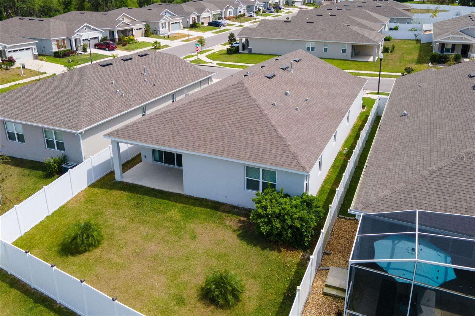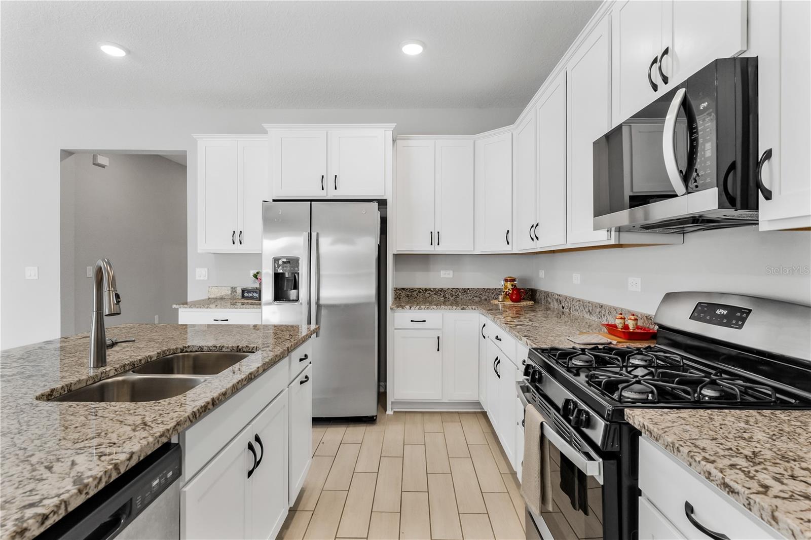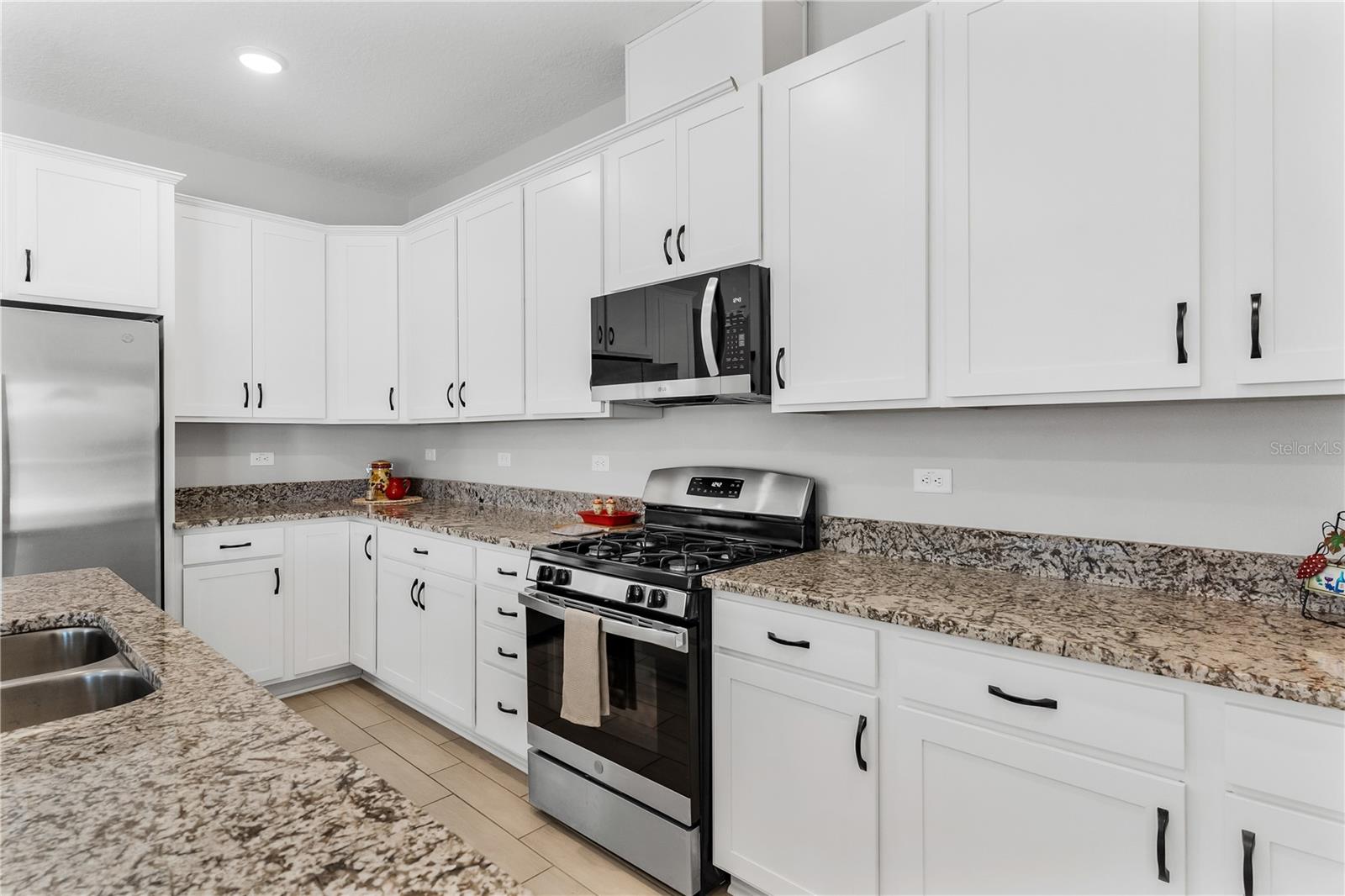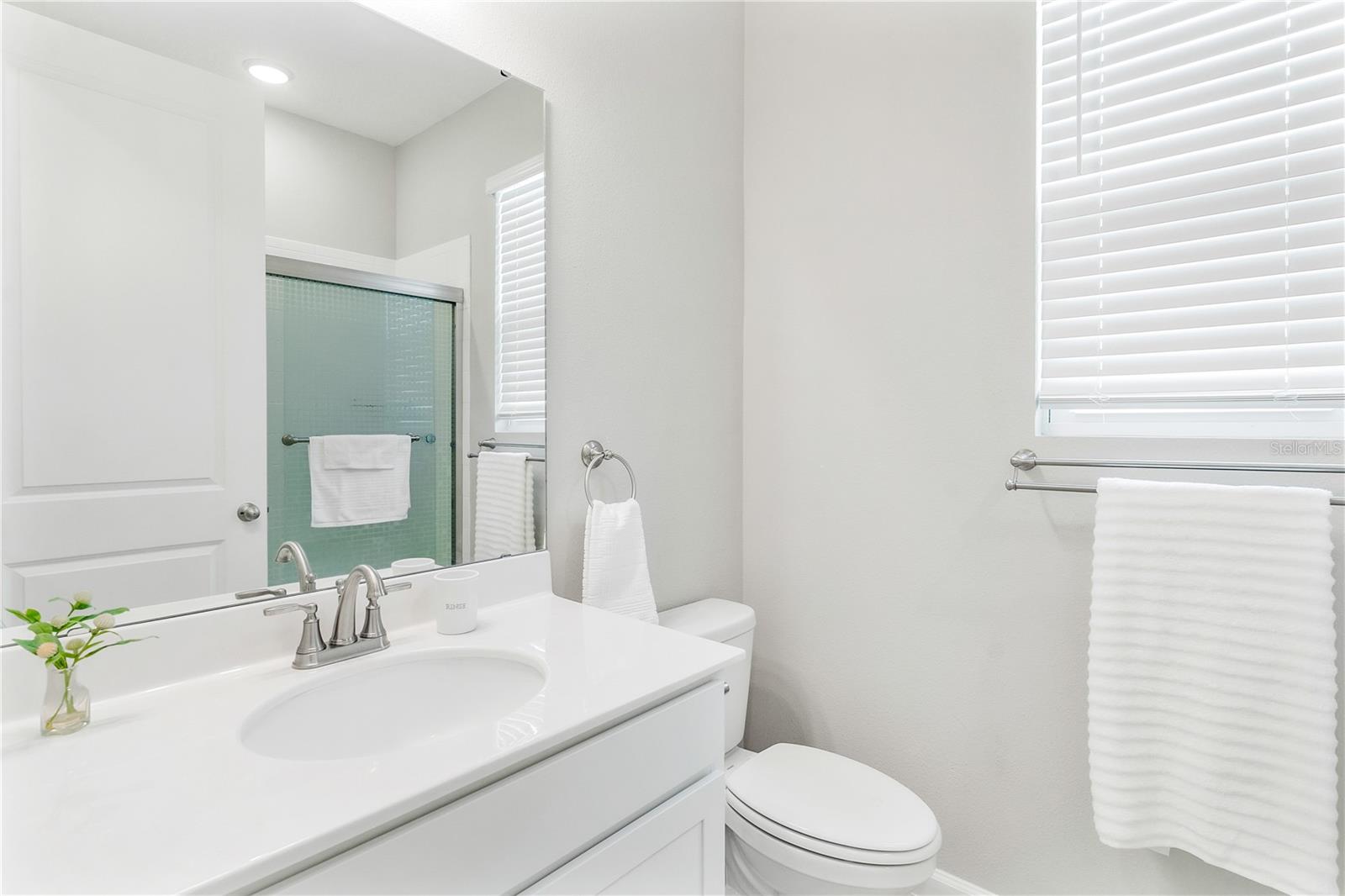 LIKE NEW HOME!! Don’t miss the chance to own this stunning 4-bedroom, 3-bathroom home with a spacious attached 2-car garage! Picture yourself relaxing on the front porch with a rocking chair. Inside, the great room boasts soaring volume ceilings, creating an open and airy atmosphere that flows seamlessly into the large kitchen. The chef will adore the generous walk-in pantry, a massive island with granite countertops, and top-notch appliances, including a refrigerator, range, dishwasher, built-in microwave, and disposal. With an abundance of cabinet space, you’ll never run out of room for storage! For effortless entertaining, step through the double glass sliding doors onto the back patio and enjoy complete privacy in the fenced backyard, surrounded by PVC fencing. The primary bedroom is bathed in natural light, featuring numerous windows and a massive walk-in closet. The primary bath is a luxurious retreat, offering a raised double sink vanity, a linen closet, a relaxing soaking tub, a separate glass walk-in shower, and a private water closet. Bedroom two comes with its own private bath, complete with a raised vanity and a spacious shower. Bedrooms three and four share the third guest bath, which includes a tub/shower combo. The home also includes an inside laundry room with a washer and dryer, along with window treatments, including vertical and wood blinds throughout the home. Come see this home and make it yours today!
