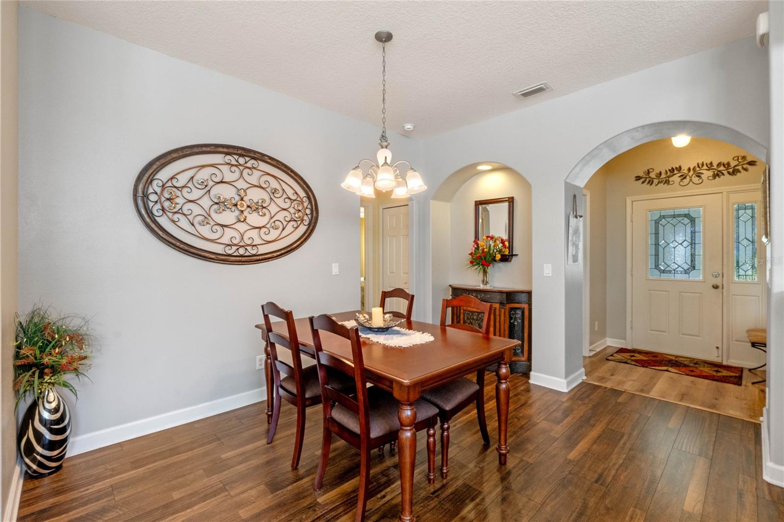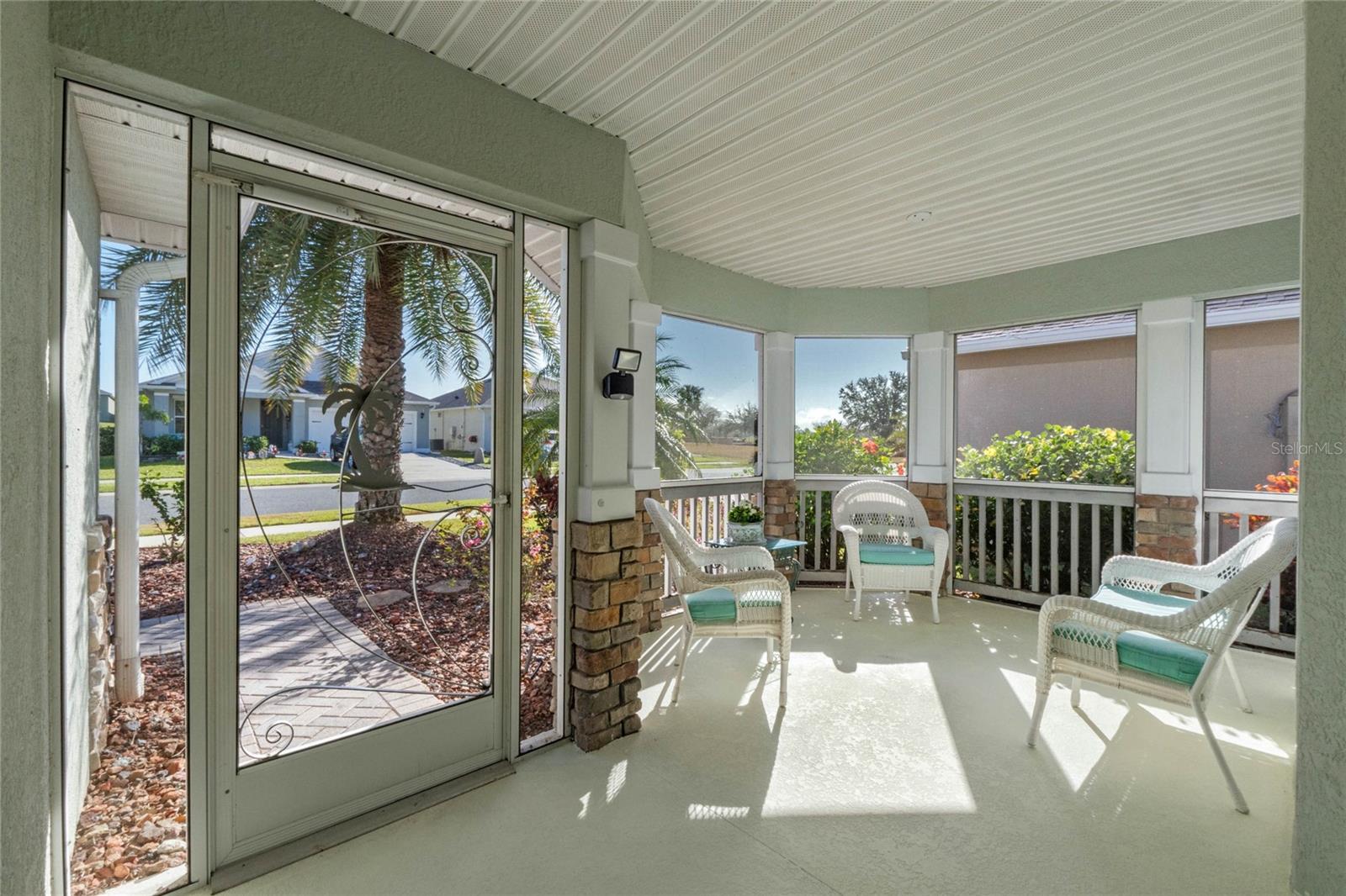 Welcome to this pristine gem nestled in a peaceful setting with no rear neighbors. As you approach, you'll be captivated by the stunning curb appeal, complete with an elegant paver driveway and an inviting screened-in front porch. Step inside to discover a spacious, open-concept layout bathed in natural light. The interior showcases fresh neutral paint throughout, complemented by premium flooring—a harmonious blend of luxury vinyl plank and laminate. At the heart of the home, the kitchen shines with Corian countertops, beautiful cabinetry, and a comfortable eat-in area. The thoughtful split floor plan offers privacy, with the master suite featuring an expansive walk-in closet. Energy efficiency is a cornerstone of this home, boasting: a durable metal roof, energy-saving tankless water heater, modern AC unit and Double-pane windows. Additional highlights include a screened-in back porch overlooking meticulously maintained landscaping. For added convenience, the home comes with the option to purchase with furniture and includes gas hookups—perfect for those dreaming of a gas stove and dryer. Located in a welcoming community with low HOA fees, residents enjoy access to a clubhouse and fitness facilities. Shopping and restaurants are just minutes away. The home's impeccable condition and prime location make it an exceptional find in today's market. ASK ABOUT THE INCENTIVES WHEN USING OUR PREFERRED LENDER!