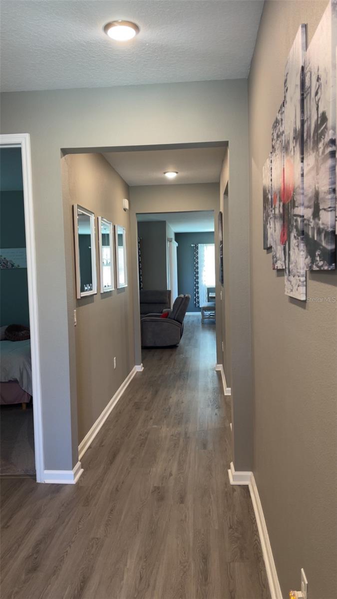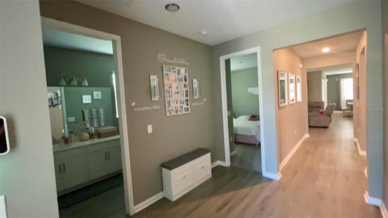 Stunning modern single story residence, nestled in Okahumpka, Florida, this exquisite 3 bedroom, 2 bathroom, 2 car garage single family home, built in 2022 is located just 12 minutes from downtown Leesburg and local businesses, schools and local churches. This ready move-in contemporary home includes an open concept with high ceilings and a modern cool gray color which accentuates the interior walls, an upgraded tech space, a spacious carpeted, cozy owner's primary bedroom with spacious master bathroom, 2 additional immaculate carpeted bedrooms, an additional present day guest bathroom, modern laminate floors in all open areas, gorgeous quartz counter tops, an eye catching spacious great room for family relaxation, a separate full dining room with bright lighting, a modern kitchen equipped with stainless steel energy saving appliances, elegant trendy cabinets, a versatile kitchen island with advanced water faucet system, including contemporary bright lighting, easily accessible double sinks and efficient dishwasher. A separate comfortable laundry room houses the washer and dryer. From the moment you arrive, the home's curb appeal speaks volumes with pristine landscaping. This beautiful home also includes front exterior lighting, a spacious screened porch lanai, an exterior irrigation system, roof rain gutters, a spacious driveway and attached 2 car garage, an advanced gas water heater and a whole house water softener system. Call today to schedule your own private showing.