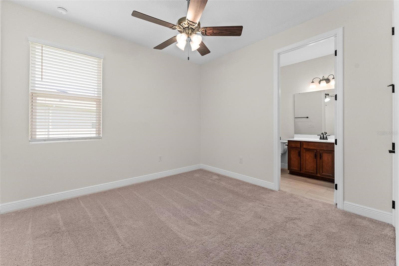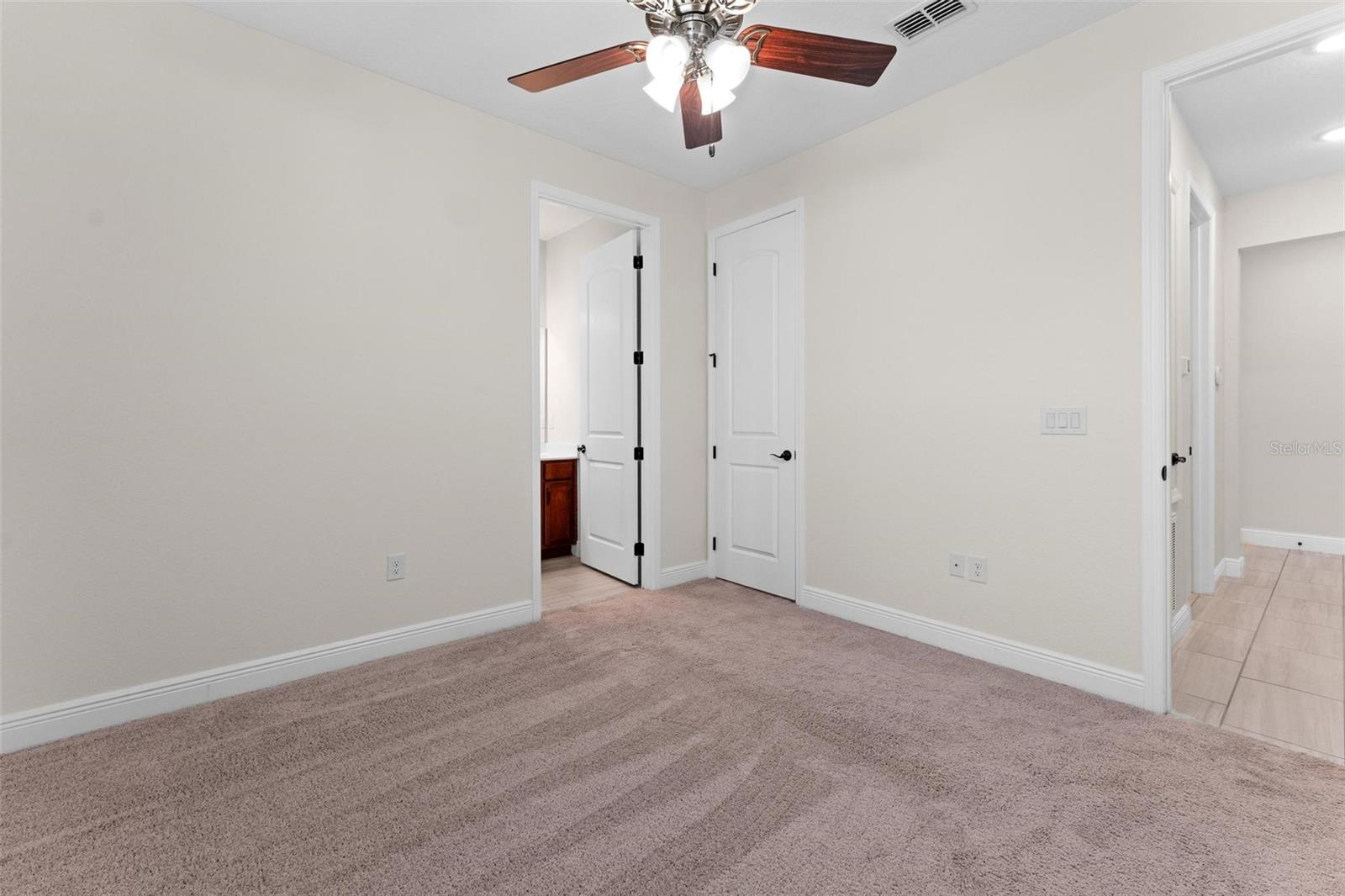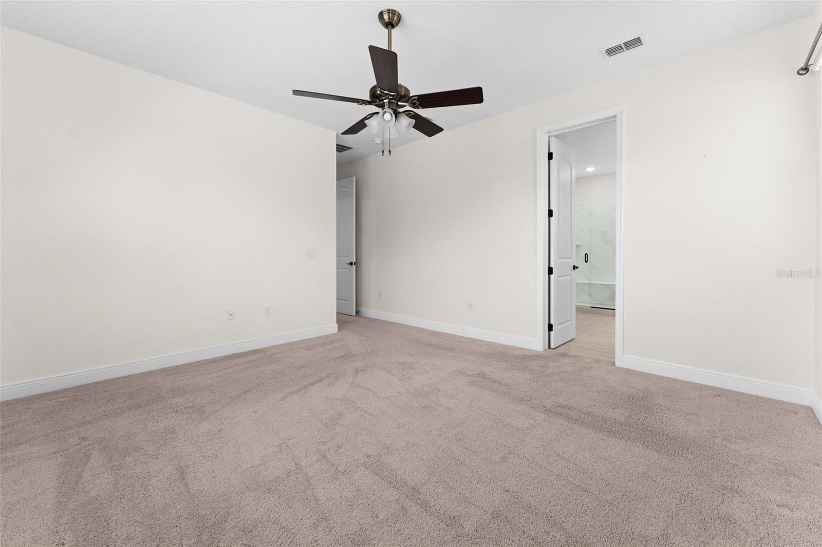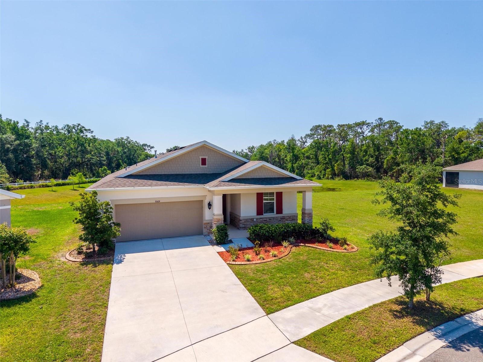 Welcome to this beautifully upgraded 4-bedroom, 3-bathroom home built in 2022, where modern design and high-end features come together to create a truly exceptional living experience. Step into the expansive open floor plan, where soaring 9-foot ceilings and 8-foot interior doors enhance the home’s spacious, airy ambiance. The gourmet kitchen is a chef’s dream, featuring 42" upper cabinets with crown molding, quartz countertops, a full tile backsplash, stainless steel appliances, additional outlets, and soft-close cabinets and drawers with convenient pull-out shelving. A large center island and an oversized pantry complete with an outlet for a freezer, offers generous space for both meal preparation and entertaining. The home is designed with comfort and convenience in mind, featuring porcelain tile flooring throughout the main living areas and comfort-height toilets in every bathroom. Ceiling fans have been installed in every room for year-round comfort, and the property contains a full wired security system. Retreat to the private primary suite featuring a spa-like bath with dual vanities, a walk-in shower with upgraded tile, and a spacious walk-in closet. A secondary bedroom includes its own private en-suite bath, making it perfect for guests or multi-generational living. Additional thoughtful touches include plumbing in place for a water softener and wash basin in the garage and an overhead storage rack for added convenience and organization, as well as pre-plumbing for an outdoor kitchen sink—ideal for backyard entertaining. The extended covered patio overlooks a professionally landscaped front and backyard complete with an irrigation system, creating the perfect outdoor space to relax and unwind. With over $50,000 in tasteful upgrades and located in a desirable community close to parks, schools, and shopping, this move-in-ready home is an absolute must-see. Schedule your private showing today!