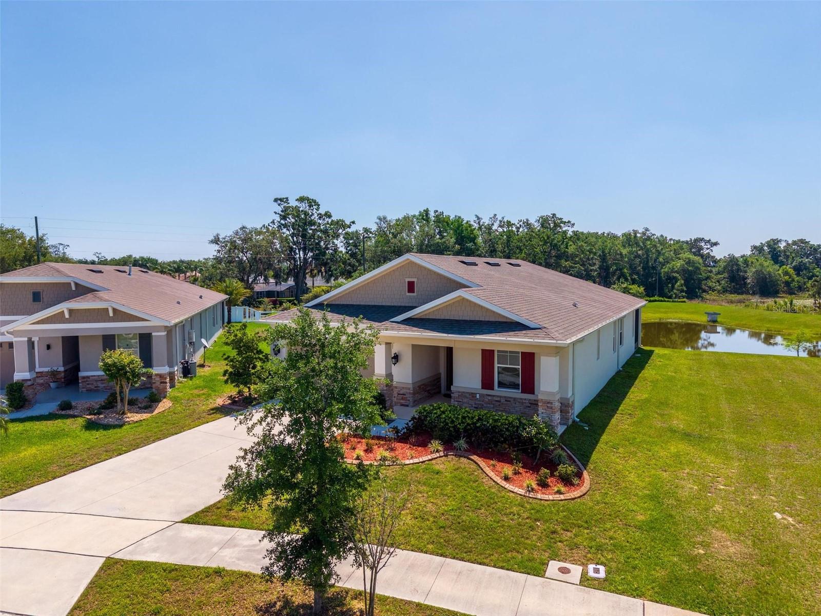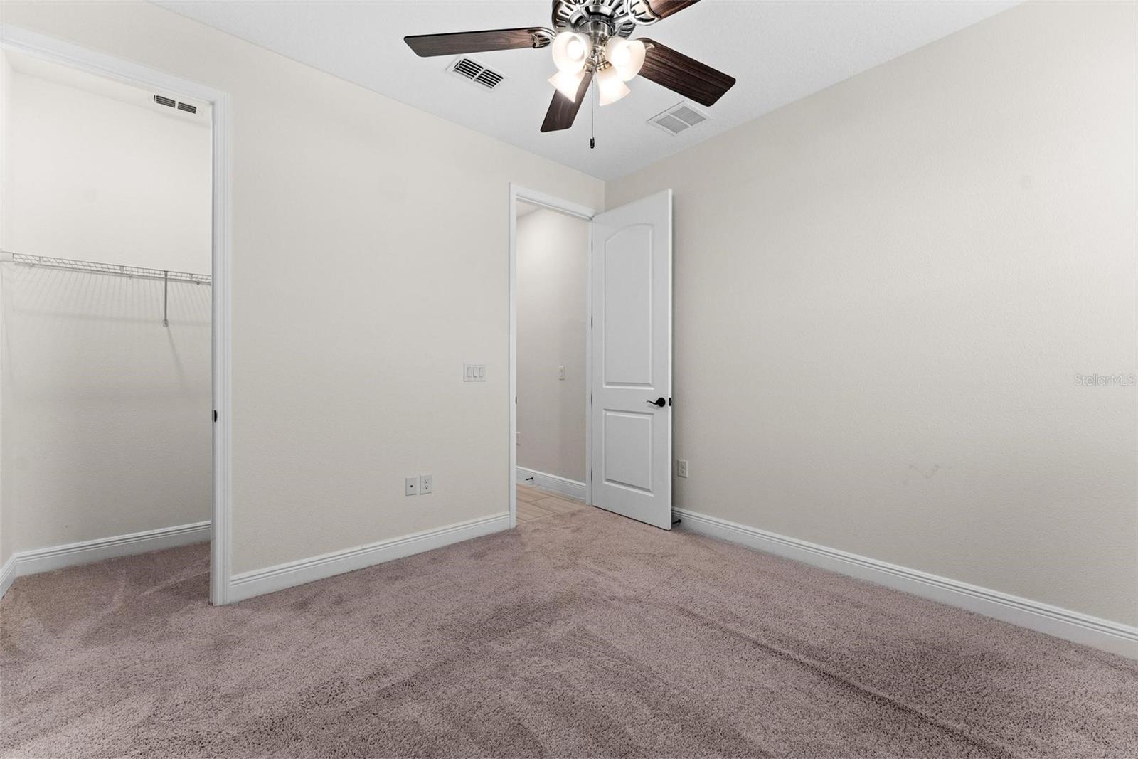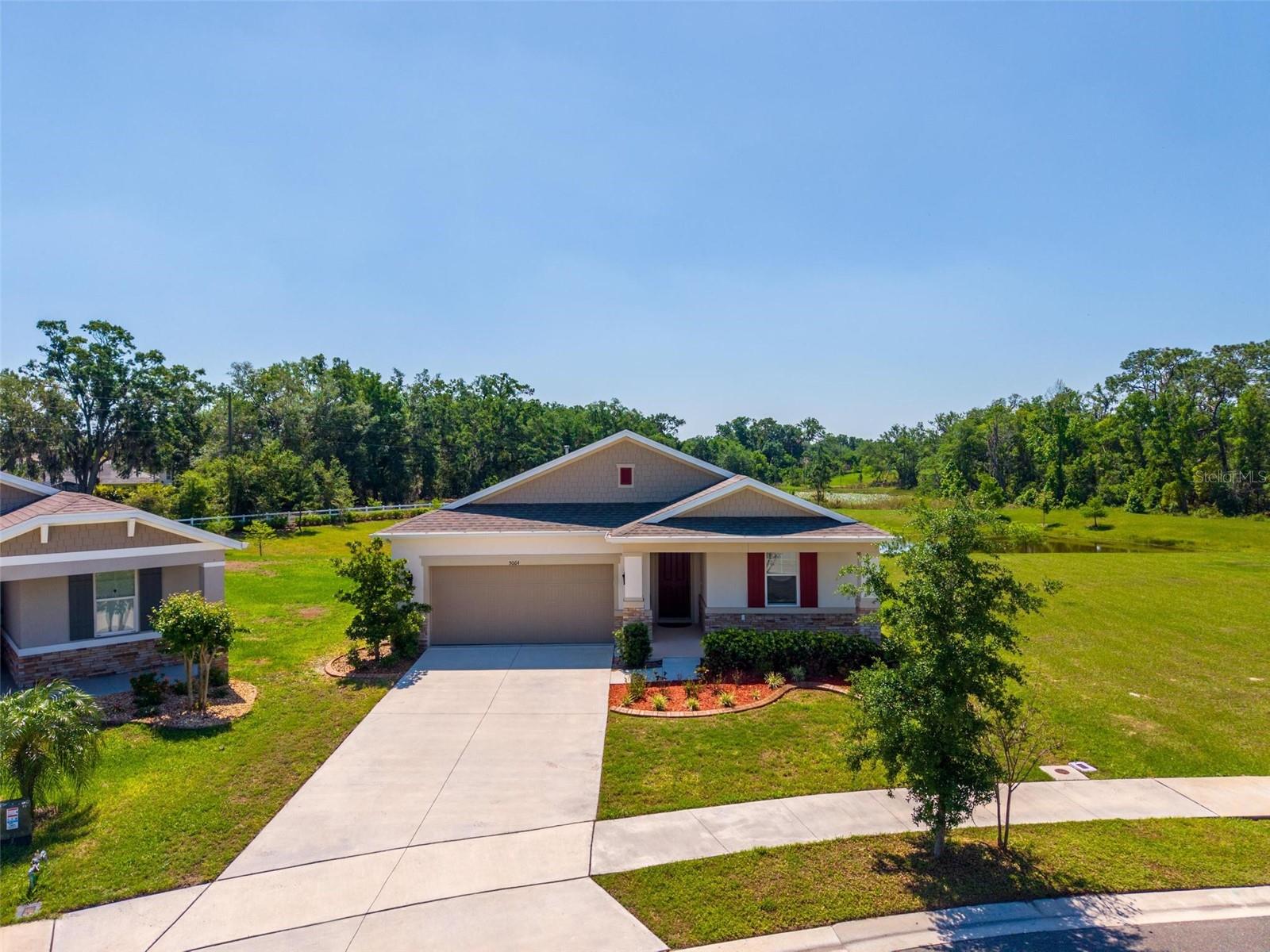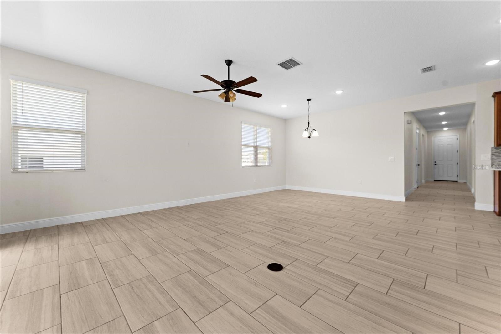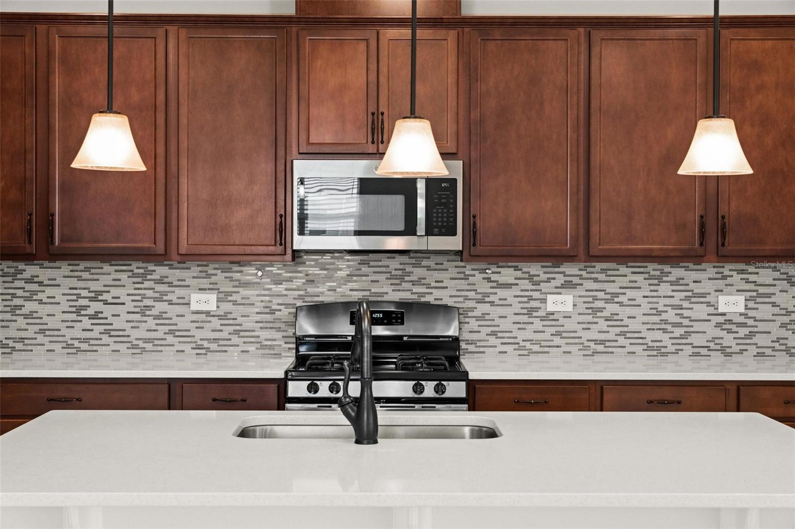 Welcome to this beautifully upgraded 4-bedroom, 3-bathroom home built in 2022, where modern design and high-end features come together to create a truly exceptional living experience. Step into the expansive open floor plan, where soaring 9-foot ceilings and 8-foot interior doors enhance the home’s spacious, airy ambiance. The gourmet kitchen is a chef’s dream, featuring 42" upper cabinets with crown molding, quartz countertops, a full tile backsplash, stainless steel appliances, additional outlets, and soft-close cabinets and drawers with convenient pull-out shelving. A large center island and an oversized pantry complete with an outlet for a freezer, offers generous space for both meal preparation and entertaining. The home is designed with comfort and convenience in mind, featuring porcelain tile flooring throughout the main living areas and comfort-height toilets in every bathroom. Ceiling fans have been installed in every room for year-round comfort, and the property contains a full wired security system. Retreat to the private primary suite featuring a spa-like bath with dual vanities, a walk-in shower with upgraded tile, and a spacious walk-in closet. A secondary bedroom includes its own private en-suite bath, making it perfect for guests or multi-generational living. Additional thoughtful touches include plumbing in place for a water softener and wash basin in the garage and an overhead storage rack for added convenience and organization, as well as pre-plumbing for an outdoor kitchen sink—ideal for backyard entertaining. The extended covered patio overlooks a professionally landscaped front and backyard complete with an irrigation system, creating the perfect outdoor space to relax and unwind. With over $50,000 in tasteful upgrades and located in a desirable community close to parks, schools, and shopping, this move-in-ready home is an absolute must-see. Schedule your private showing today!