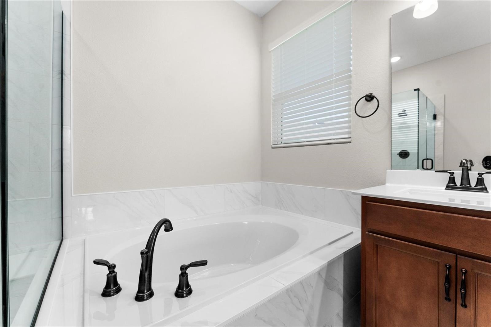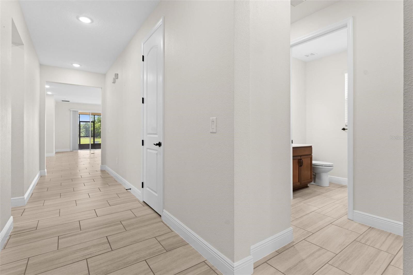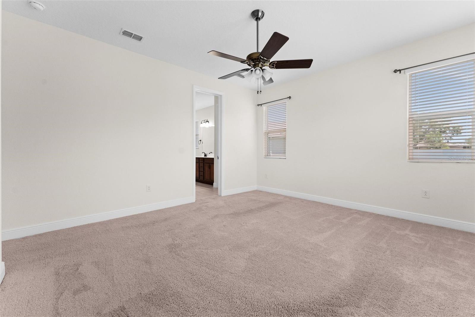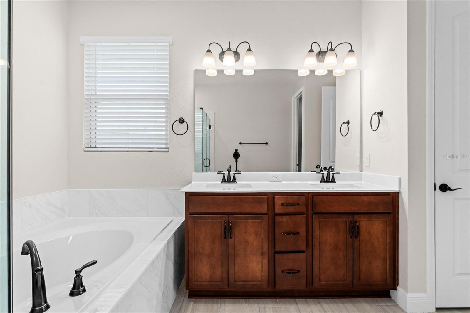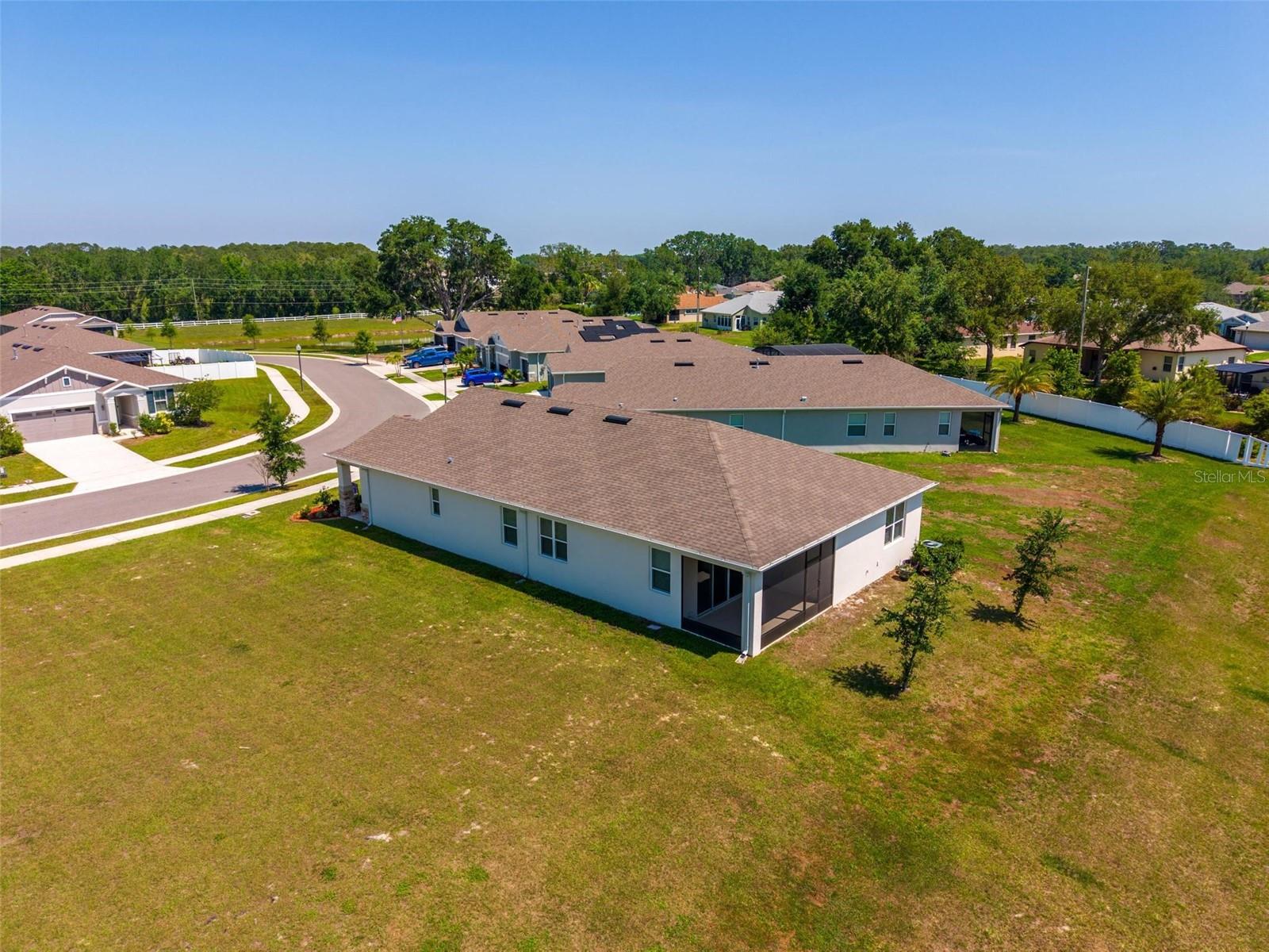 Welcome to this beautifully upgraded 4-bedroom, 3-bathroom home built in 2022, where modern design and high-end features come together to create a truly exceptional living experience. Step into the expansive open floor plan, where soaring 9-foot ceilings and 8-foot interior doors enhance the home’s spacious, airy ambiance. The gourmet kitchen is a chef’s dream, featuring 42" upper cabinets with crown molding, quartz countertops, a full tile backsplash, stainless steel appliances, additional outlets, and soft-close cabinets and drawers with convenient pull-out shelving. A large center island and an oversized pantry complete with an outlet for a freezer, offers generous space for both meal preparation and entertaining. The home is designed with comfort and convenience in mind, featuring porcelain tile flooring throughout the main living areas and comfort-height toilets in every bathroom. Ceiling fans have been installed in every room for year-round comfort, and the property contains a full wired security system. Retreat to the private primary suite featuring a spa-like bath with dual vanities, a walk-in shower with upgraded tile, and a spacious walk-in closet. A secondary bedroom includes its own private en-suite bath, making it perfect for guests or multi-generational living. Additional thoughtful touches include plumbing in place for a water softener and wash basin in the garage and an overhead storage rack for added convenience and organization, as well as pre-plumbing for an outdoor kitchen sink—ideal for backyard entertaining. The extended covered patio overlooks a professionally landscaped front and backyard complete with an irrigation system, creating the perfect outdoor space to relax and unwind. With over $50,000 in tasteful upgrades and located in a desirable community close to parks, schools, and shopping, this move-in-ready home is an absolute must-see. Schedule your private showing today!