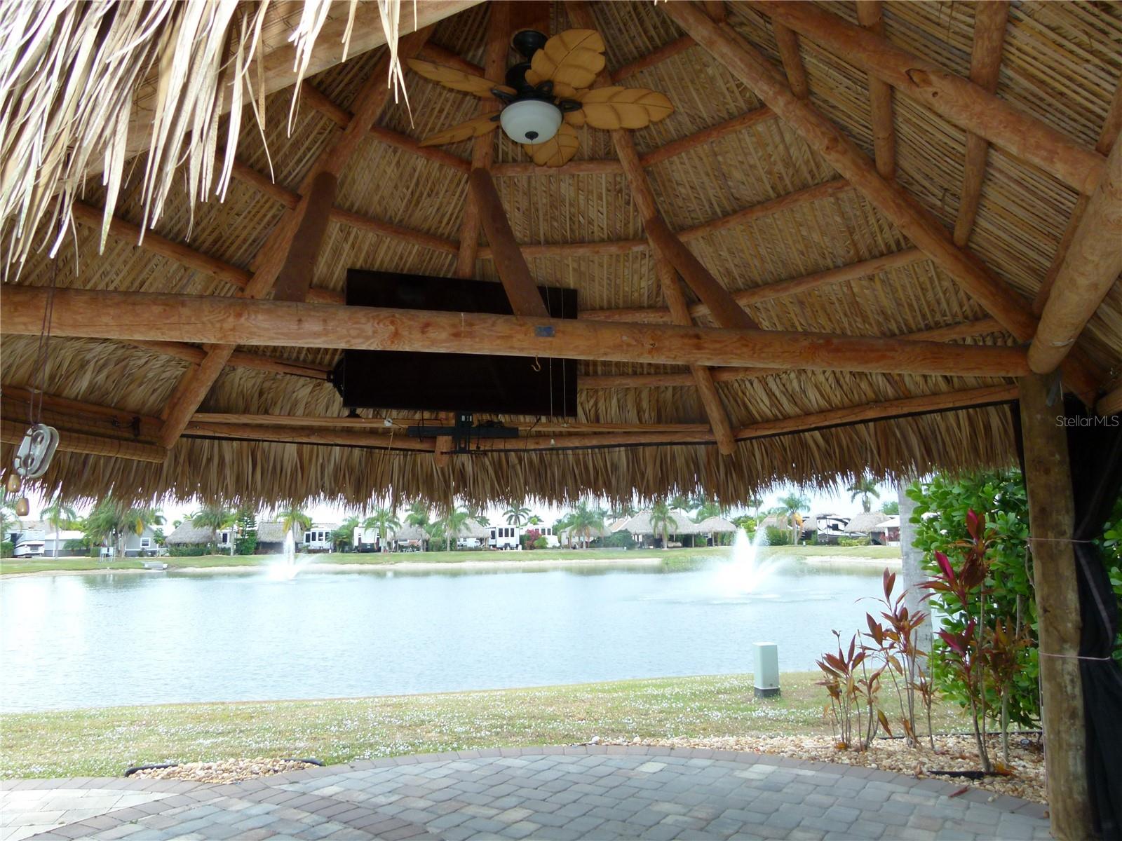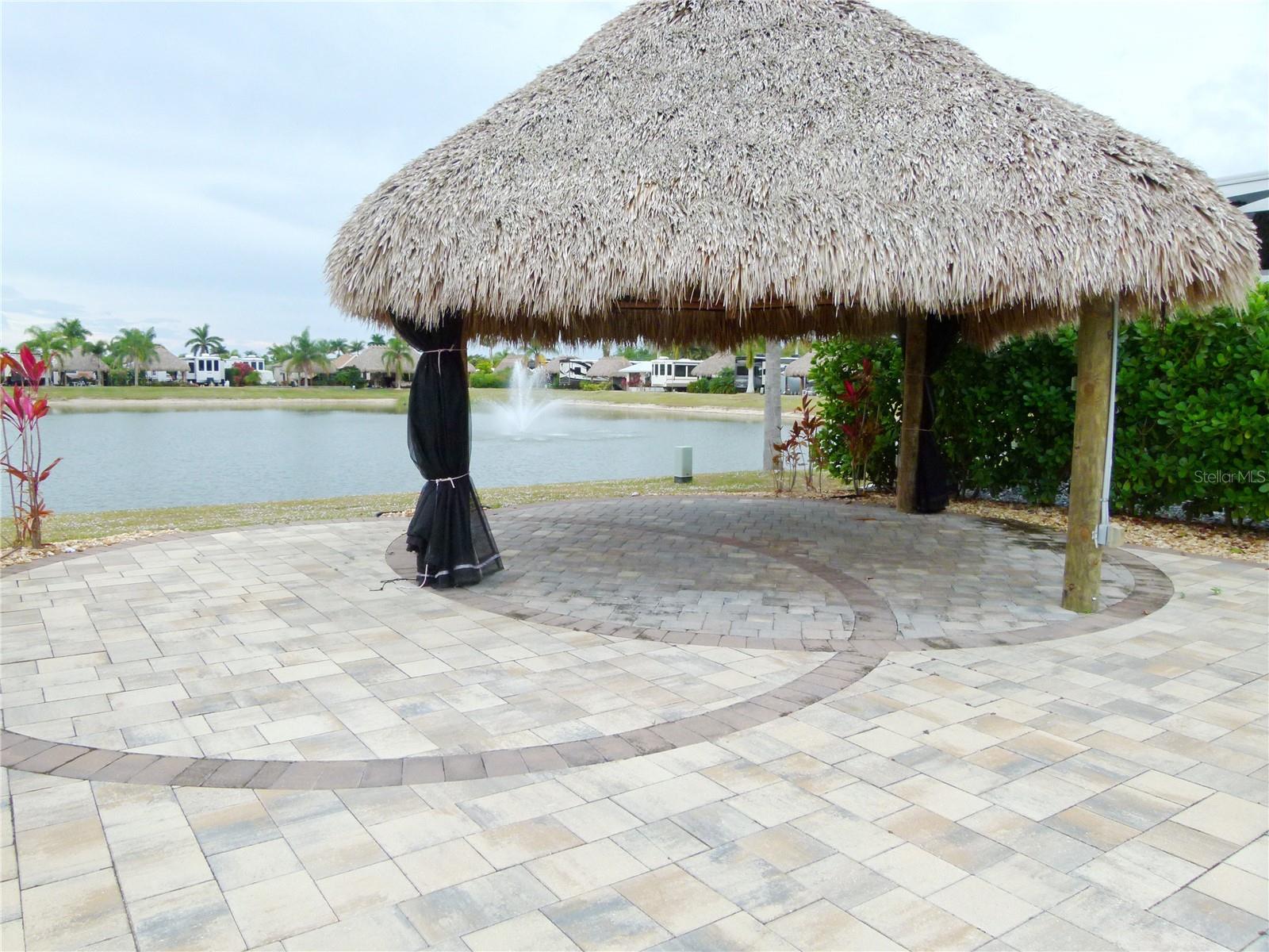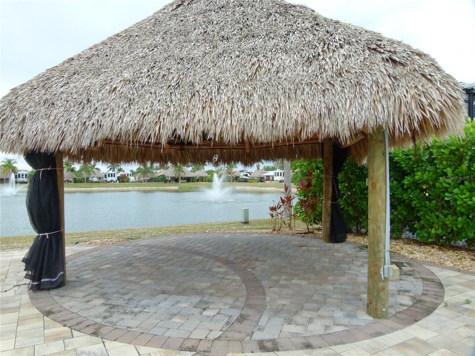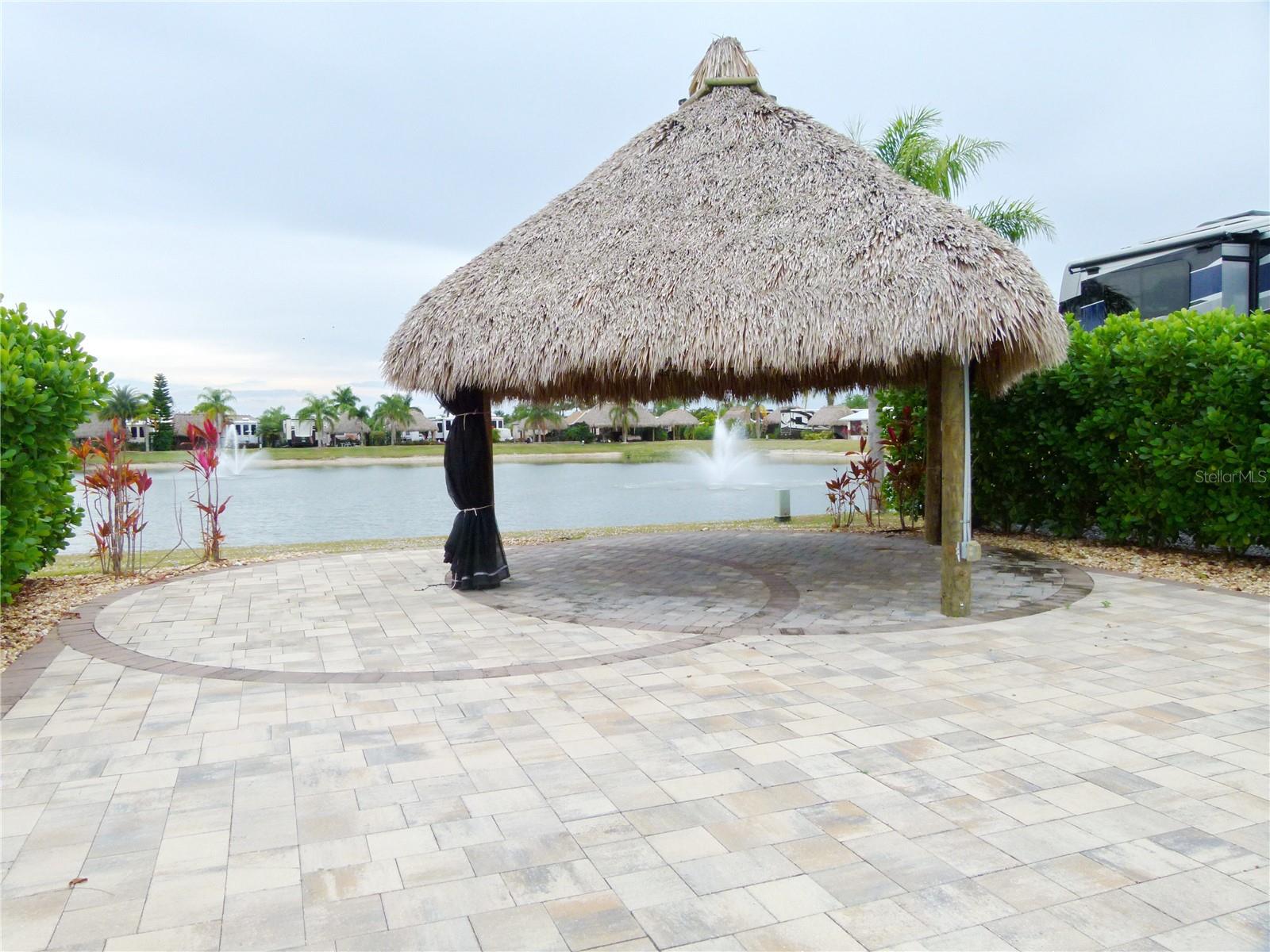 Amazing 90-acre gated community, 5-star resort with full time activity director. Daily activities, pool side bar and grill with live music. 9000 sf clubhouse features, fitness center, library, card and billiard rooms. Enjoy the sound of the fountain and view from the tiki on your lakefront lot. Casita is finished with 1/2 bath and AC. Don't miss a great opportunity to own a piece of paradise.
