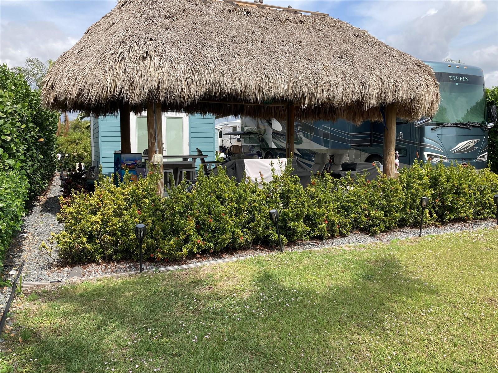 Come enjoy resort living on this 3100 square foot site located in the Silver Palms RV Resort. You will have a 12x18ft Casita with a half bath to relax in when you aren't enjoying the fresh air under the 12x18ft tiki! With a Rainbird soaker irrigation system, you don't have to worry about your landscaping being thirsty either. Silver Palms features a clubhouse with poolside bar and grill, fitness center, card room, billiards room and library. Also with multipole pickleball courts, shuffle board and pétanque there are plenty of outdoor amenities to enjoy.