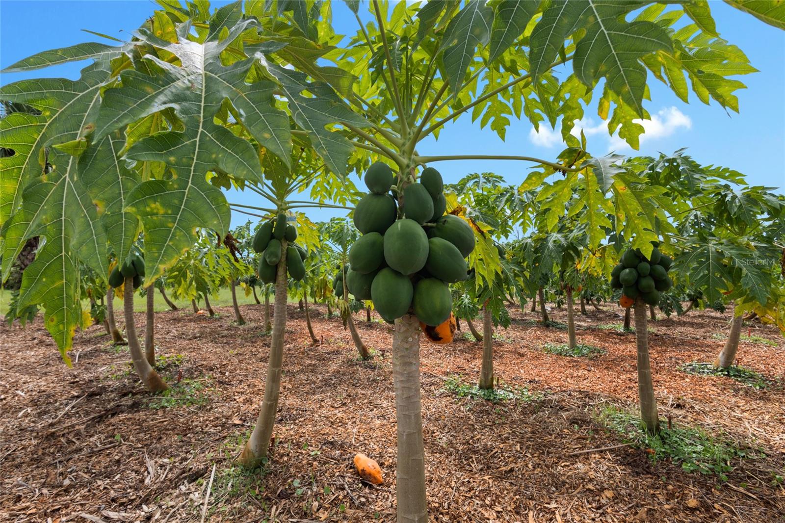 Fully operational 10-acre agricultural property in Okeechobee, Florida. This property is set up as an active agricultural operation and includes full perimeter fencing and an underground irrigation system that services all planted trees. Current fruit production includes papaya, mango, sugar plum, banana, and coconut. Additional features include three stocked fishponds, a large pole barn, two wells, separate bathroom facilities, and multiple outbuildings including a shed and office. A Kubota tractor and gas-powered golf cart are included in the sale. Internet service is available through Hews. This property offers established agricultural infrastructure suitable for continued farming, investment, or private use. A mobile home can be added for an additional fee; inquire for details.
